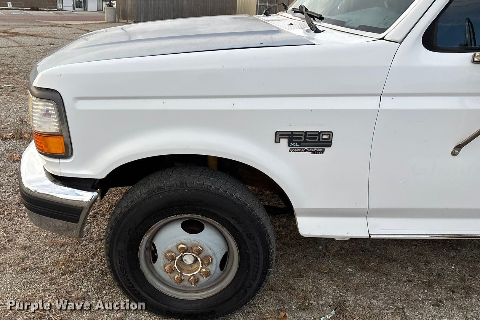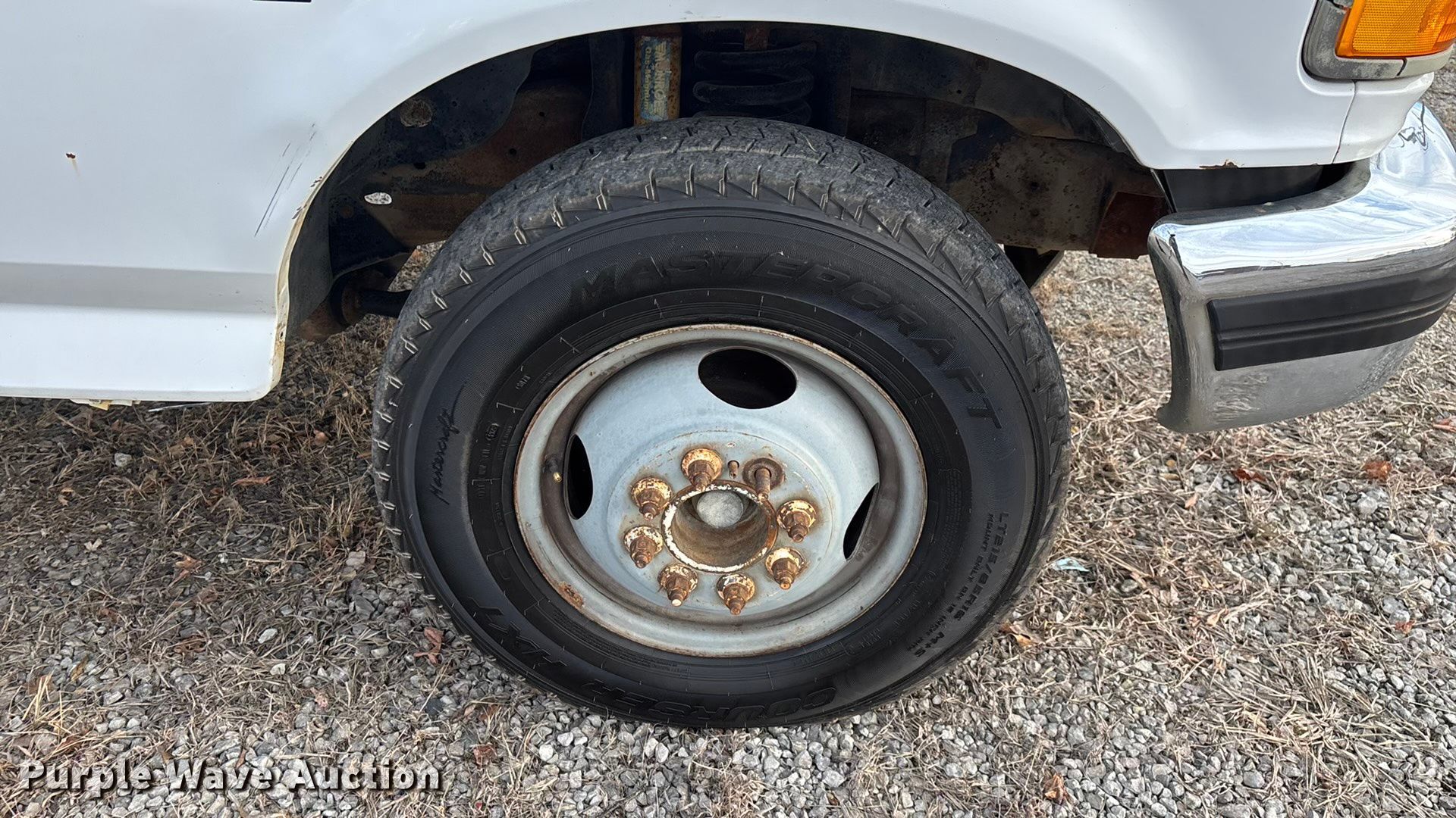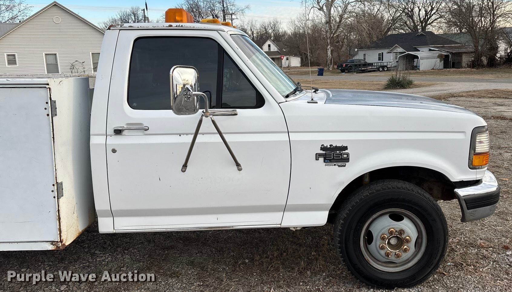 This 1995 Ford F350 utility bed pickup truck will sell to the highest bidder regardless of price.