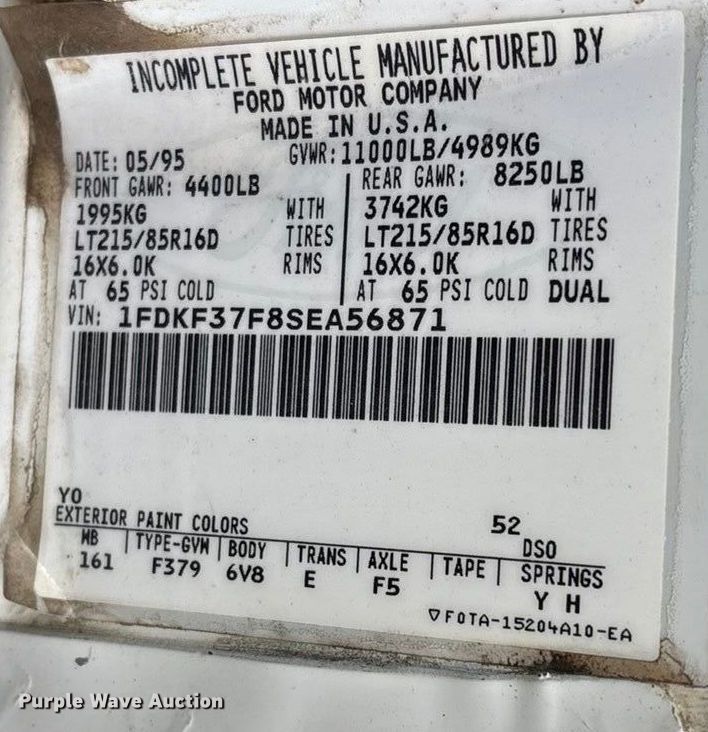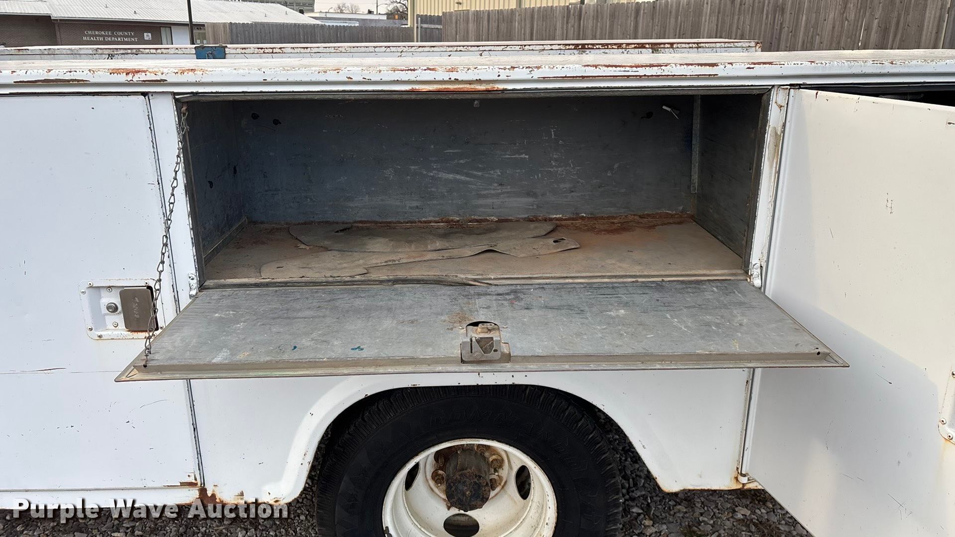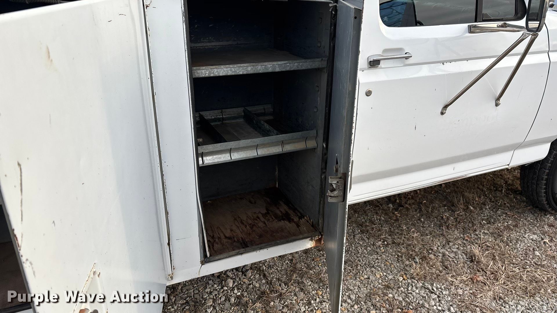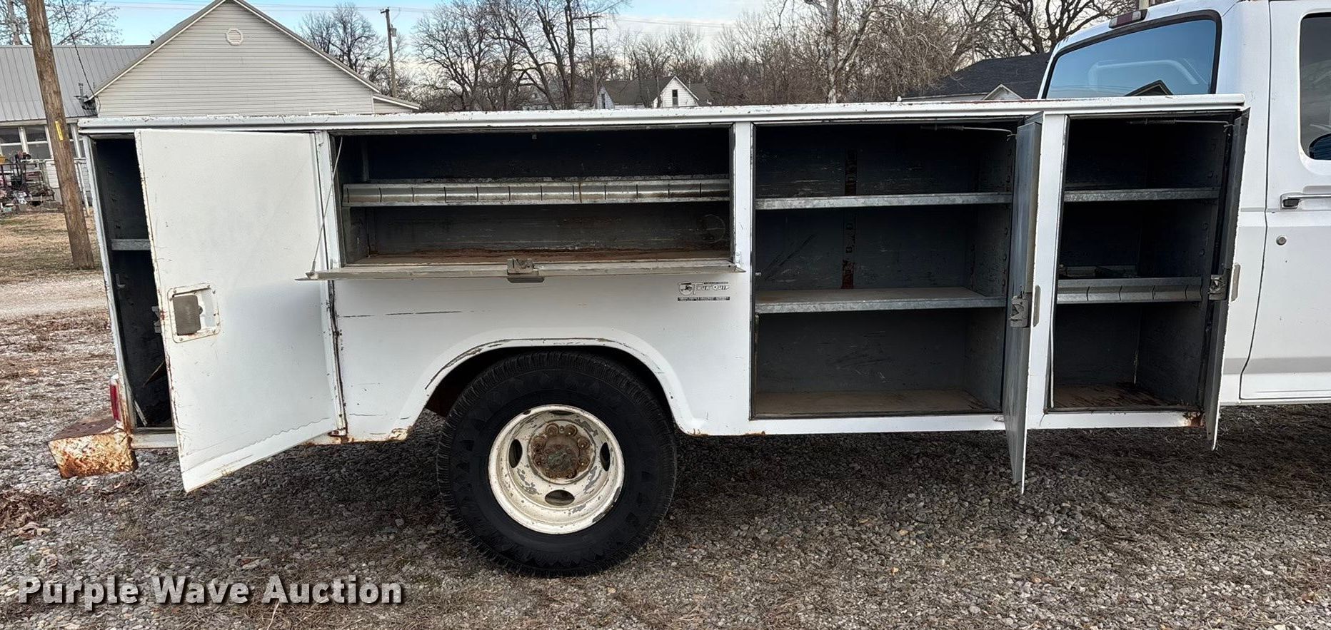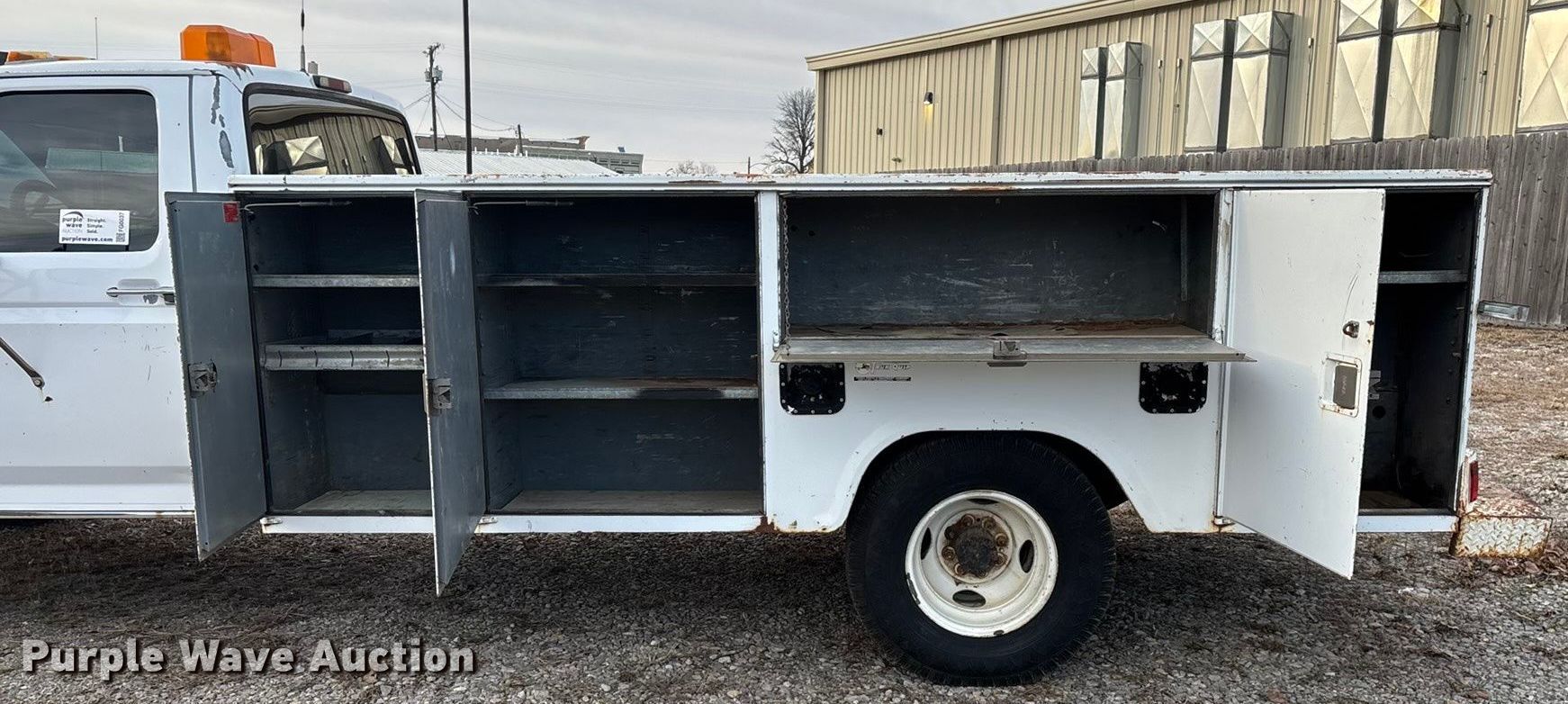 1995 Ford F350 utility bed pickup truck. Miles: 113,431 on odometer, VIN: 1FDKF37F8SEA56871, Unit #: 300. Engine Displacement: 7.3L, Cylinders: 8, Fuel type: Diesel. Transmission Automatic. Interior AC, Heat. Features Bed Utility bed, Stahl, Serial: 35-1304, Length: 11', Width: 91", Height: 38". Tires Front: LT215/85R16, Rear: LT235/85R16. Notes Contents included, Additional parts included, Repair documents available upon request to [email protected], Tires damaged, dry rot, Windshield chipped or cracked. Kansas title. Title distribution may be delayed up to 14 days from verification of funds. Columbus, KS 66725