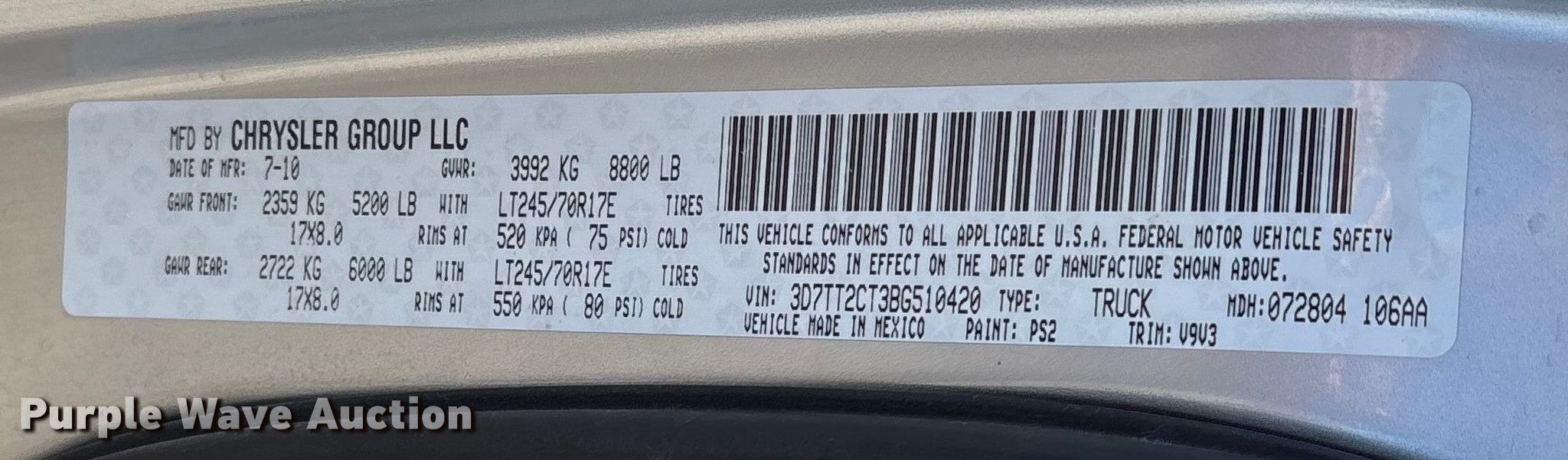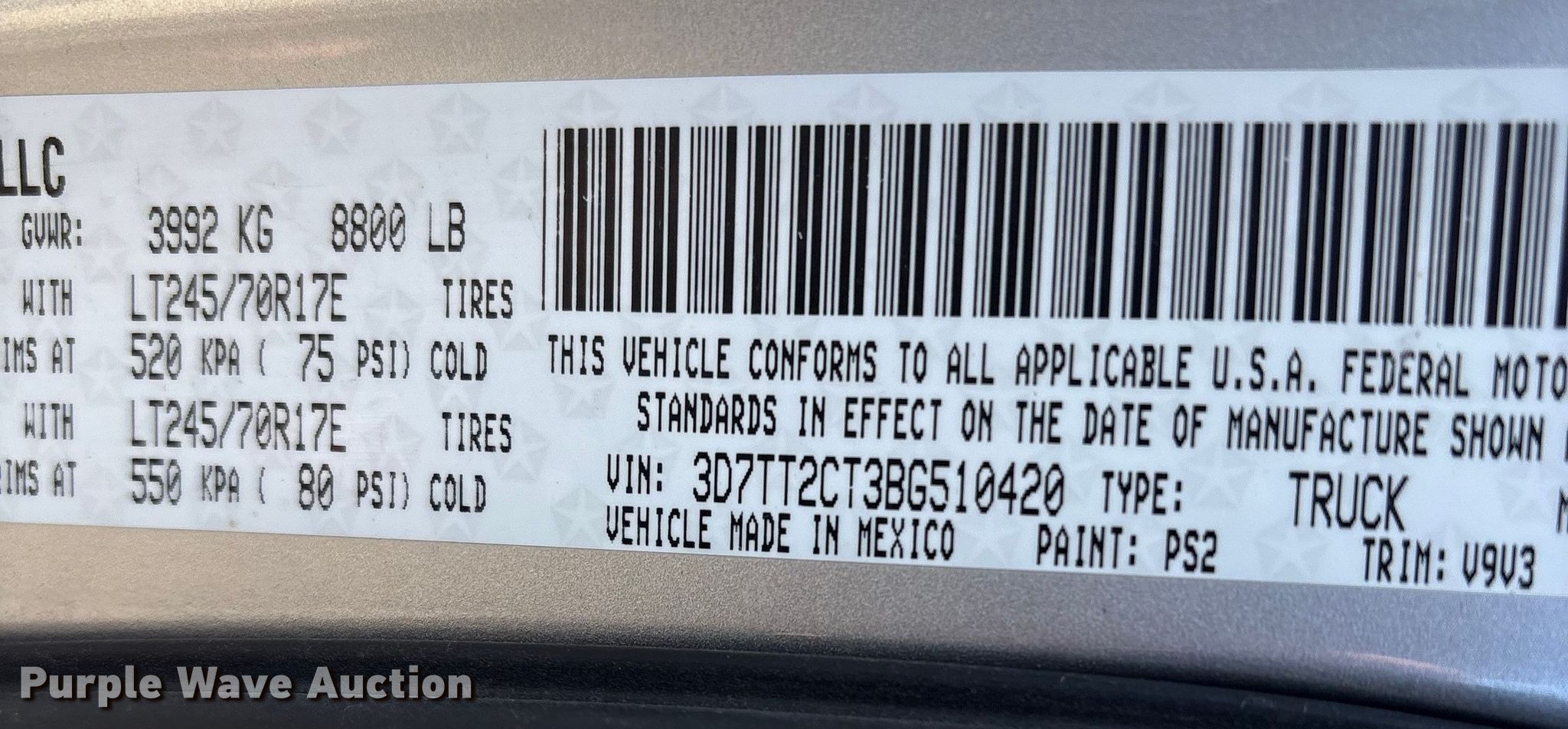- VIN: 3D7TT2CT3BG510420