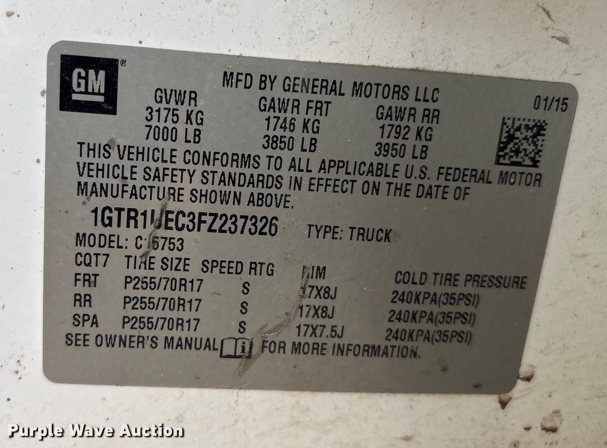 - VIN: 1GTR1UEC3FZ237326