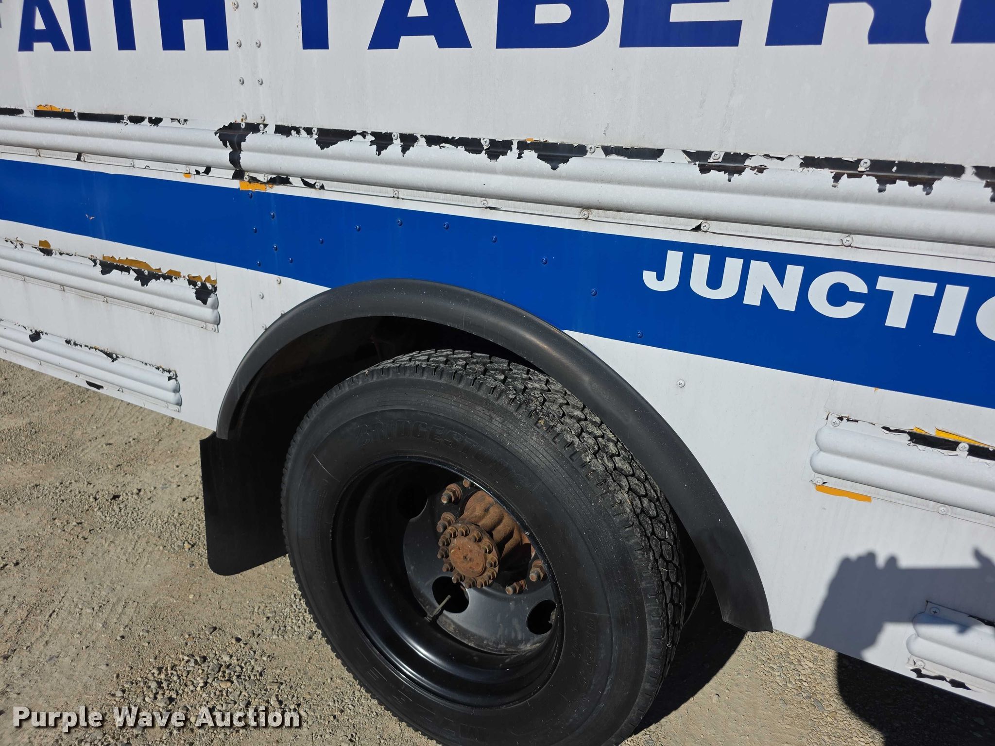 2005 Freightliner Thomas school bus. Miles: 117,765 on odometer, VIN: 4UZAAWDH45CU13206. Engine Mercedes-Benz, Displacement: 4.8L, Fuel type: Diesel. Transmission Automatic. Chassis Axles: Single, Suspension: Spring, Brakes: Hydraulic, GVWR: 24,000 lbs, Wheelbase: 192". Interior Heat, Heated mirrors, Cruise control, Passengers: 24. Tires Size: 265/75R22.5, Brand: Bridgestone. Notes Decals will be removed prior to auction, Dash warning indicator: ABS, Jump start required during on-site data collection. Kansas title. Title distribution may be delayed up to 14 days from verification of funds. Faith Tabernacle. Junction City, KS 66441