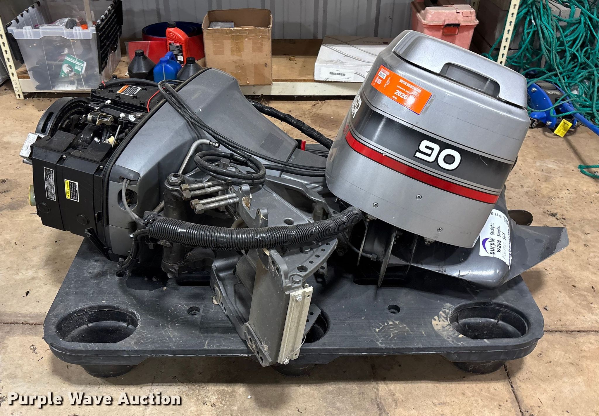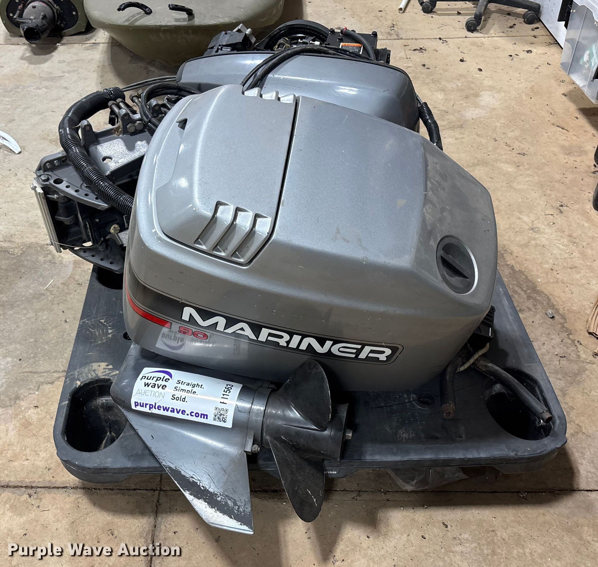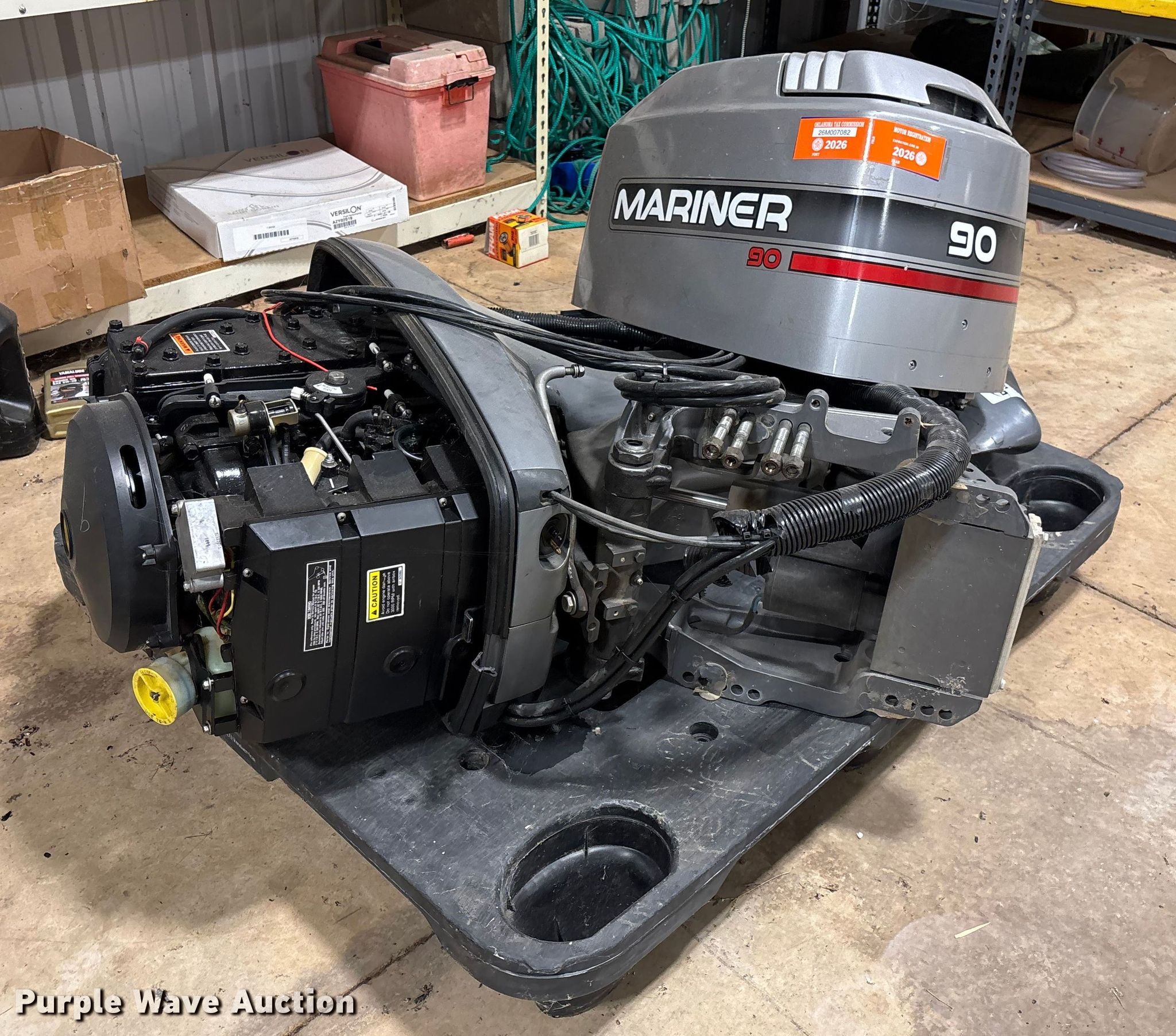 Purple Wave is selling a used Engine in Oklahoma. This item is a 1996 Mariner outboard engine with the following: Cylinders: 3, Fuel type: Gas, HP: 90