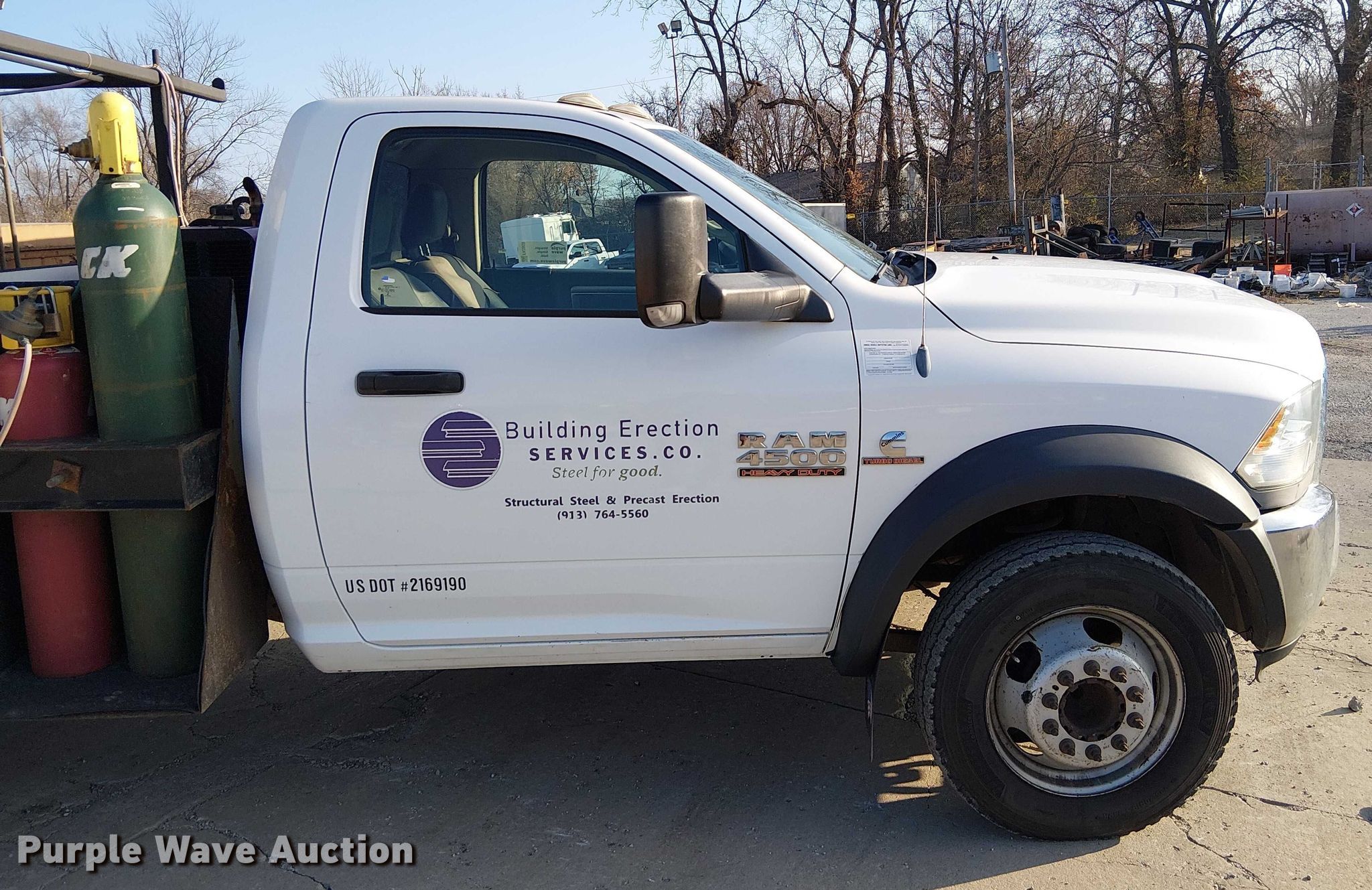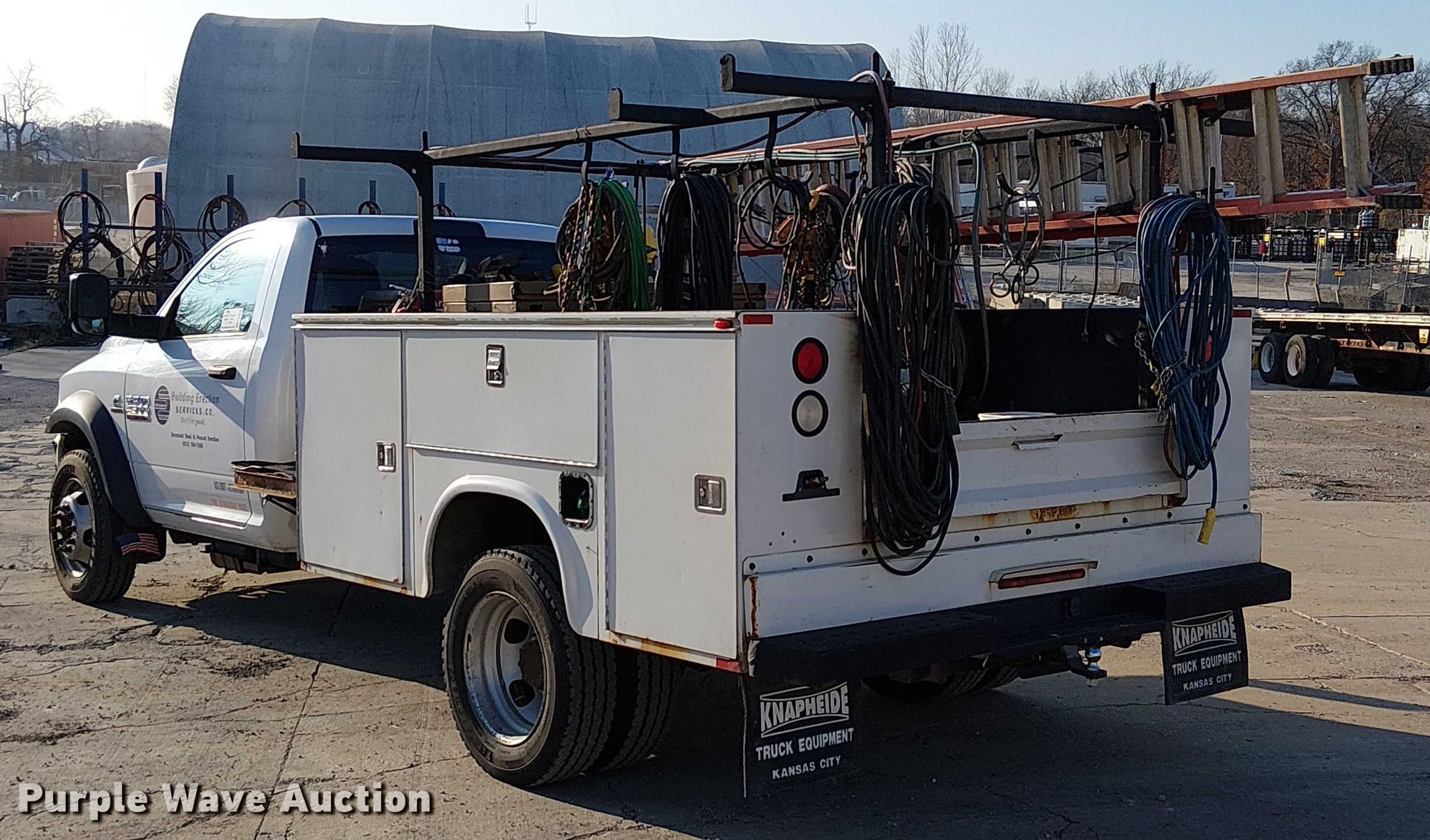 2013 RAM 4500 utility / service truck. Miles: 242,728 on odometer, Miles or hours may vary, unit still in use, VIN: 3C7WRKBL4DG592560. Engine Displacement: 6.7L, Cylinders: 6, Fuel type: Diesel. Transmission Automatic. Interior AC, Heat, Heated mirrors, Power windows, Power locks, Cruise control, Auxiliary controls, Brake controller. Features Bed Utility bed, Knapheide, Length: 9', Width: 96". Tires Size: 225/70R19.5. Notes Dash warning indicator: Check engine, Windshield chipped or cracked, Contents not included, Welder and bottles not included. Missouri title. Title distribution may be delayed up to 14 days from verification of funds. Kansas City Structural Steel. Kansas City, MO 64129