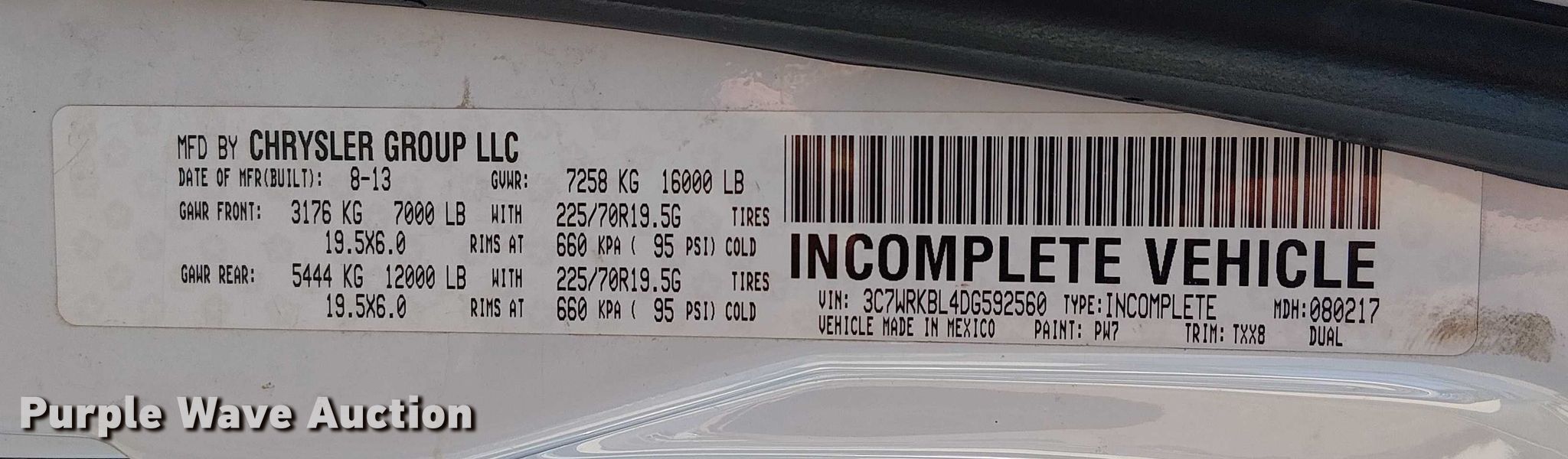• VIN: 3C7WRKBL4DG592560