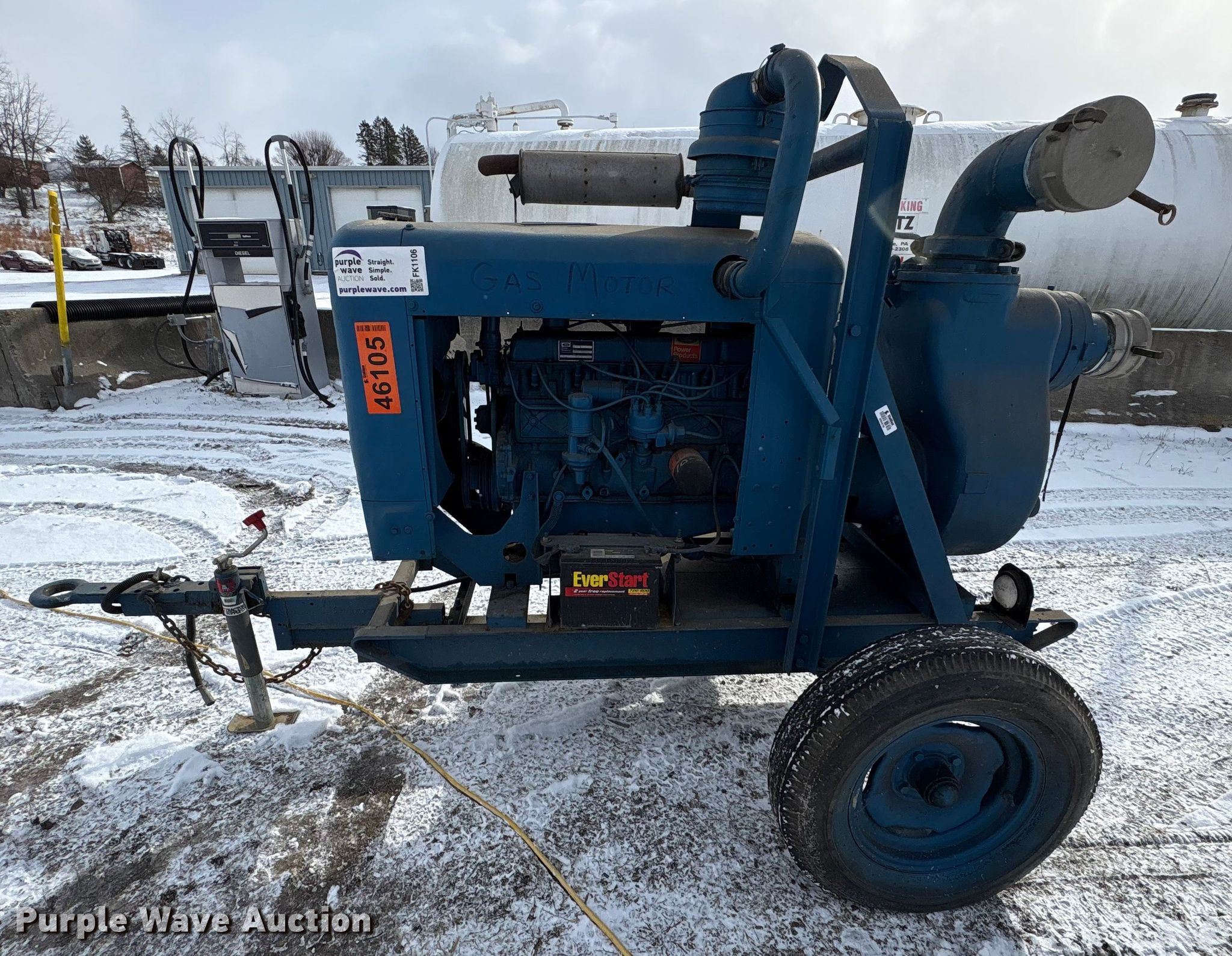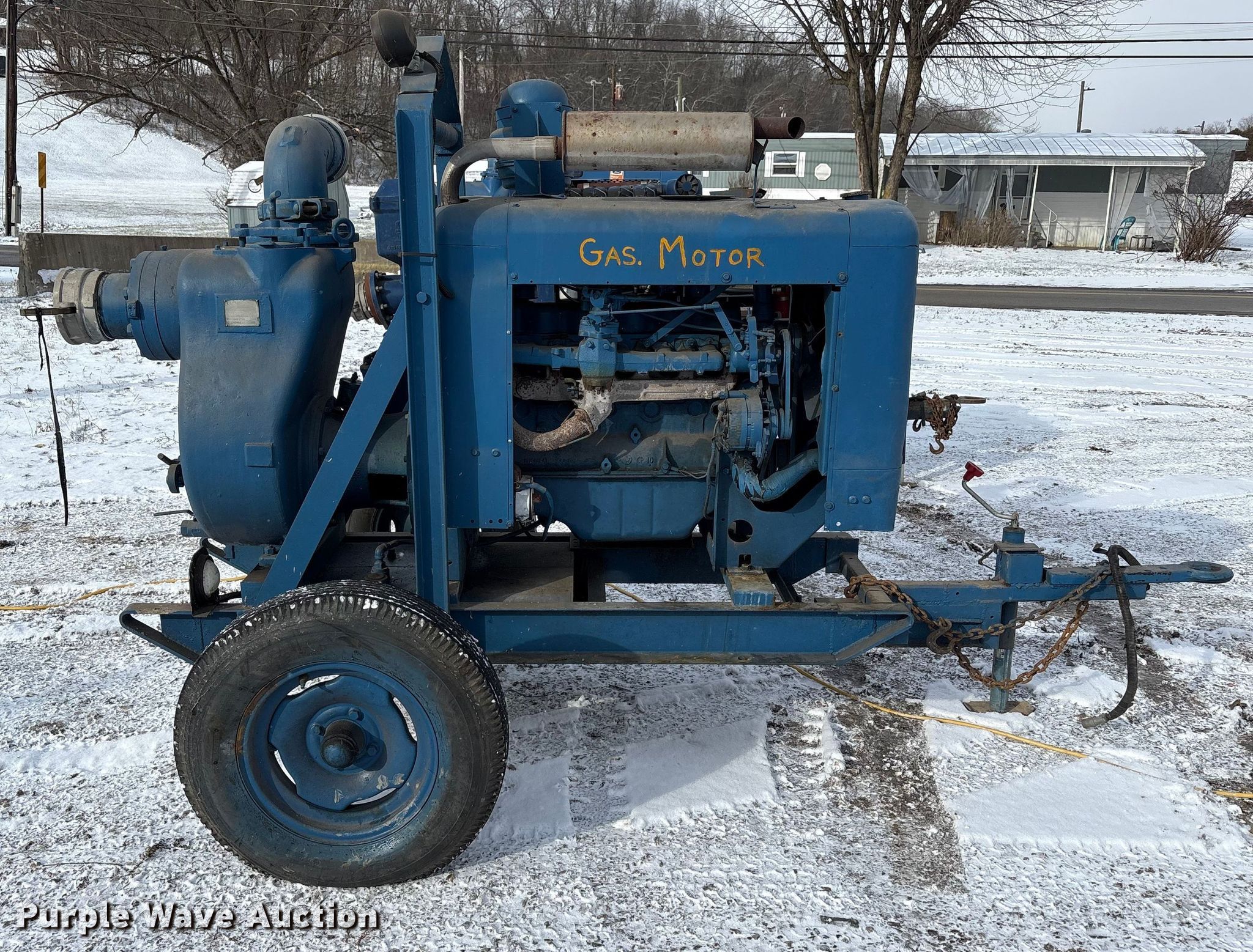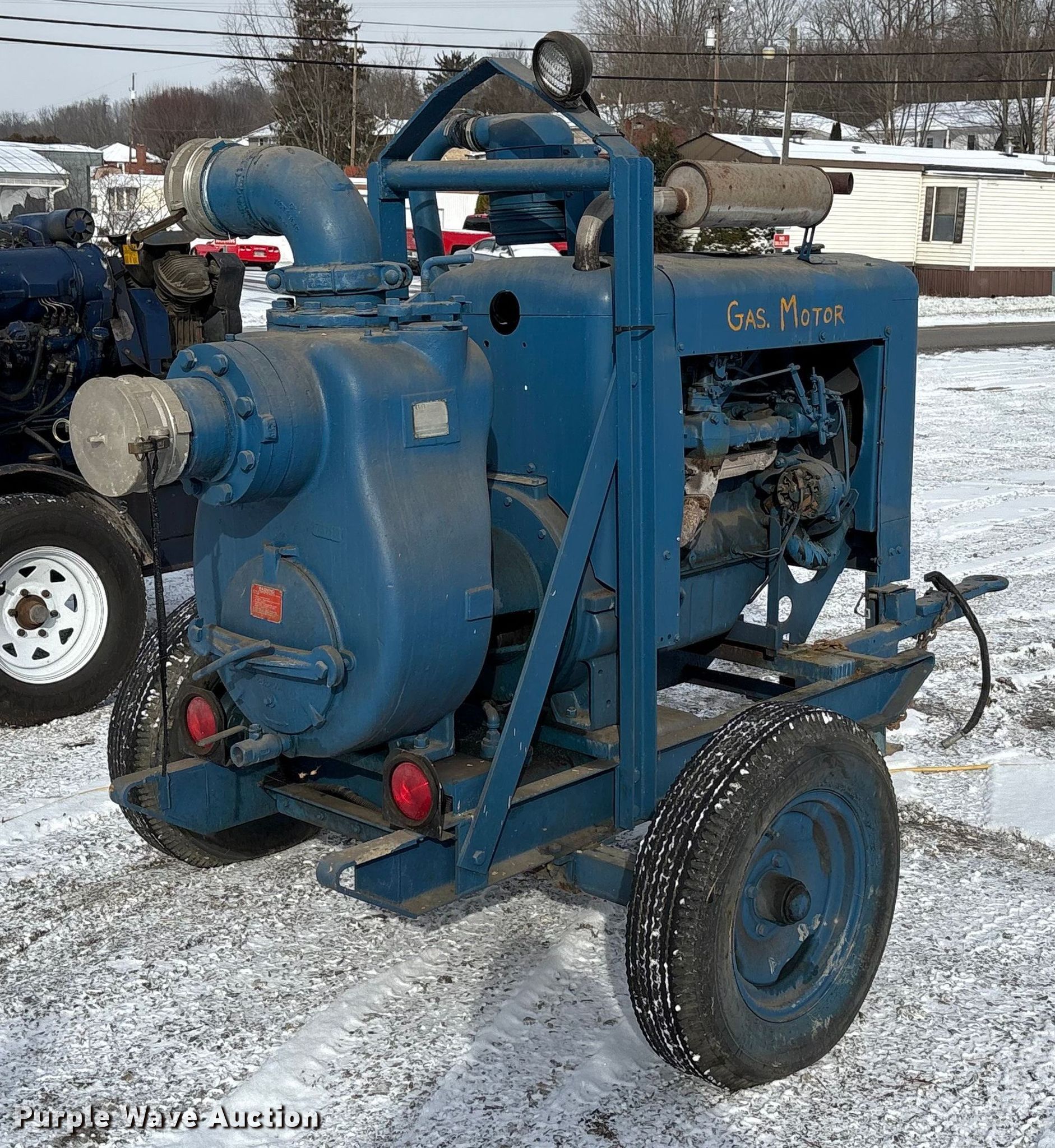 Gorman-Rupp 16C2-F300 centrifugal pump. Serial: 629502, Unit #: 46105. Engine Ford 300GF-6006-E S0-295E, Serial: 26733 R-11-HK 1H, Cylinders: 6, Fuel type: Gas. Features Diameter: 6". Tires Size: 7.75-15. Notes Dead battery, Unknown operating condition. This is worksite support equipment and will not come with a title. Transfer of ownership documentation will be a bill of sale. Stallion Infrastructure Services. Washington, PA 15301