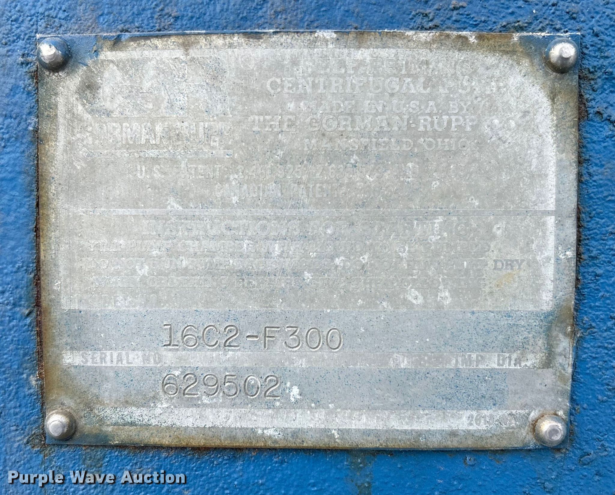 Purple Wave is selling a used Pump in Pennsylvania. This item is a Gorman-Rupp 16C2-F300 centrifugal pump with the following: Serial: 629502, Unit #: 46105