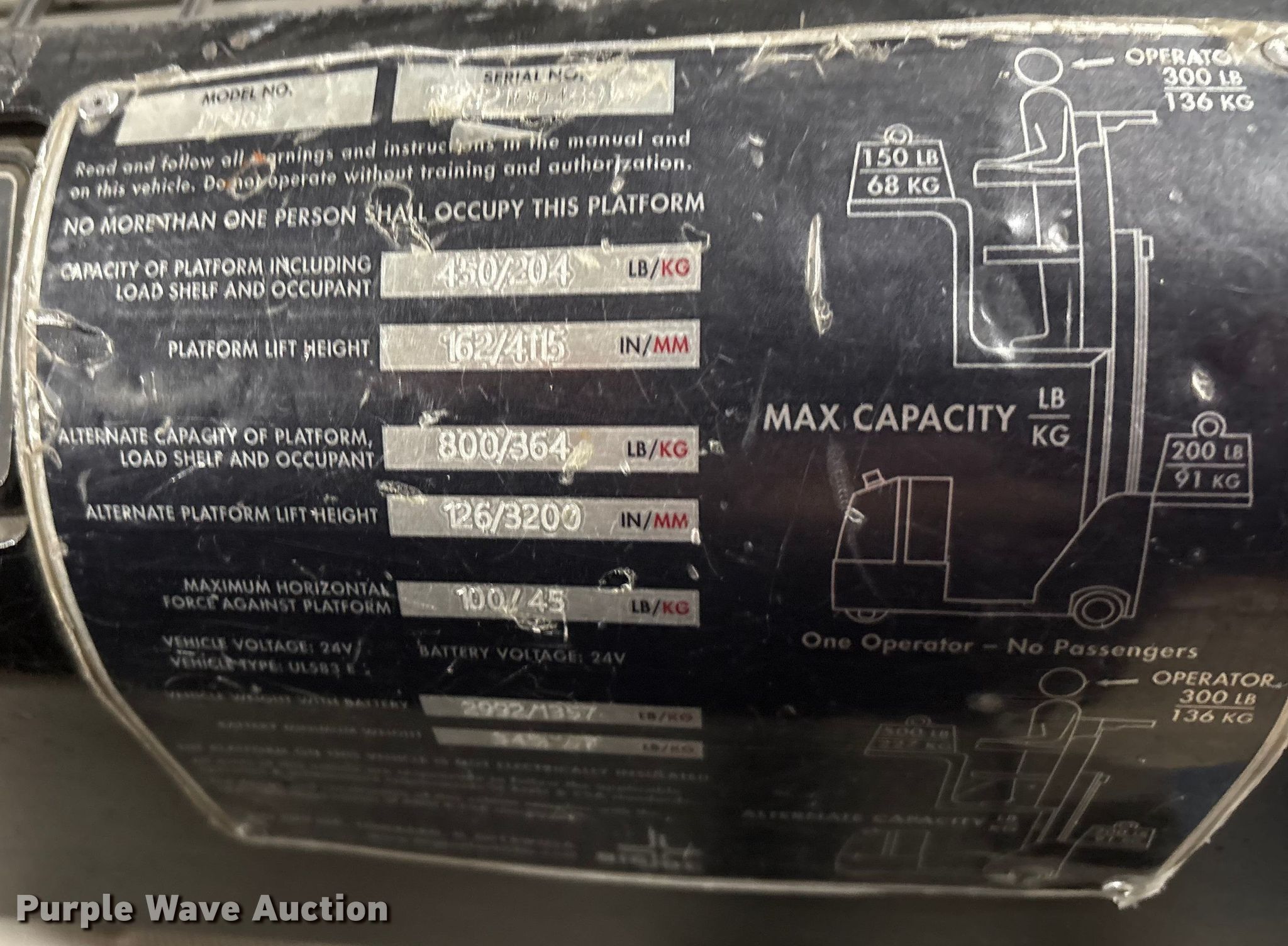 2020 Big Joe J1 order picker. Hours: 427 on meter, Serial: 2282100489, Unit #: SFS1555. Transmission Electric drive. Features Maximum lift capacity: 450 lbs, Maximum lift height: 162", Collapsed mast height: 84", Mast stages: 3. Tires Solid. Ferguson. Appleton, WI 54911