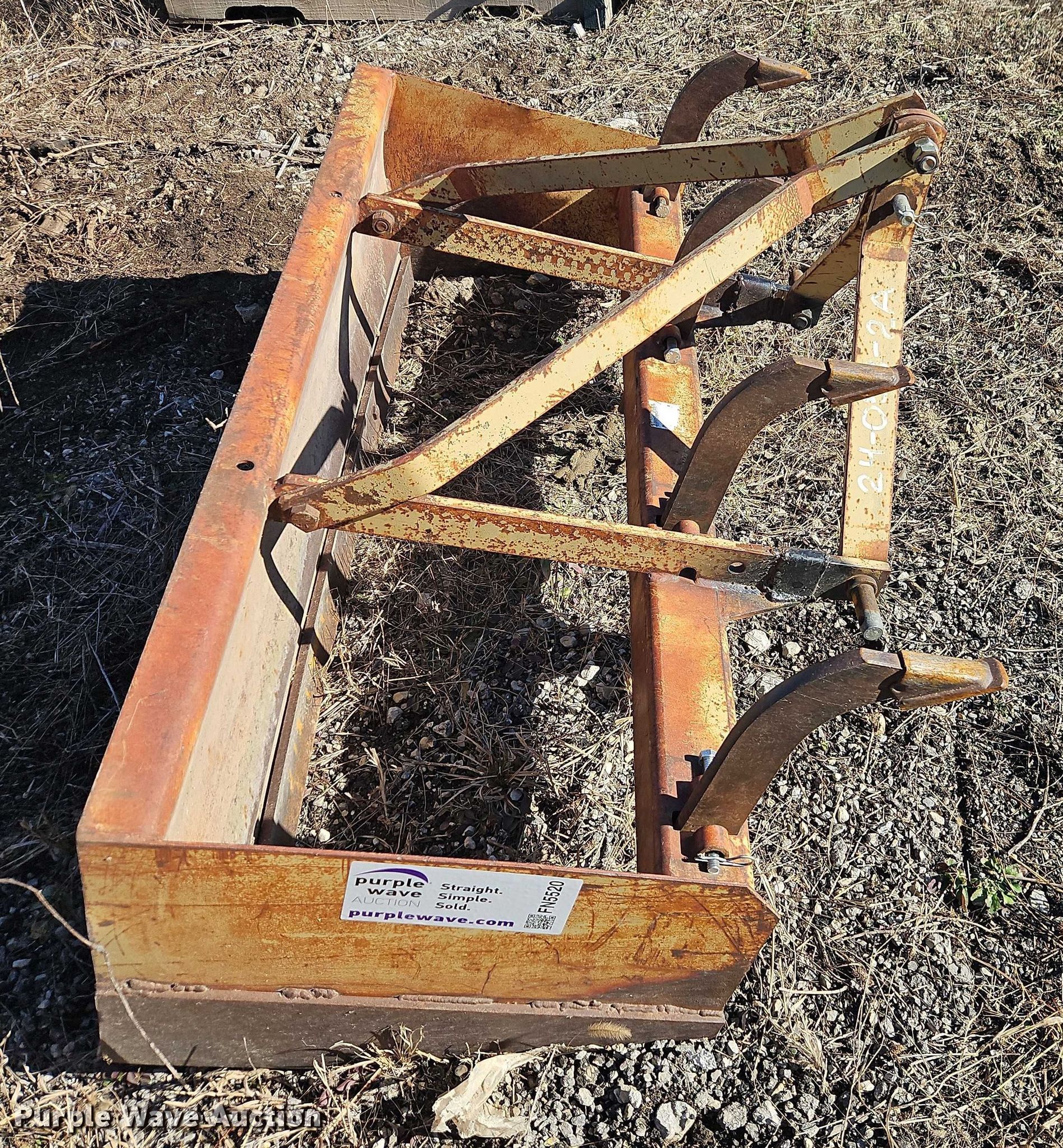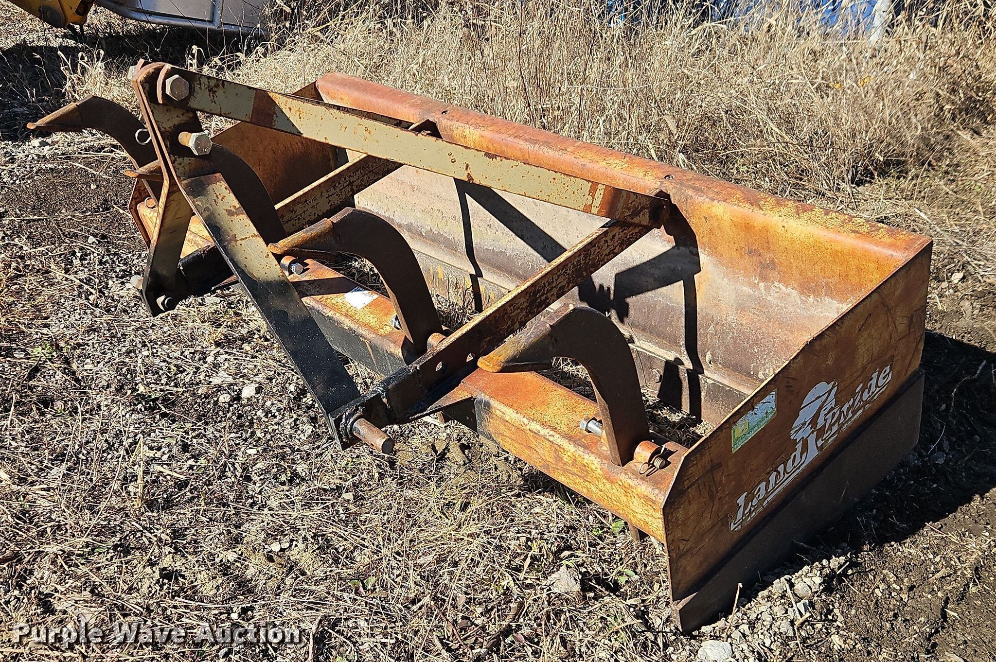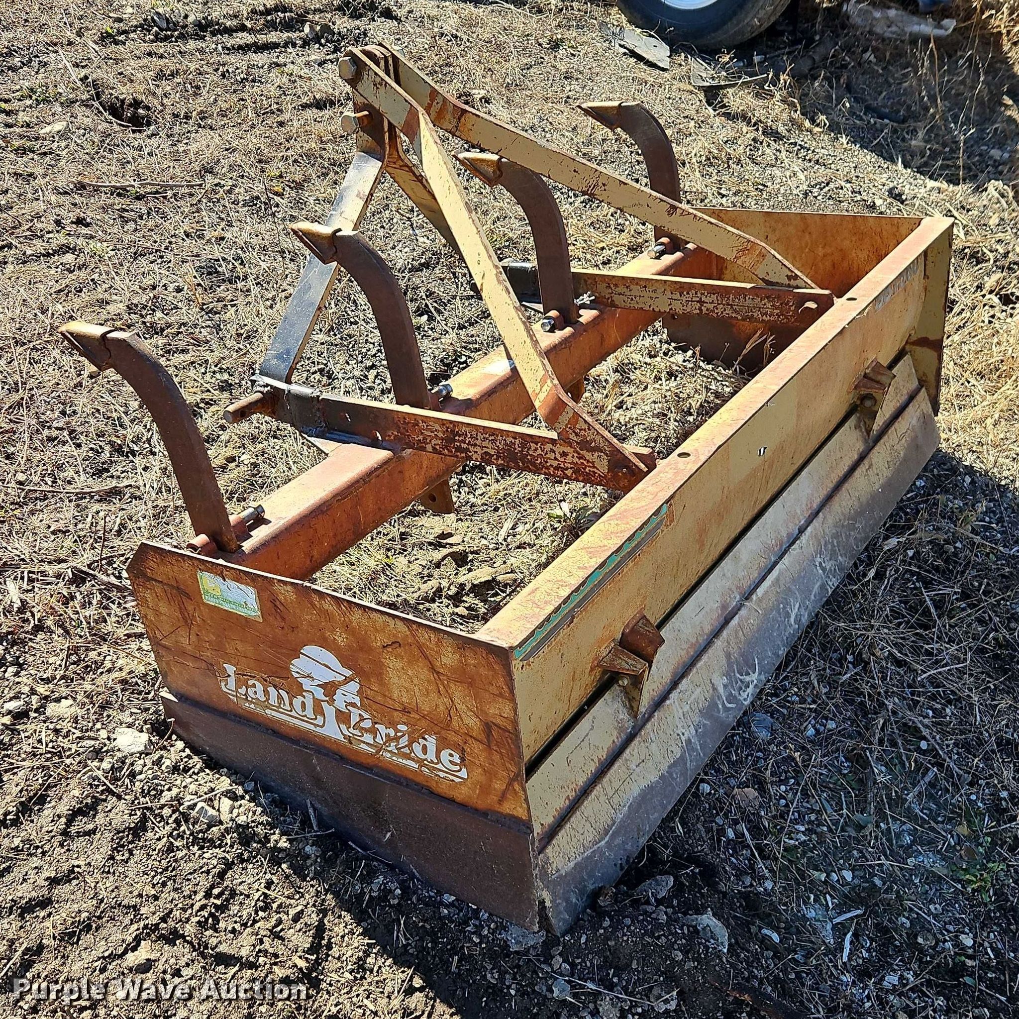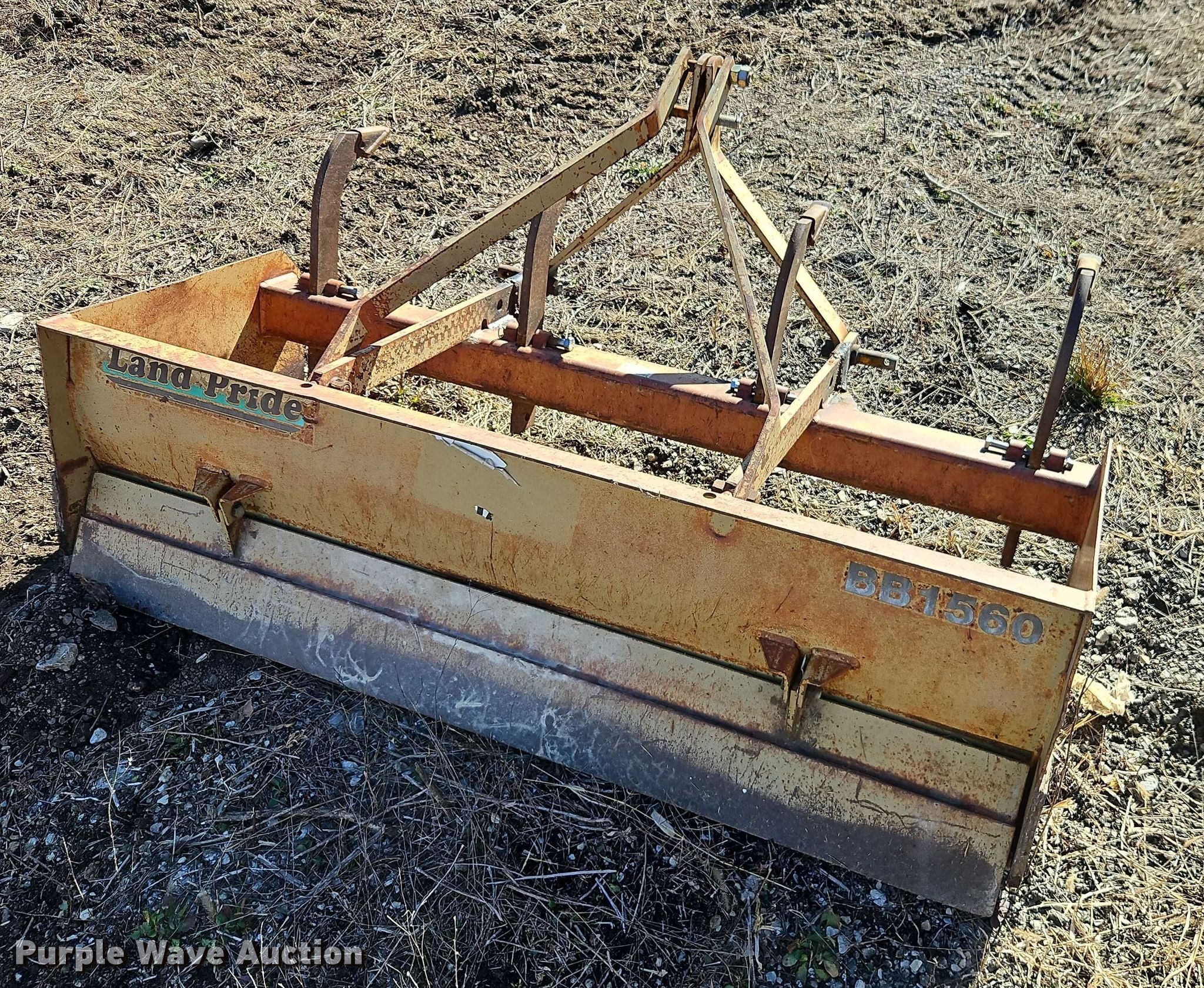 Purple Wave is selling a used Ag Tractor Loader or Attach. in Kansas. This item is a Land Pride BB1560 box blade with the following: Length: 32", Width: 60", Hitch: Three point
