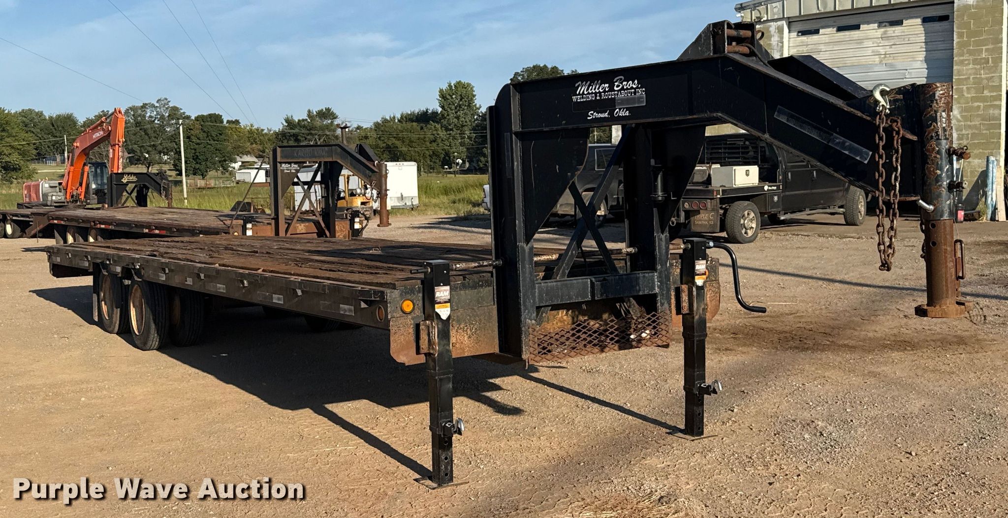 1994 Belshe DT-255 equipment trailer. VIN: 16JF03027R1024693. Dimensions Overall Length: 38', Width: 96", Deck Length: 30', Width: 90". Features Deck type: Wood. Chassis Hitch: Gooseneck, Landing gear: Dual, Suspension: Spring, Brakes: Electric, Axles: Tandem, GVWR: 25,500 lbs, GAWR: 10,000 lbs. Tires Steel wheels, Size: 215/75R17 5. Notes Deck board issues, need replaced, Trailer plug missing. Oklahoma title. Title distribution may be delayed up to 30 days from verification of funds. Miller Bros Welding & Roustabo. Stroud, OK 74079