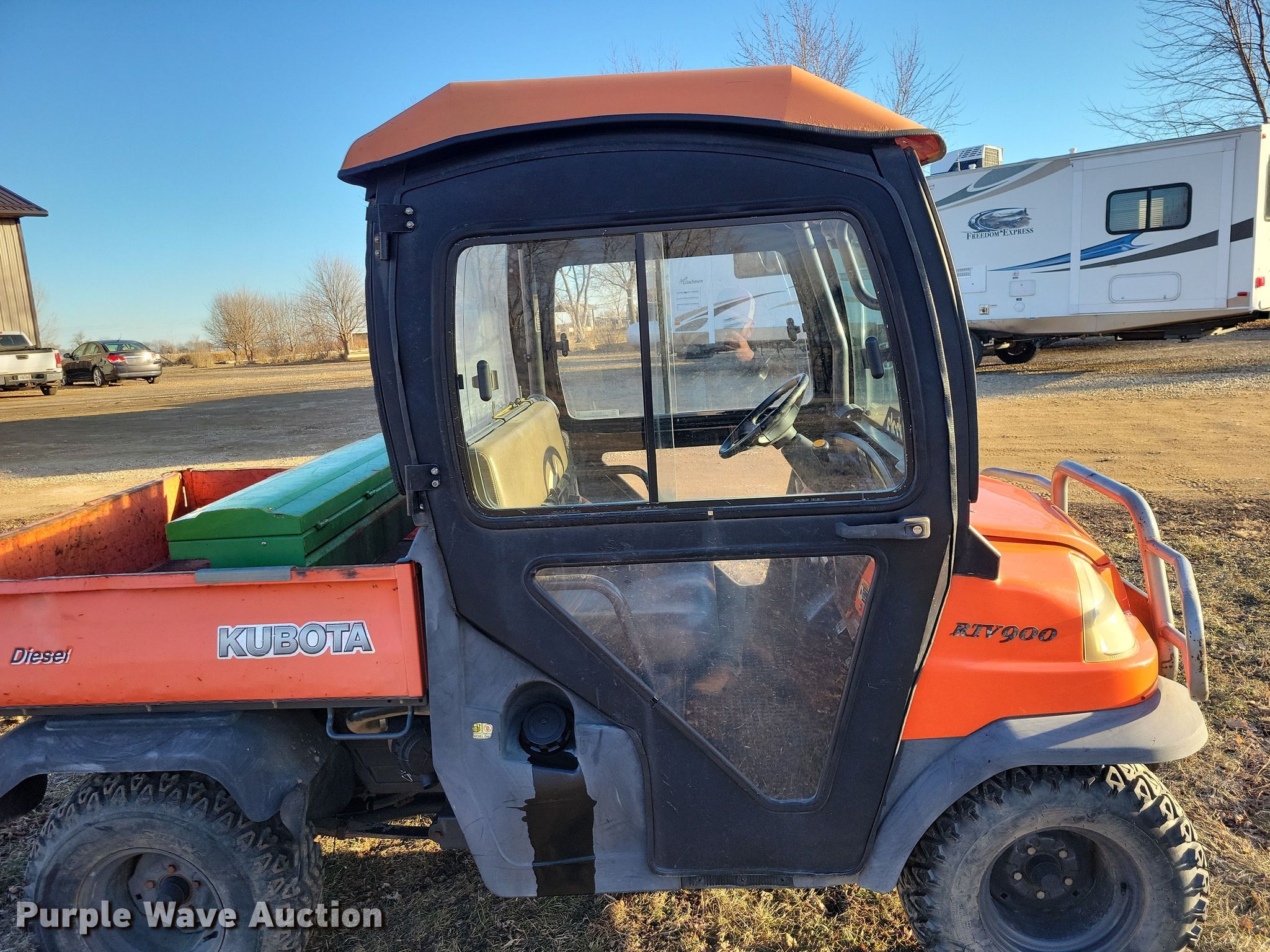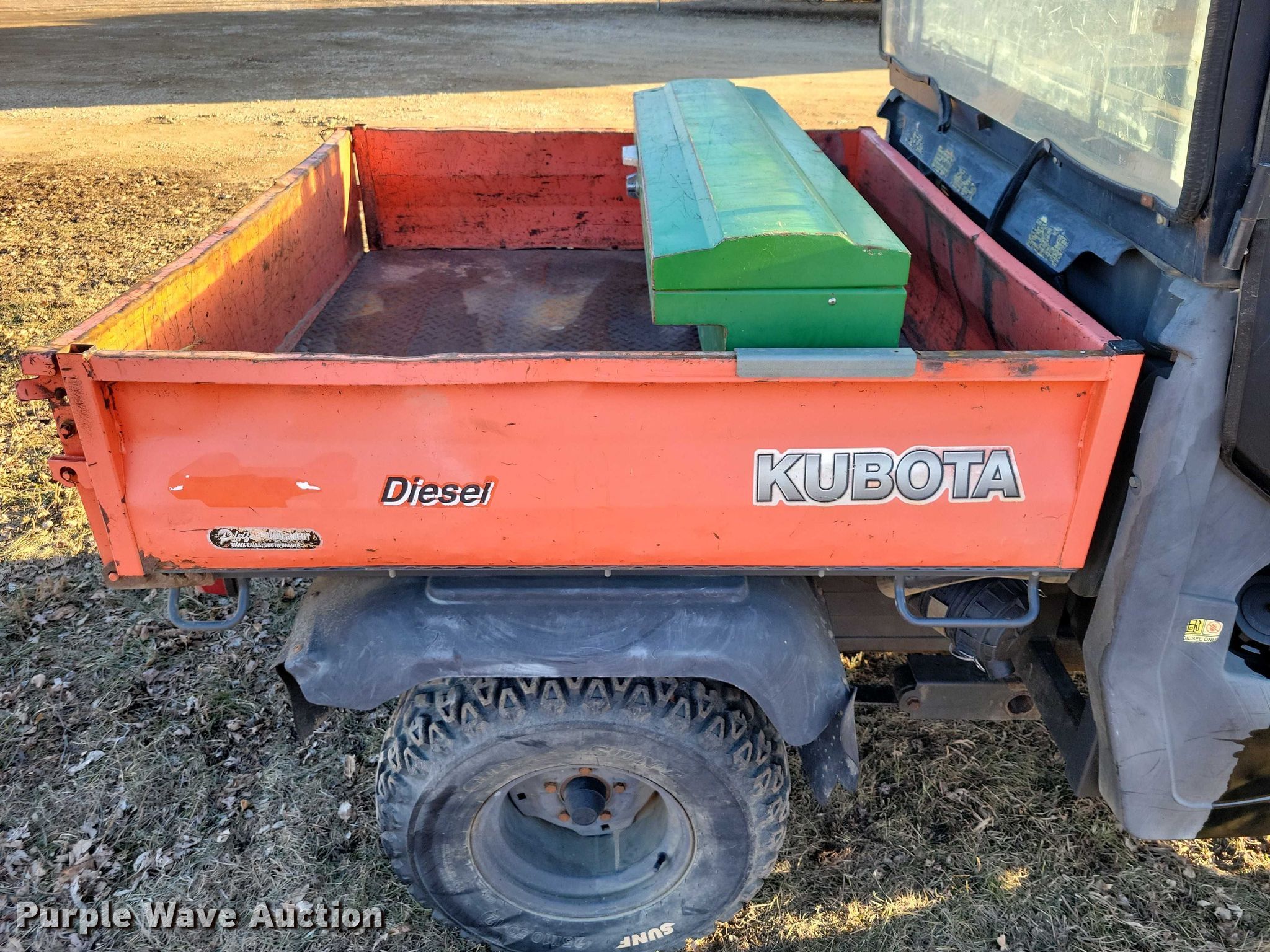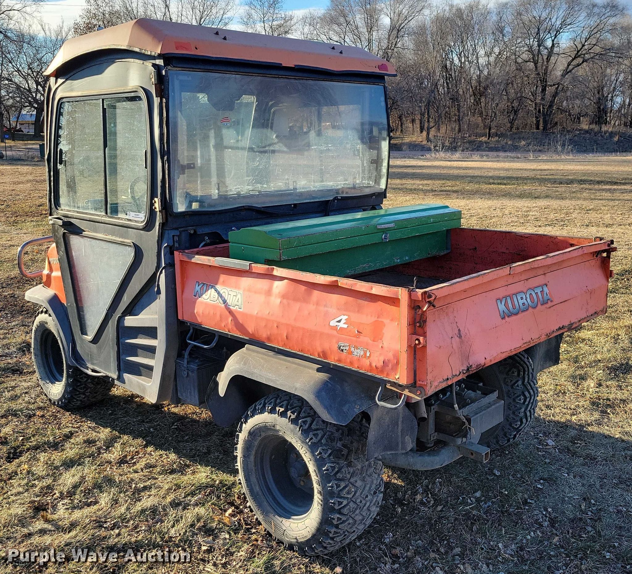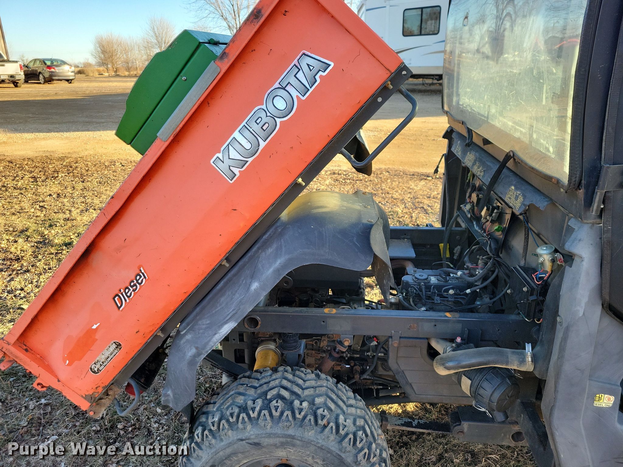 2001 Kubota RTV900 utility vehicle. Hours: 5,429 on meter, VIN: KRTV900A61059346, Serial: 59346. Engine Kubota D902, Displacement:.89L, Cylinders: 3, Fuel type: Diesel, kW: 16.1, Electric start. Transmission Automatic. Chassis Four wheel drive/ All wheel drive. Operators station OROPS. Features Grille guard, Receiver hitch, Dump bed 47" L x 52" W, Dump bed type: Manual. Tires Size: 25x10.5-12. Transfer of ownership documentation will be a bill of sale. Riverview Auto. Centerville, SD 57014