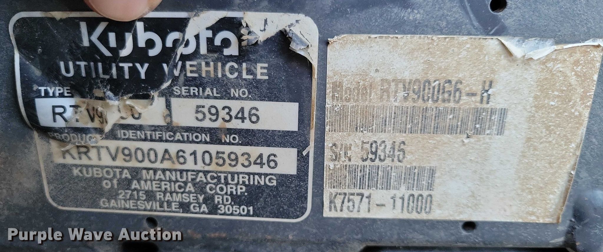 Purple Wave is selling a used Utility Vehicle in South Dakota. This item is a 2001 Kubota RTV900 utility vehicle with the following: Hours: 5,429 on meter, VIN: KRTV900A61059346, Serial: 59346