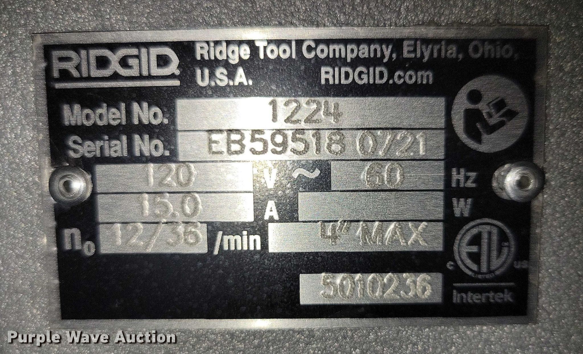 Purple Wave is selling a used Tools in Iowa. This item is a Rigid 1224 pipe threader with the following: Serial: EB595180721
