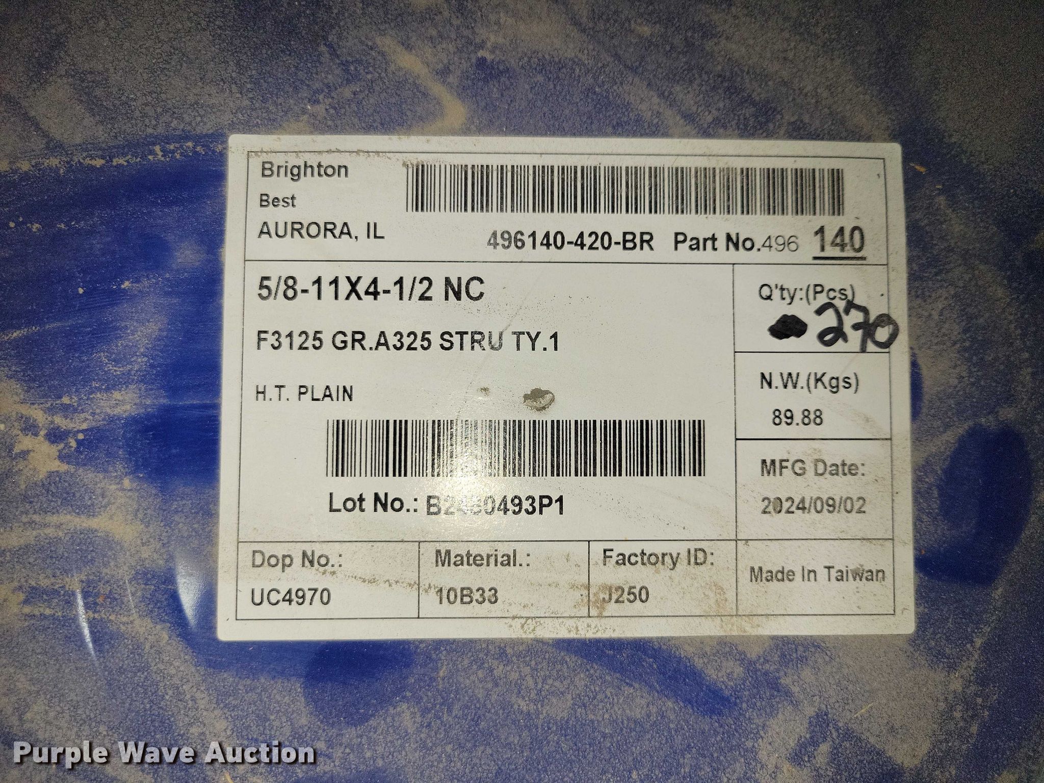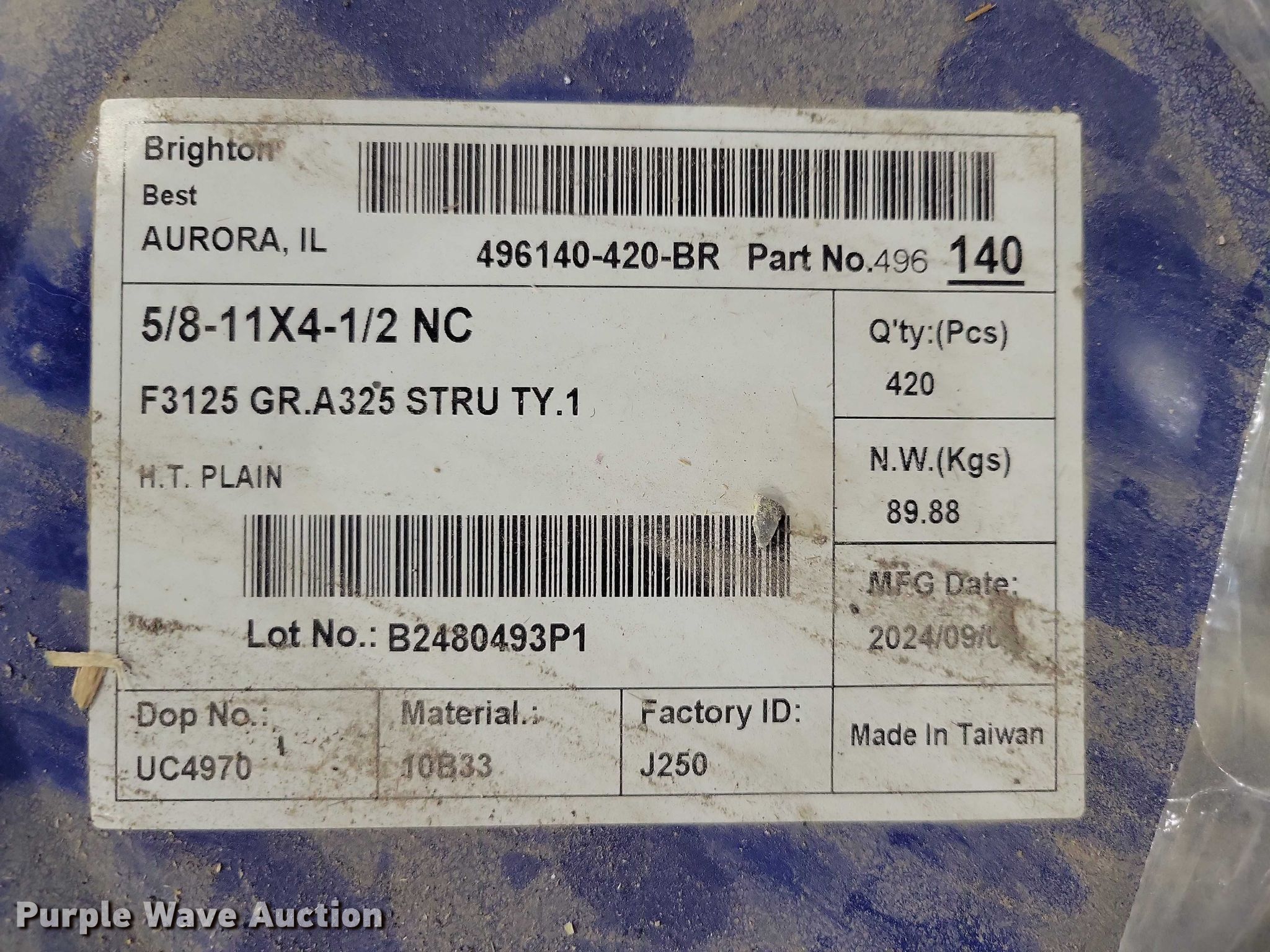 Purple Wave is selling a used Tools in Iowa. This item is a Hardware with the following: Bolts:, 5/8", Nuts, 5/8", 3/4", Unused
