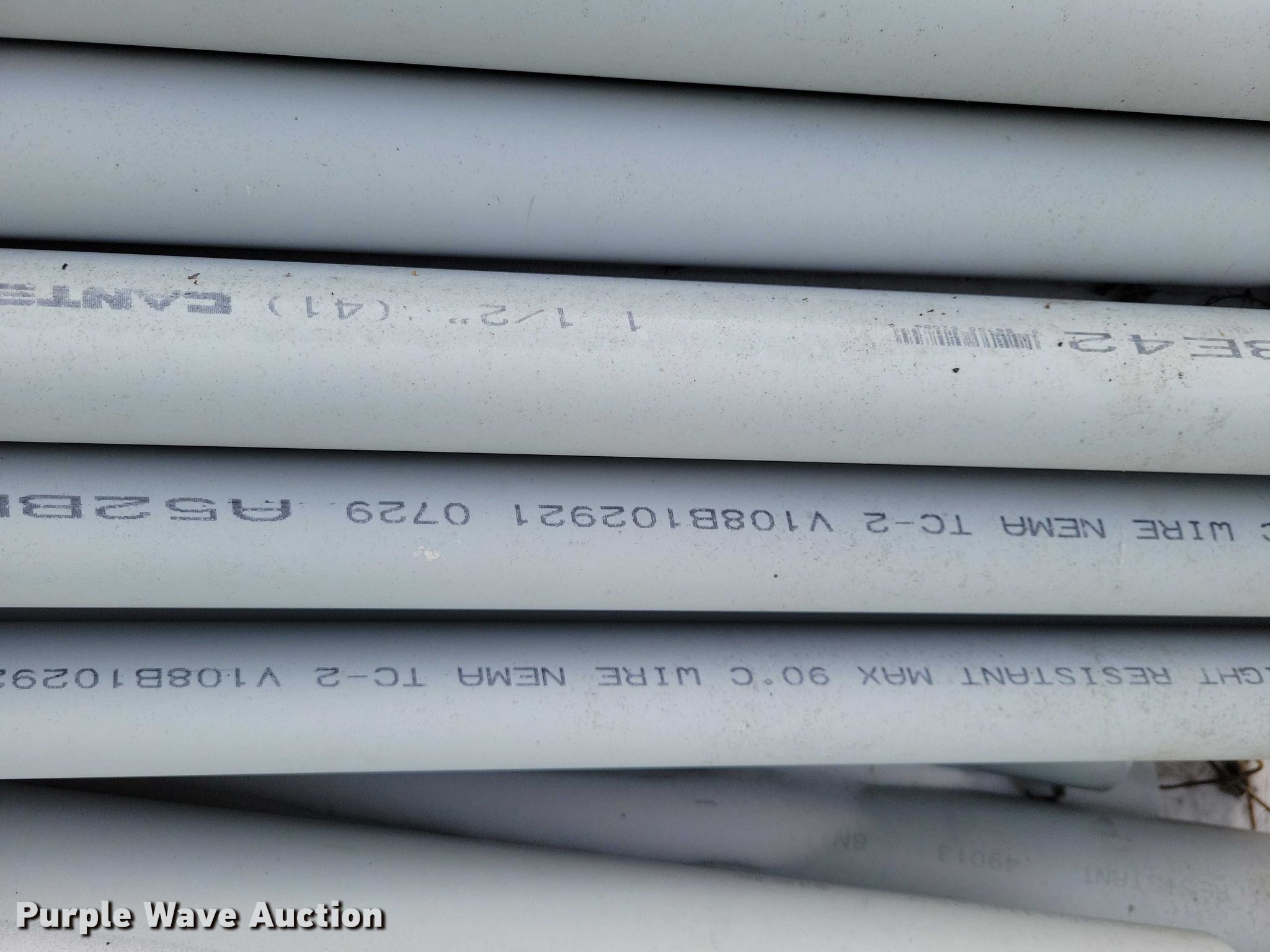 Purple Wave is selling a used Building Materials in Iowa. This item is a Building materials with the following: Conduit, 1.5" x 21', 3" x 21', Various lengths