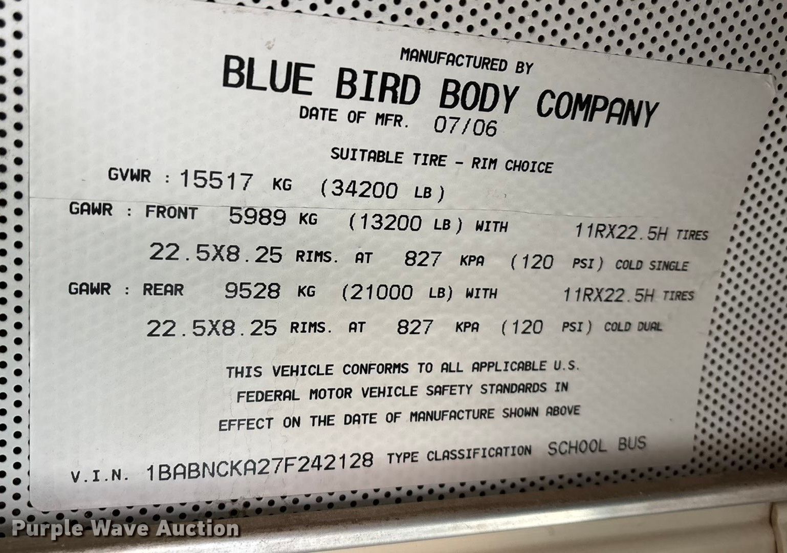 Purple Wave is selling a used Bus in Nebraska. This item is a 2007 Blue Bird All American school bus with the following: Miles: 144,433 on odometer, VIN: 1BABNCKA27F242128
