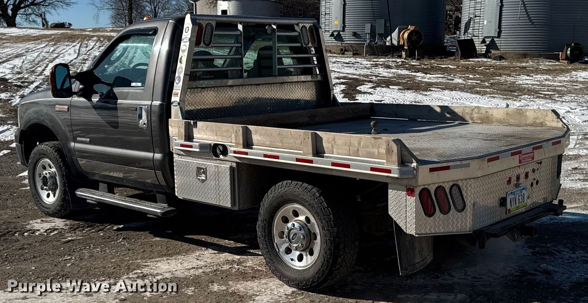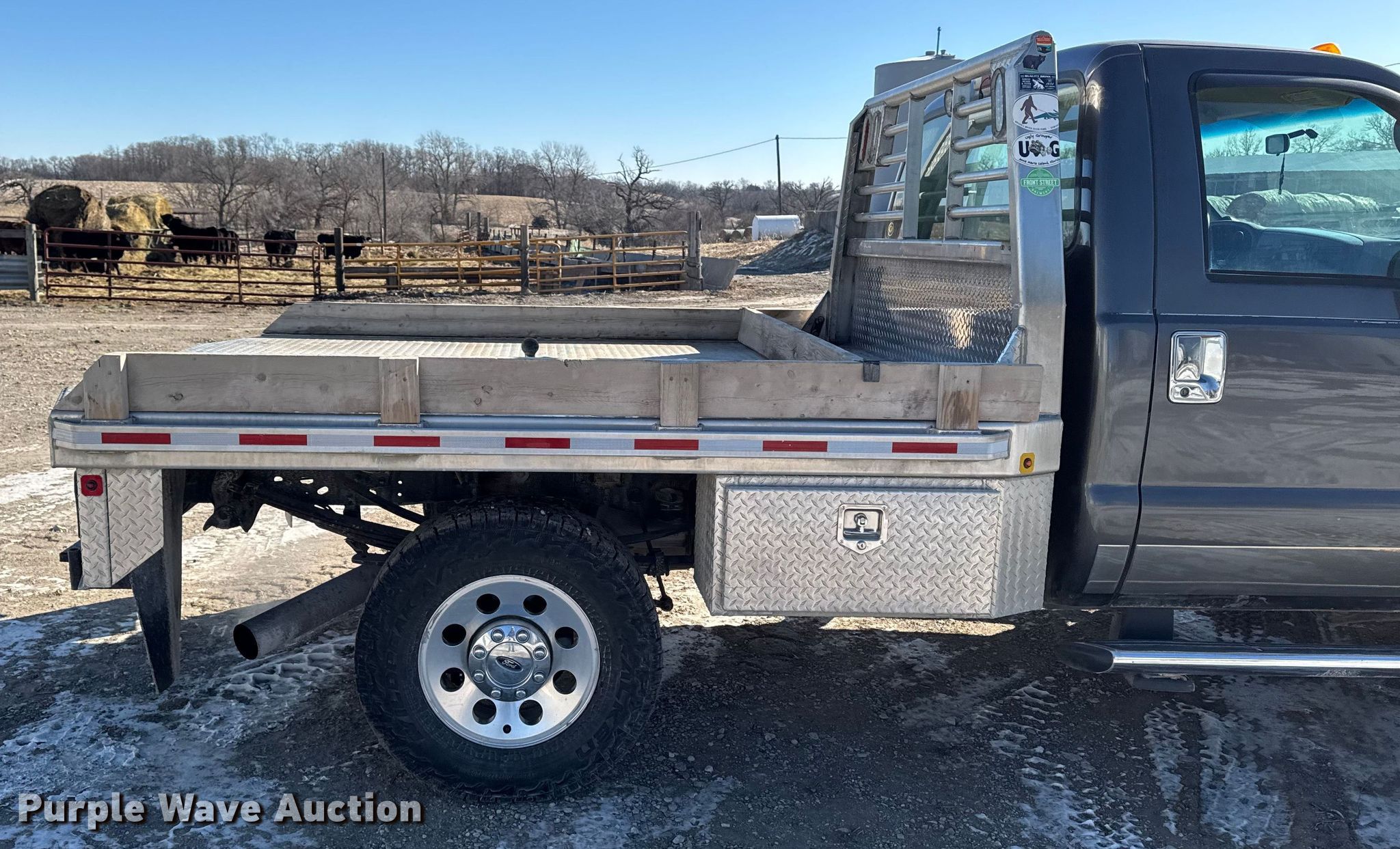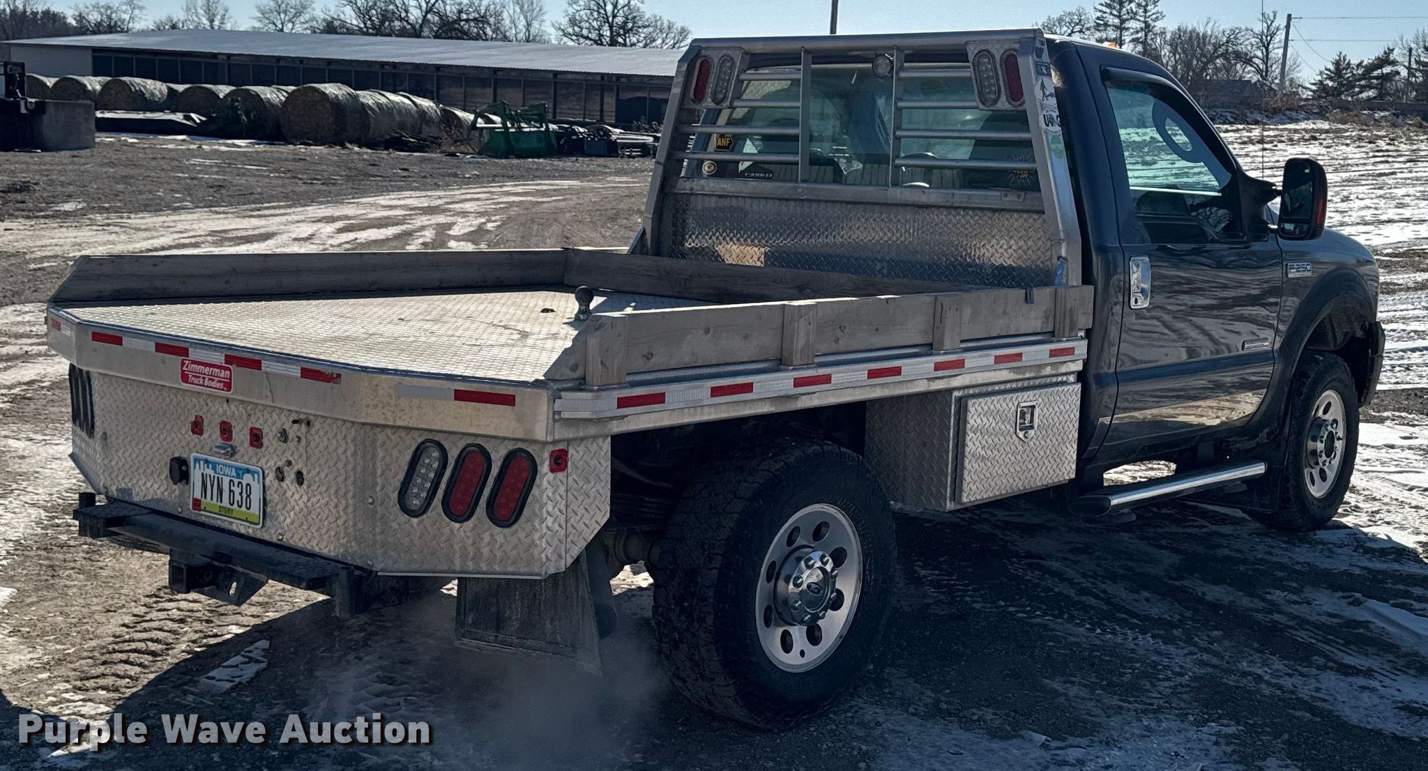 2005 Ford F250 XLT Super Duty flatbed pickup truck. Miles: 287,914 on odometer, Hours: 8,142 on meter, Miles or hours may vary, unit still in use, VIN: 1FTSF21P15EA78392. Engine Displacement: 6.0L, Cylinders: 8, Fuel type: Diesel. Transmission Automatic, Four wheel drive. Interior AC, Heat, Power windows, Power locks, Cruise control, Brake controller. Features Bed Flatbed, Zimmerman, Length: 8' 6", Width: 84", Hitch: Gooseneck. Tires Size: 265/70R17. Notes Dash warning indicator: TPC fault, Air bag helper springs. Iowa title. Title distribution may be delayed up to 14 days from verification of funds. Wright cattle. Collins, IA 50055