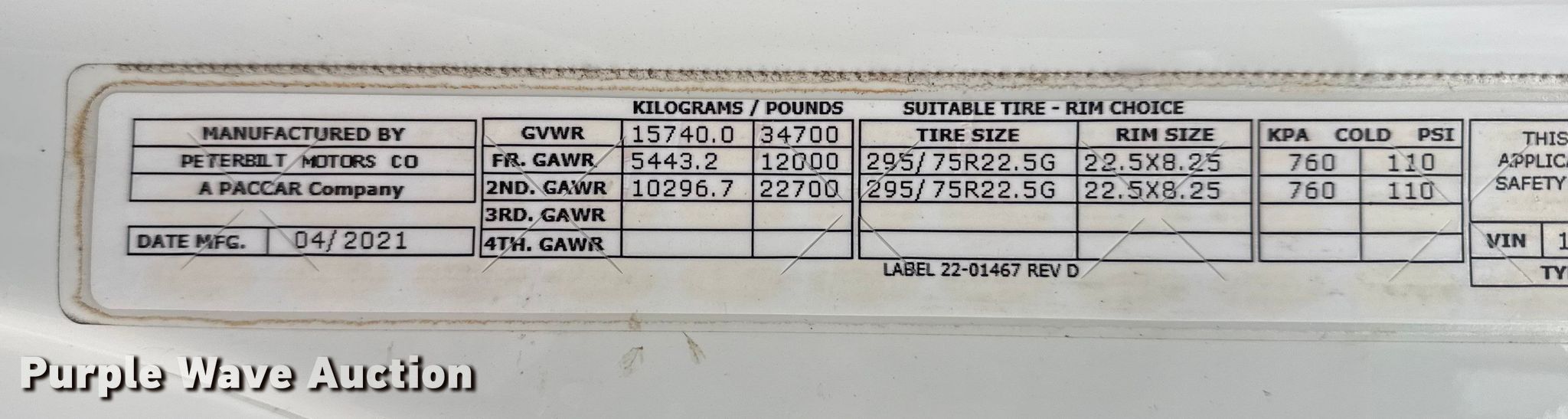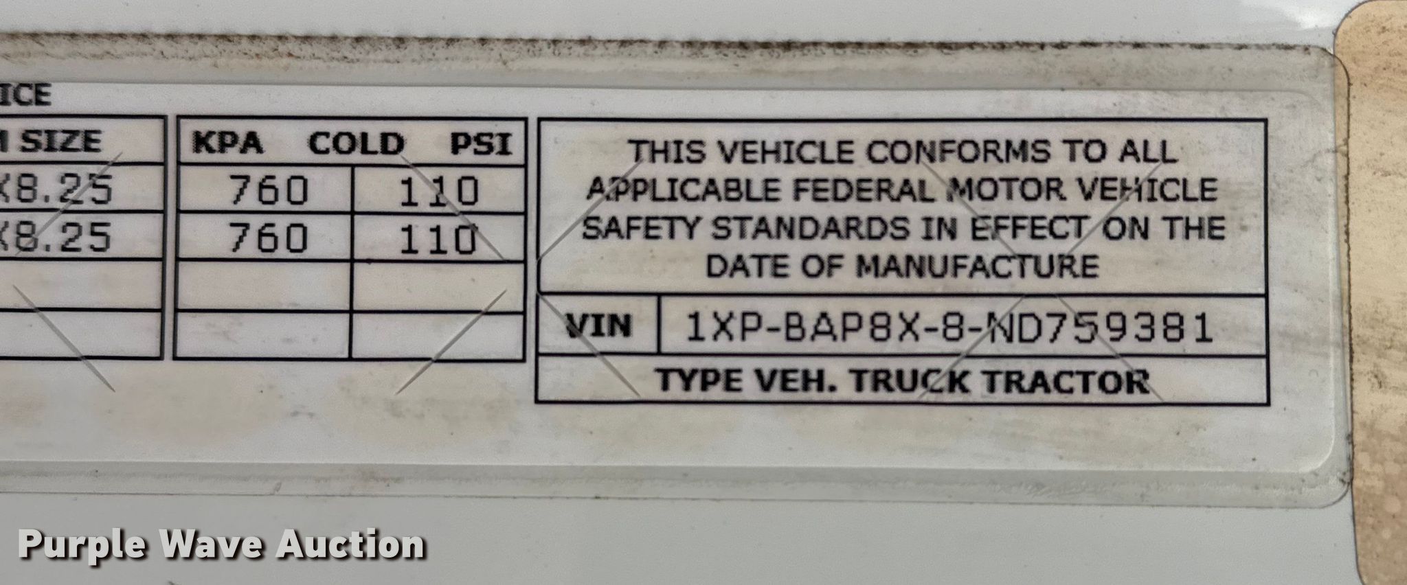 - VIN: 1XPBAP8X8ND759381