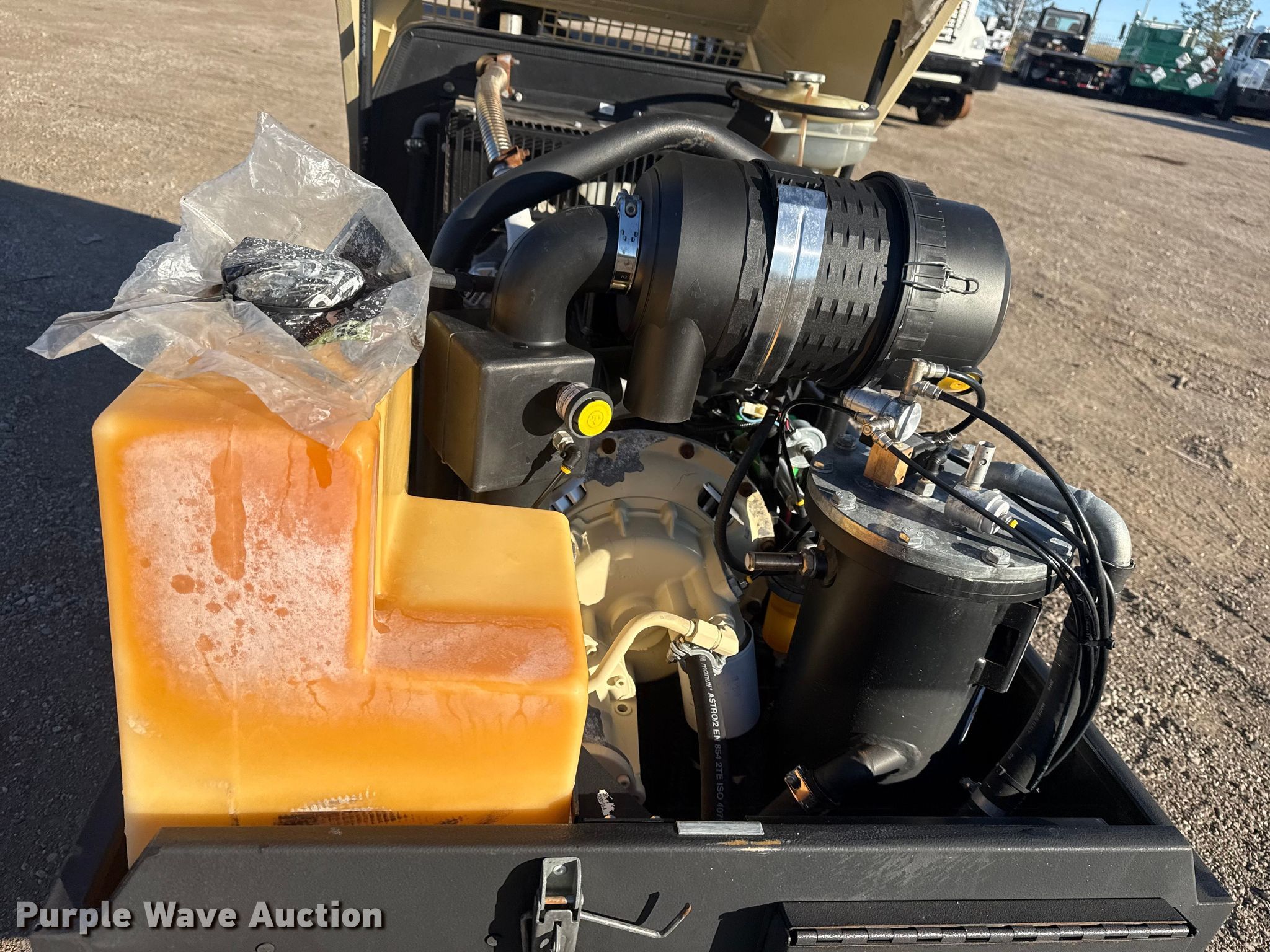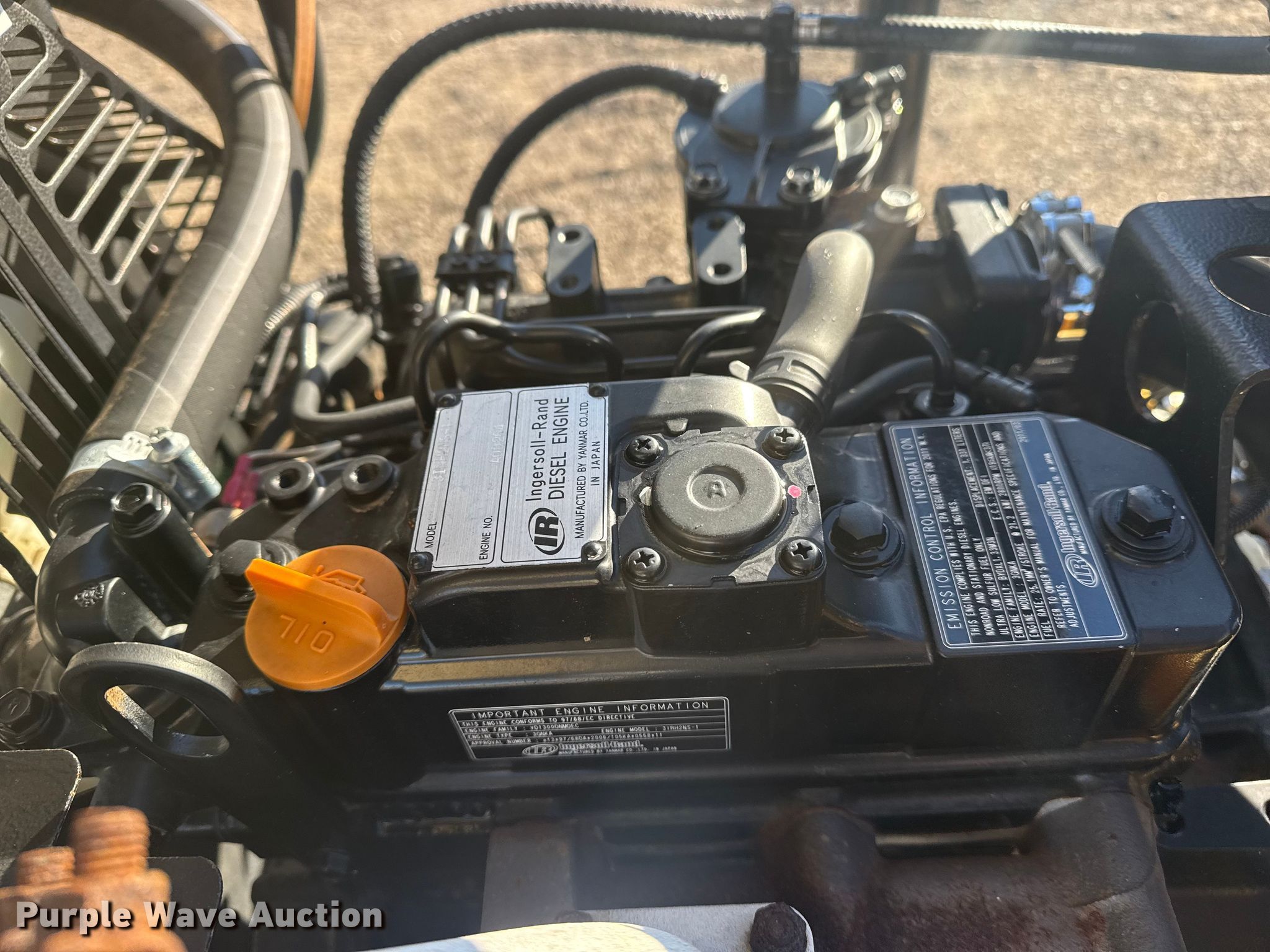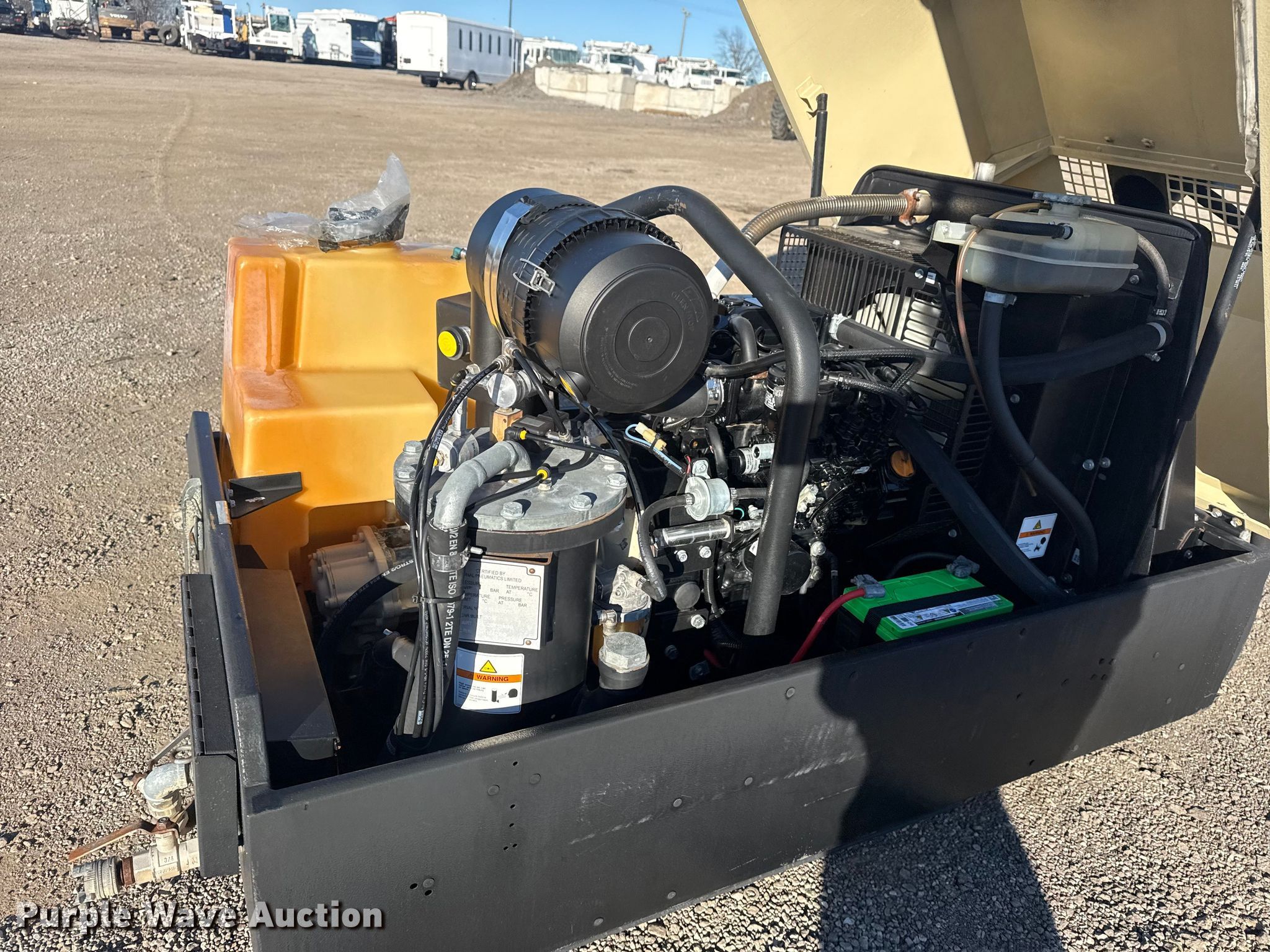2011 Ingersoll Rand P90 air compressor. Hours: 112 on meter, Serial: UN5P90UTMBY108875. Engine Ingersoll Rand 3GNKA, Serial: A00264, Displacement: 1.331L, Cylinders: 3, Fuel type: Diesel. Features Air compressor PSI: 90, Skid mounted. Collinsville, OK 74021