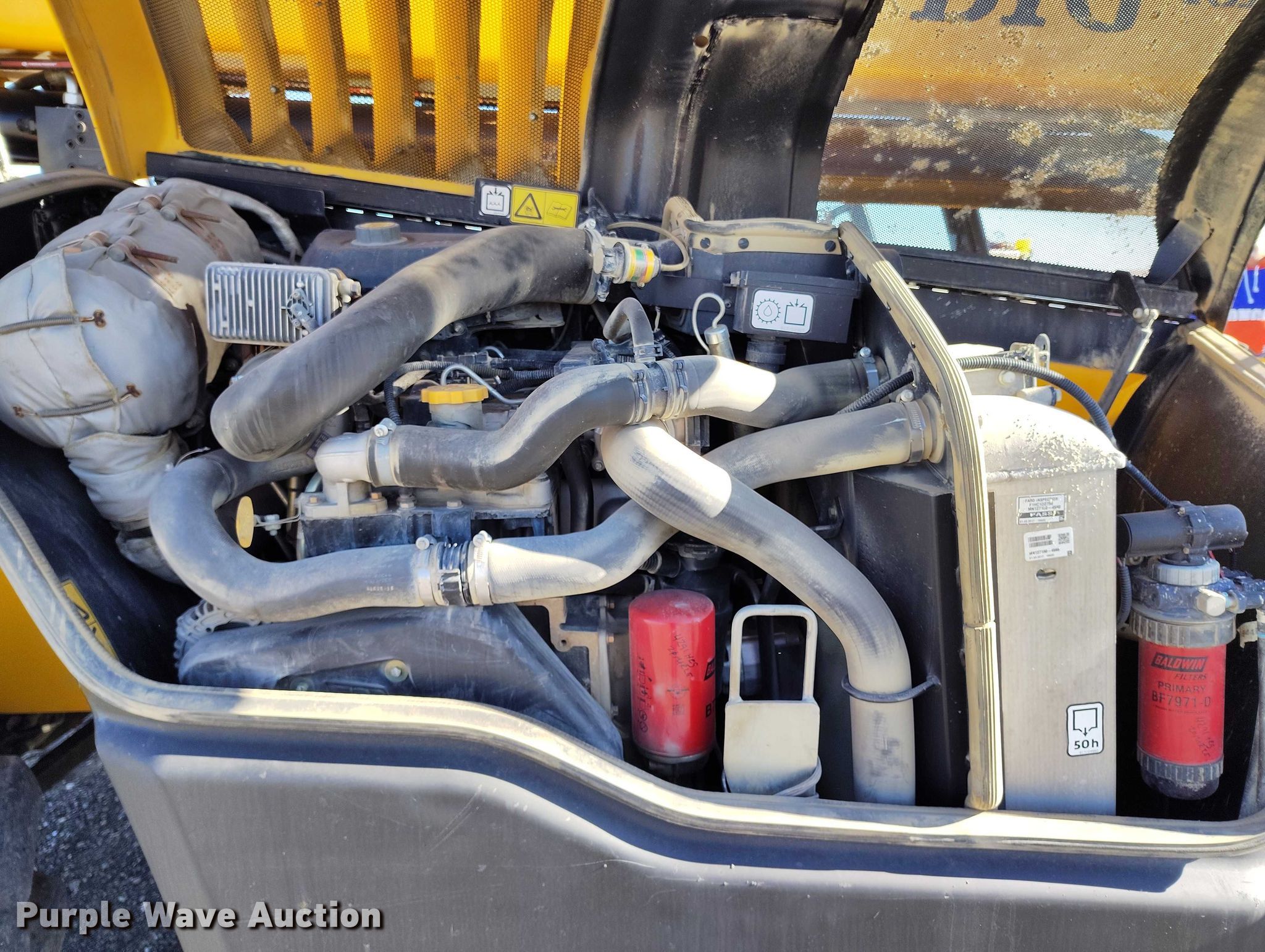 2017 JCB 510.56 telehandler. Hours: 4,400 on meter, Serial: JCB5CG2GJH2502577. Engine JCB, Cylinders: 4, Fuel type: Diesel. Transmission Powershift, 4F - 4R, Four wheel drive. Operators station OROPS, Steering: Crab, Four wheel. Features Maximum lift capacity: 10,000 lbs, Maximum lift height: 56', Boom stages: 3, Fork length: 60", Auxiliary hydraulics, Tilt carriage, Hydraulic outriggers, Hydraulic leveling, Quick attach: Manual. Tires Size: 17.5-25. Notes Jump start required during on-site data collection. Big Rentals. Watkins, CO 80137