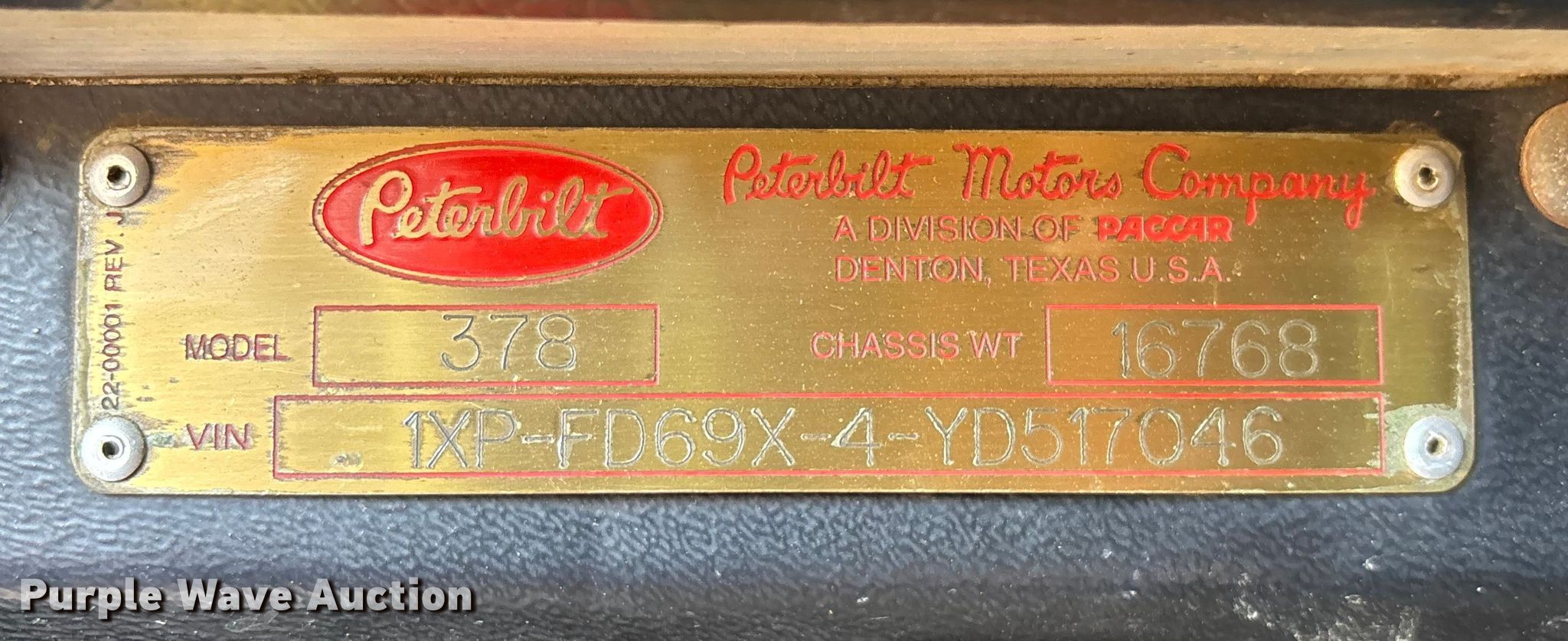 Take a look at this used 2000 Peterbilt 378 grapple crane truck being sold on February 26th, 2026 in the Thursday February 26 Construction Equipment Auction made by Peterbilt. Take a look at all of the item information below or take a look at similar auctions for Construction Trucks.