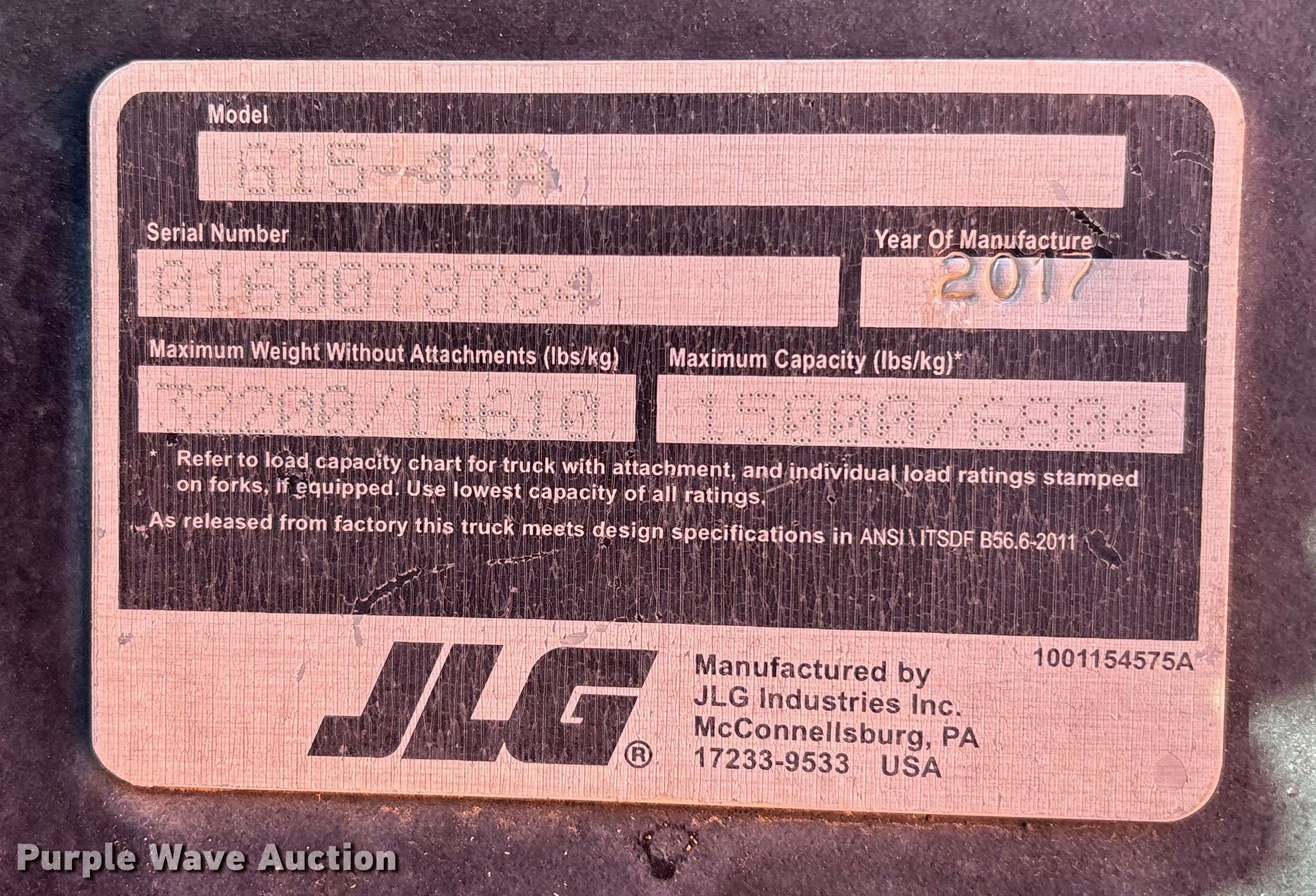 Purple Wave is selling a used Telehandler in Florida. This item is a 2017 JPG G15-44A telehandler with the following: Hours: 2,643 on meter, Serial: 160078784, Unit #: SFS2835