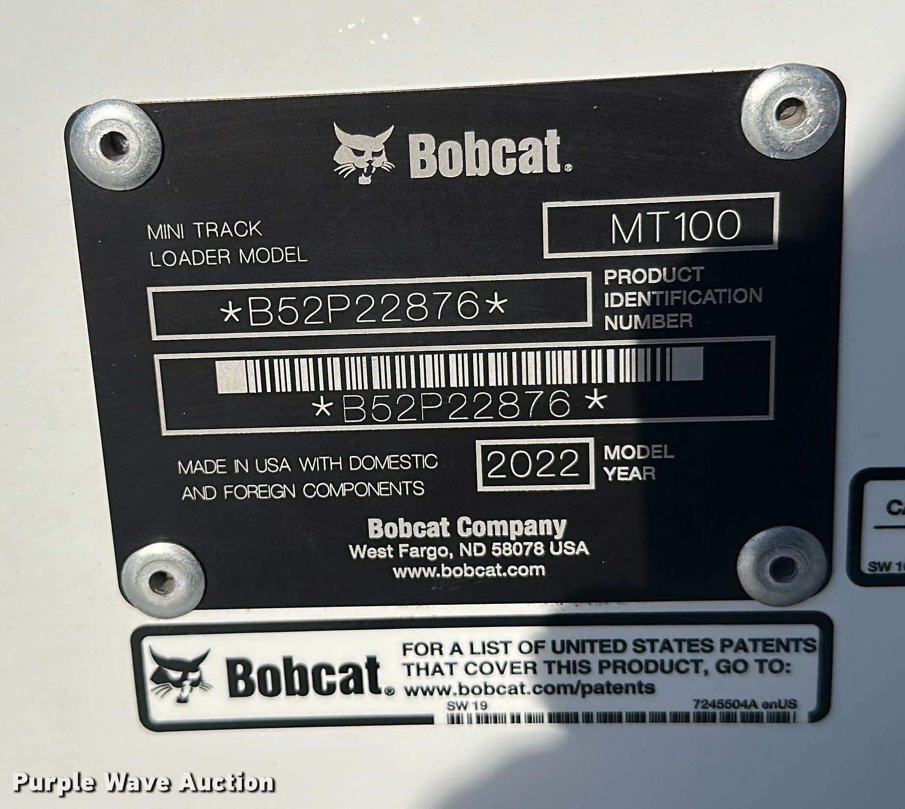 Purple Wave is selling a used Compact Utility Loader in Minnesota. This item is a 2022 Bobcat MT100 compact utility loader with the following: Hours: 142 on meter, Serial: B52P22876