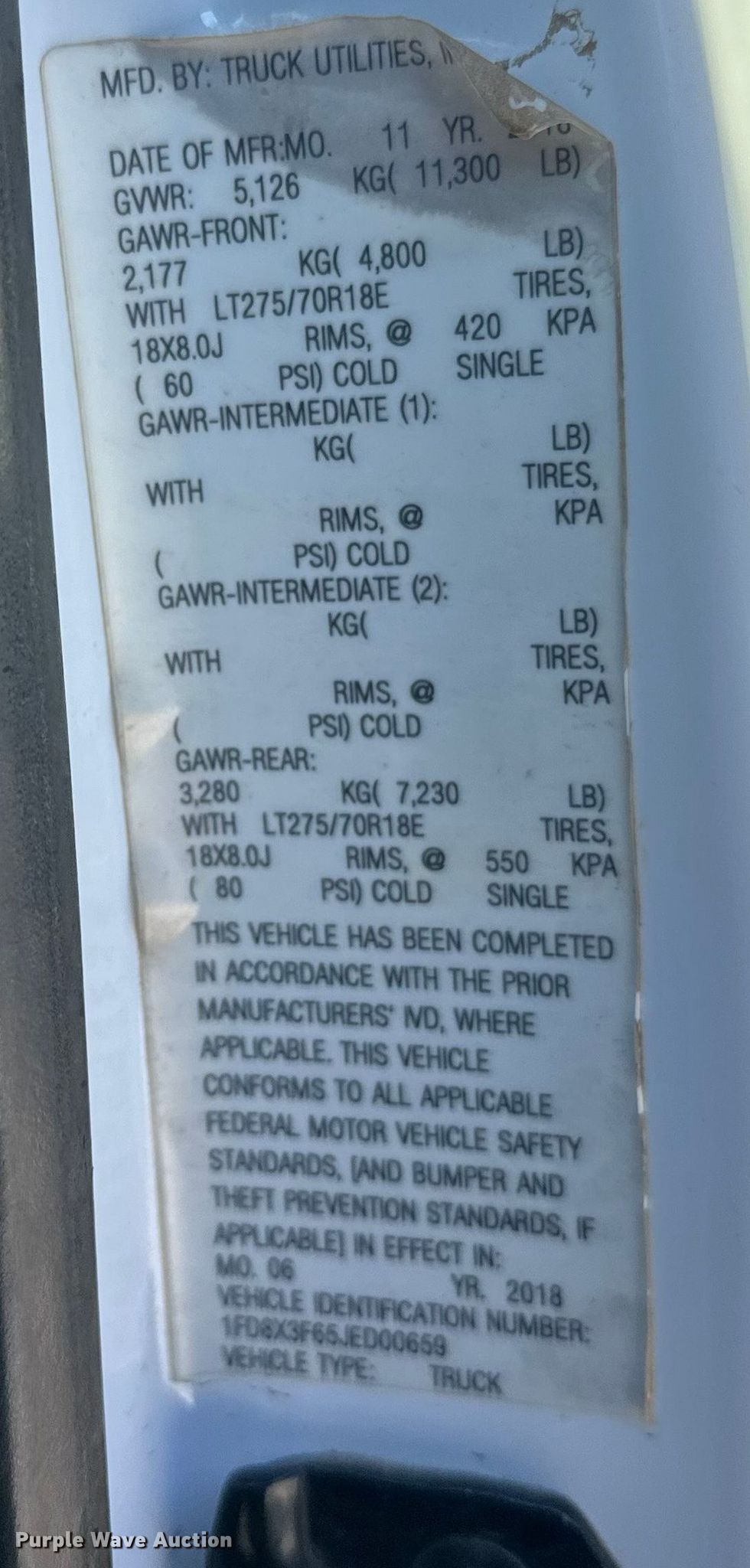 - VIN: 1FD8X3F65JED00659
