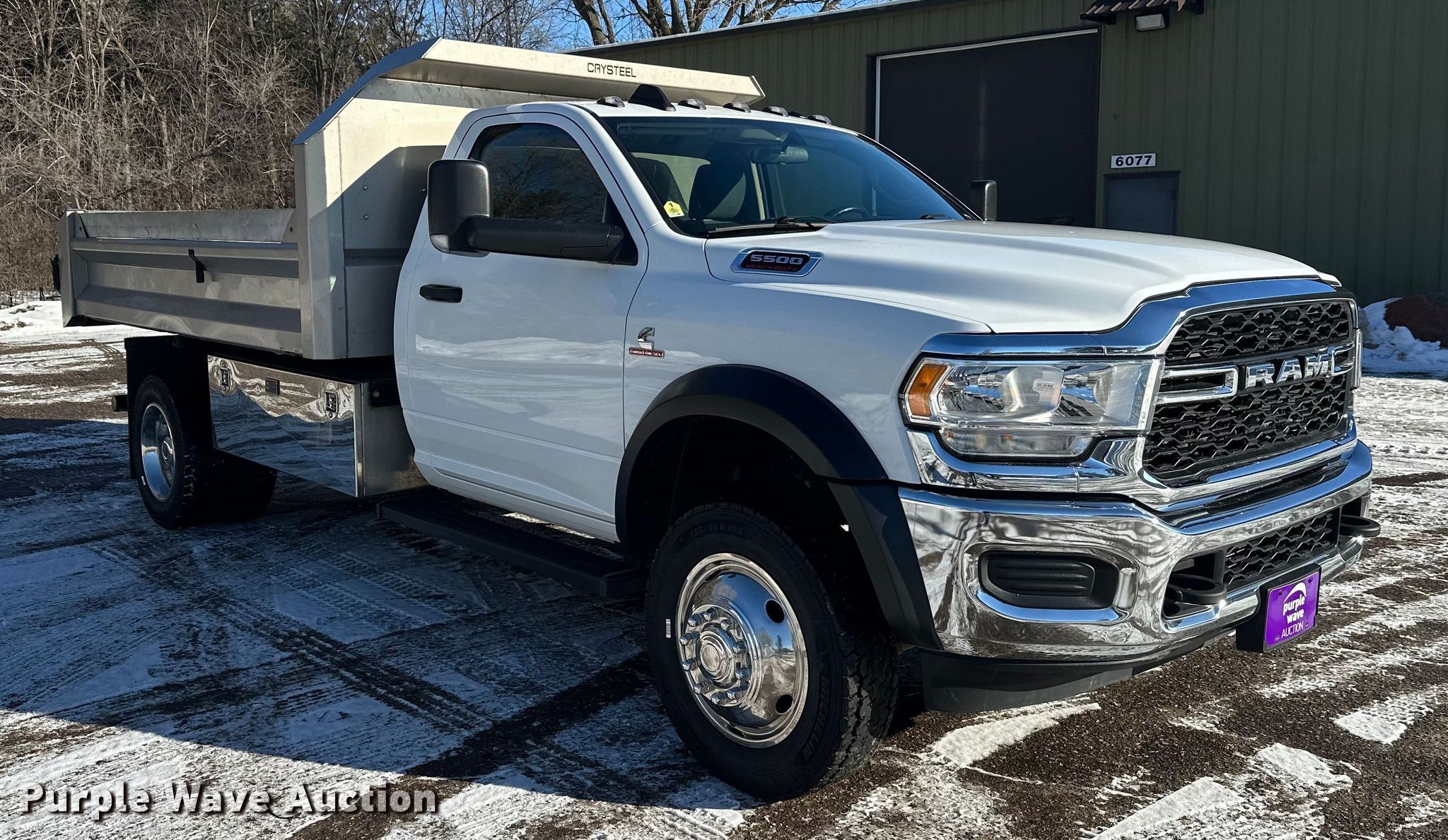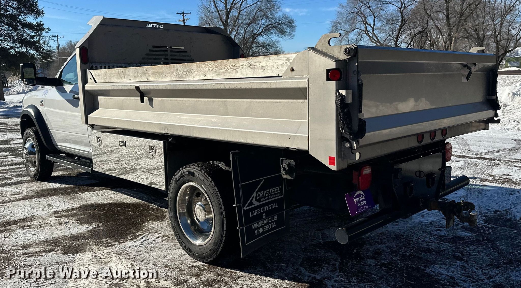 2019 RAM 5500 dump truck. Miles: 59,913 on odometer, VIN: 3C7WRNBL4KG704790. Engine Displacement: 6.7L, Cylinders: 6, Fuel type: Diesel. Transmission Automatic. Chassis Axles: Single, Suspension: Spring, Brakes: Hydraulic, Four wheel drive. Interior AC, Heat, Power windows, Cruise control, Brake controller. Features Bed Dump bed, Crysteel, Length: 11' 6", Width: 8' 3". Tires Size: 225/70R19.5. Minnesota title. Title distribution may be delayed up to 14 days from verification of funds. Valley Concrete, Inc.. Stillwater, MN 55082