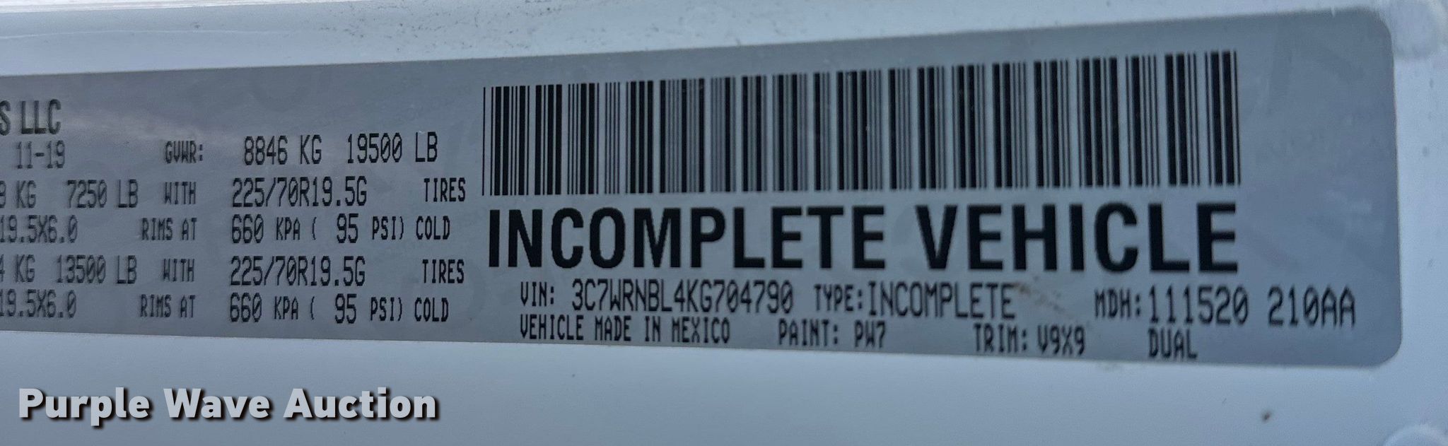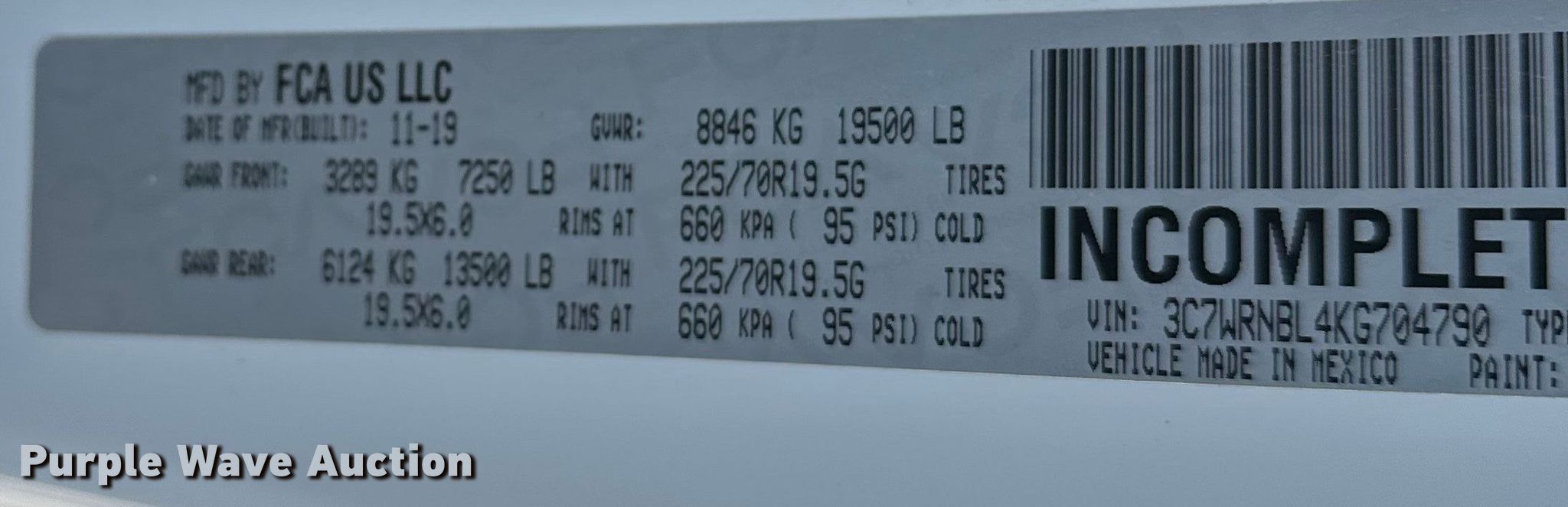 - VIN: 3C7WRNBL4KG704790