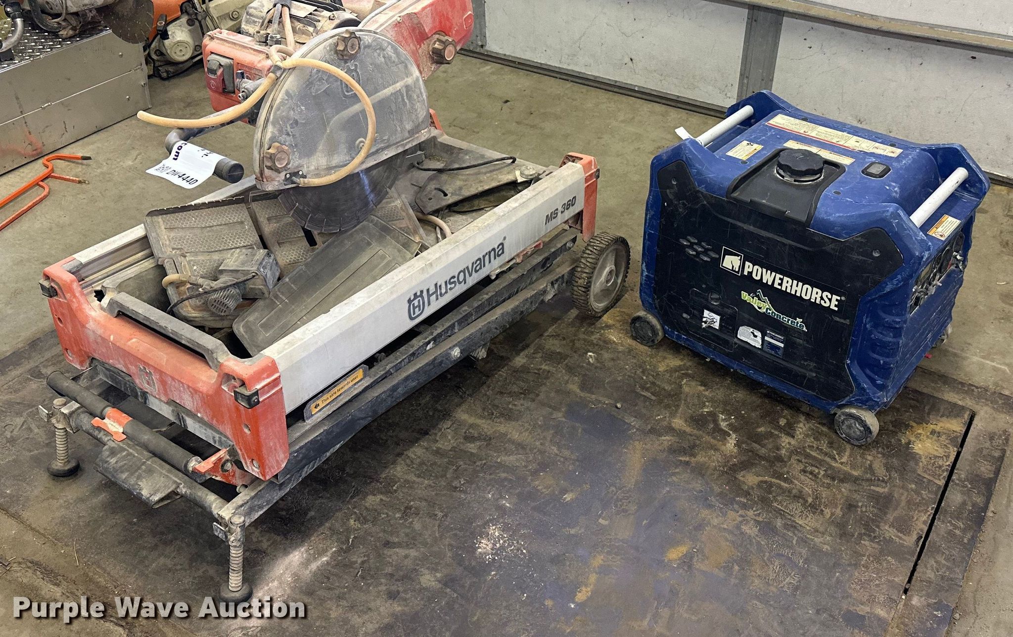 Purple Wave is selling a used Tools in Minnesota. This item is a Tools with the following: Husqvarna MS360 14" block saw with, Powerhouse 3500 watt generator