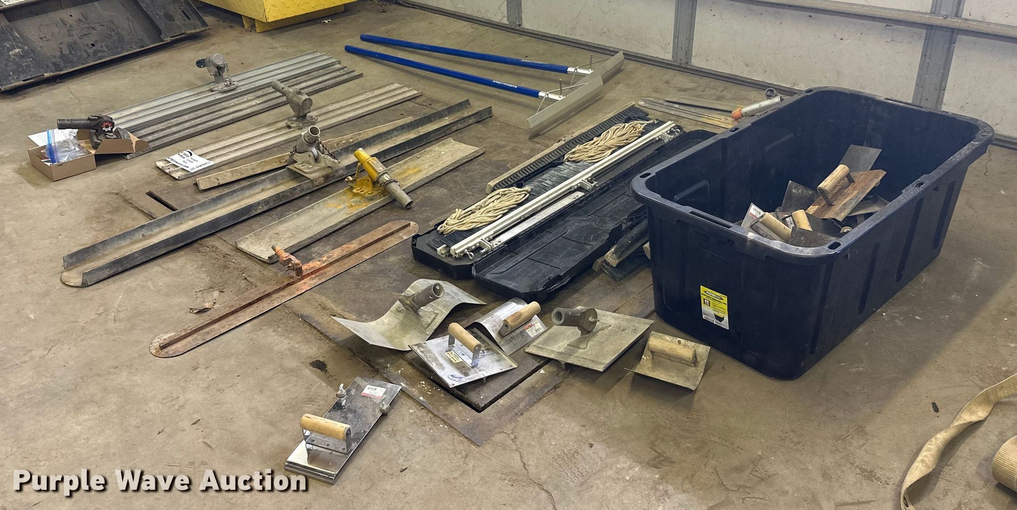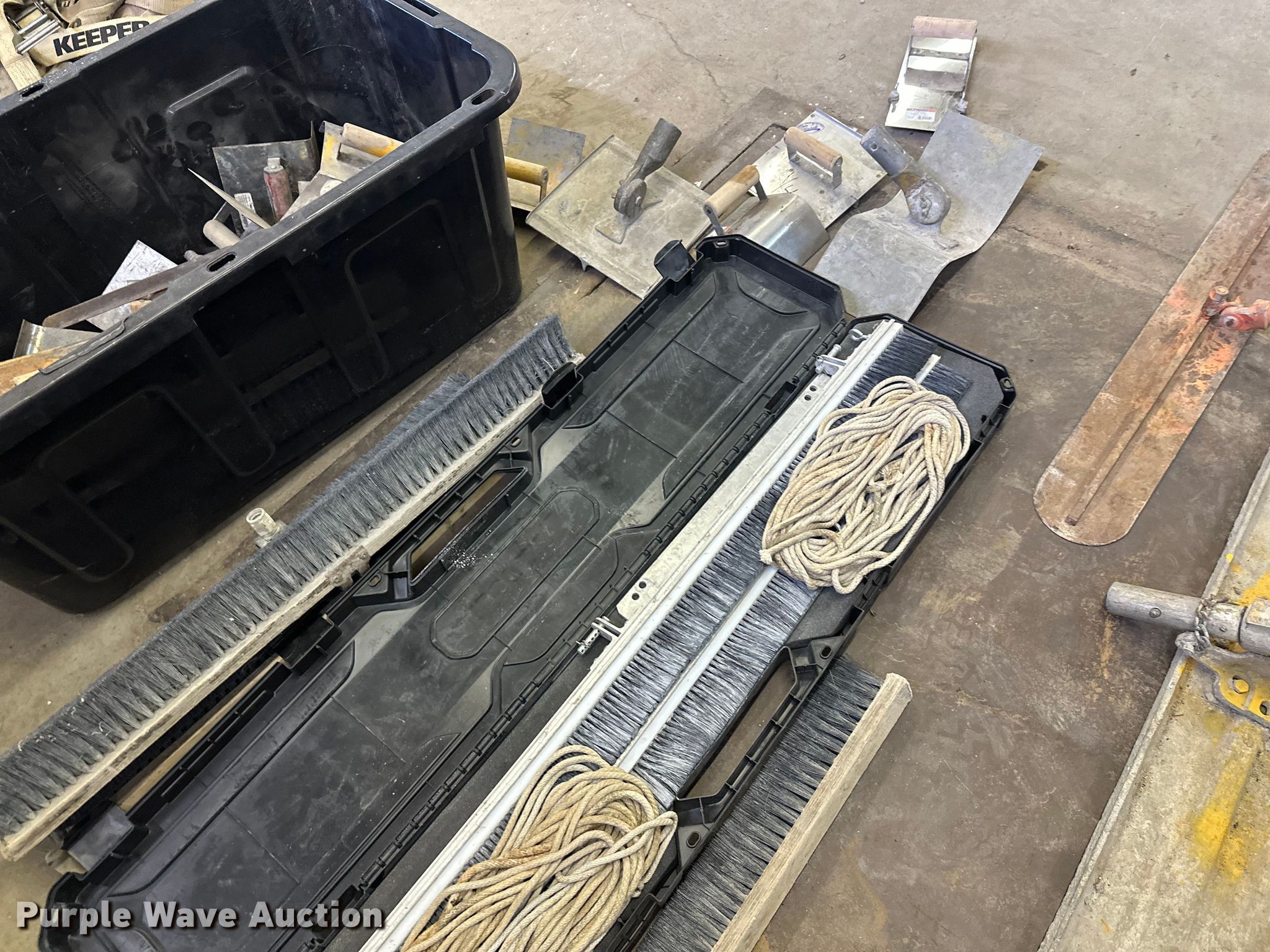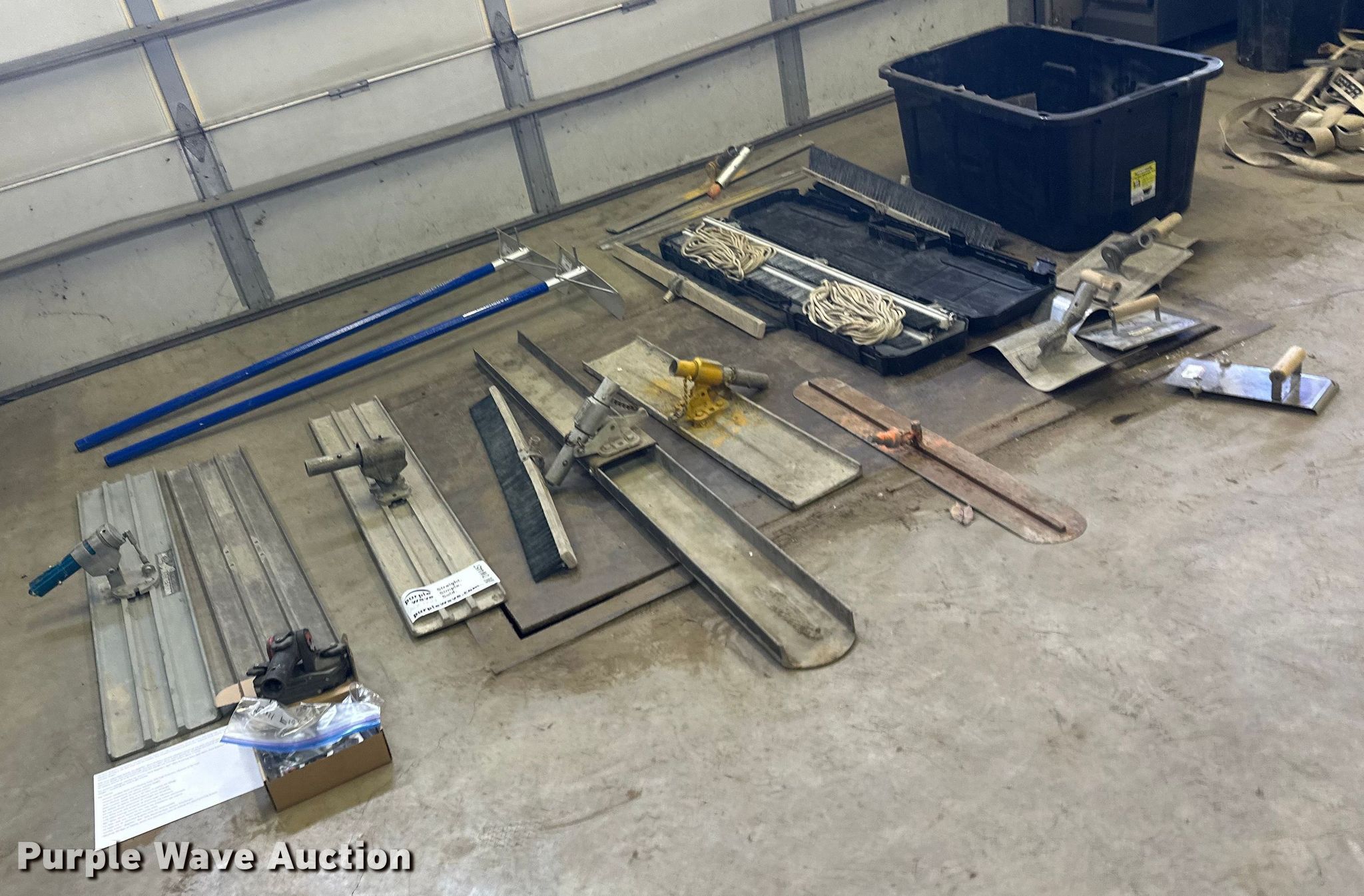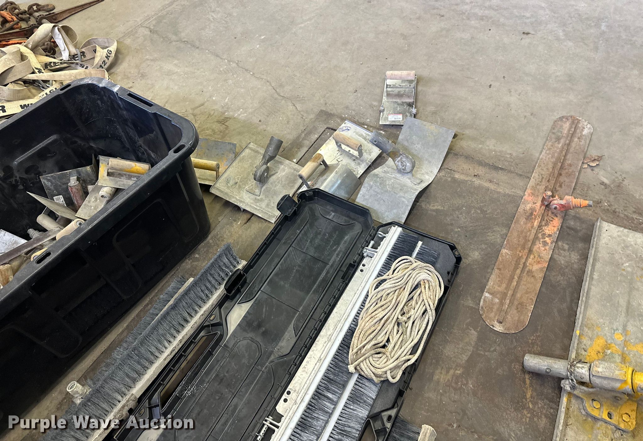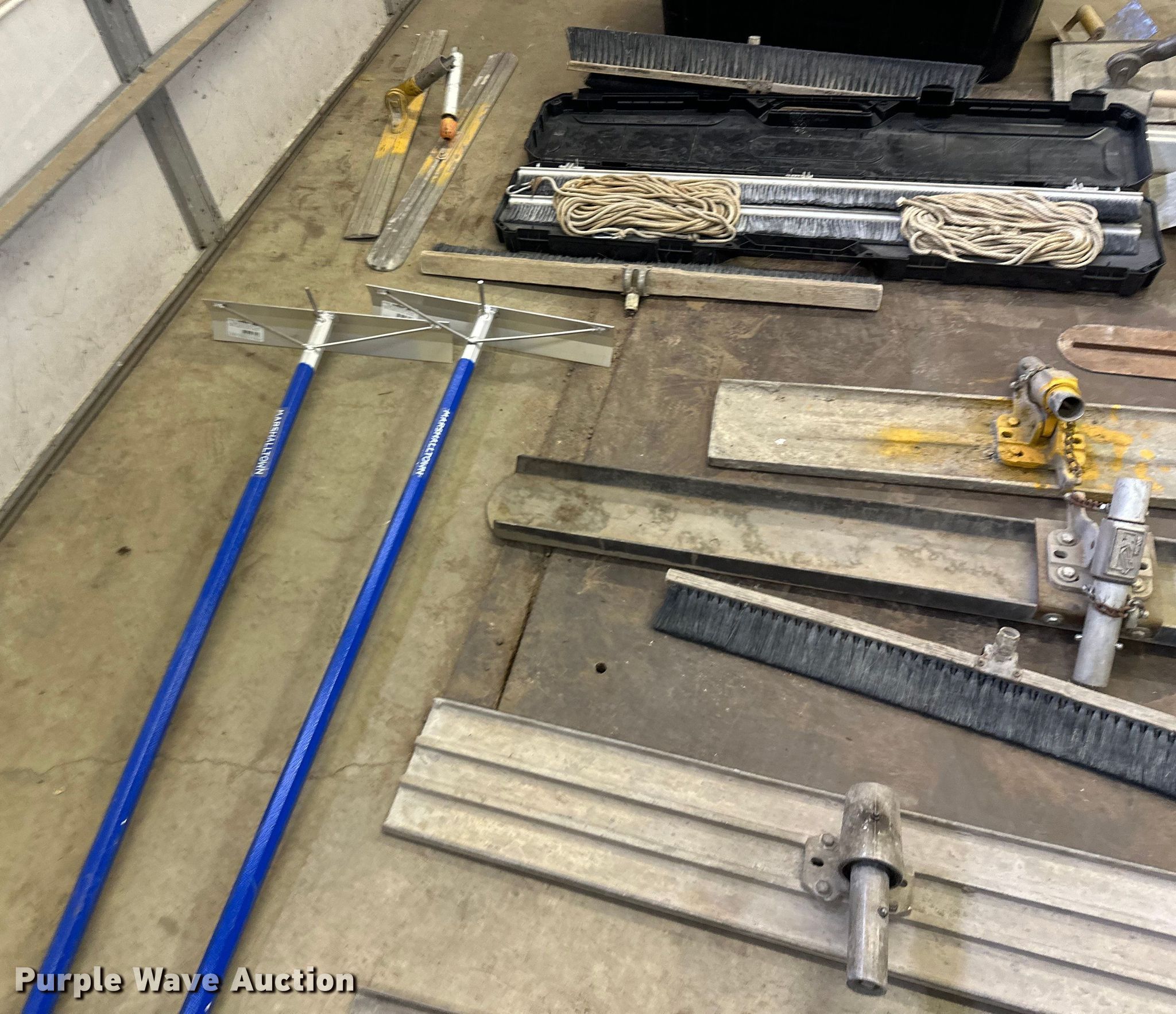 Purple Wave is selling a used Concrete Equip. or Acces. in Minnesota. This item is a Concrete tools with the following: Vibratory head, Bull floats, Edgers, Finishing brooms, Handles for bull floats, Rakes