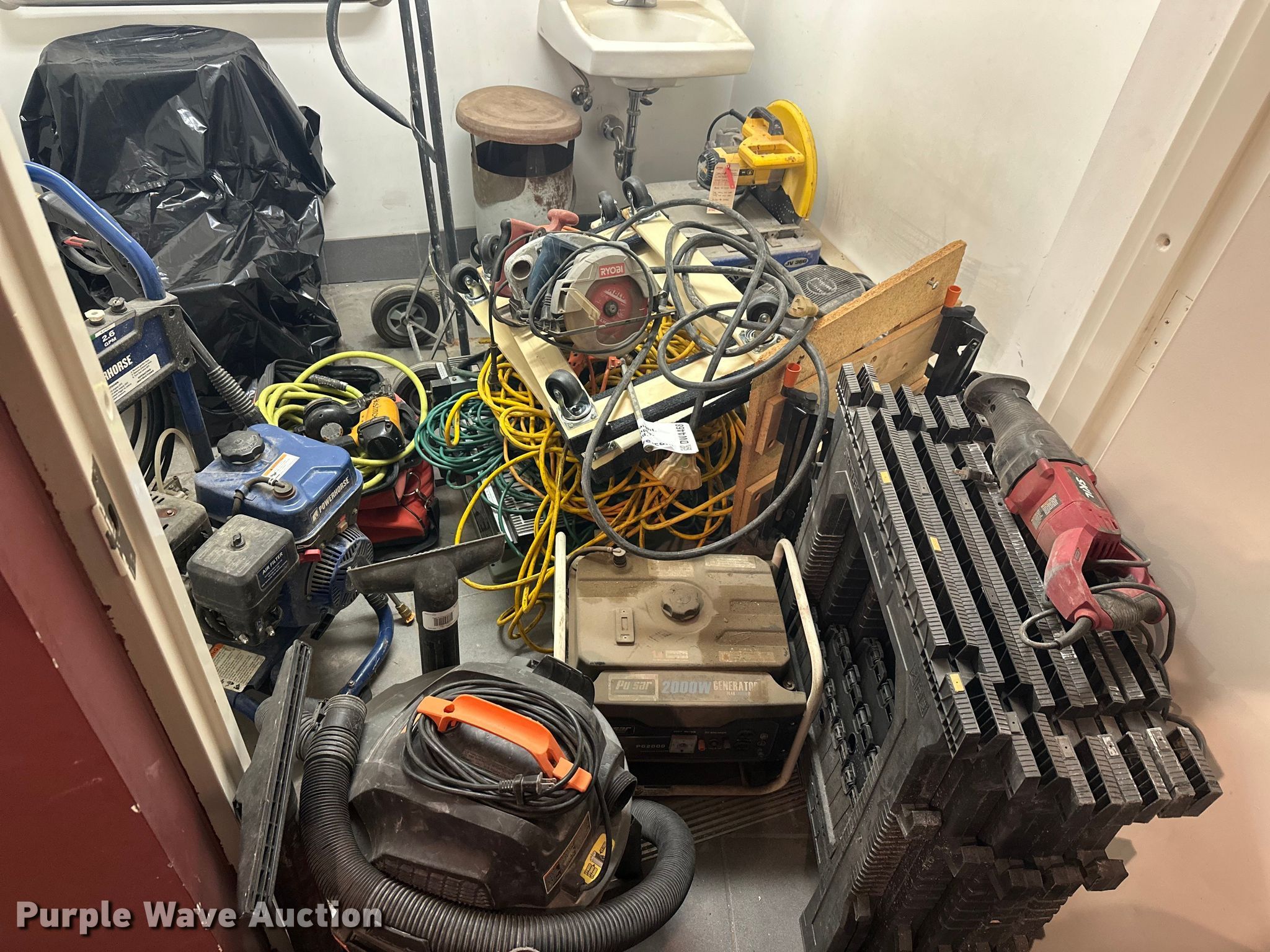 Purple Wave is selling a used Tools in Minnesota. This item is a Tools with the following: Pressure washer, Vacuums, Generator, Saws, Nailer, Hoses, Cords, Leaf blower