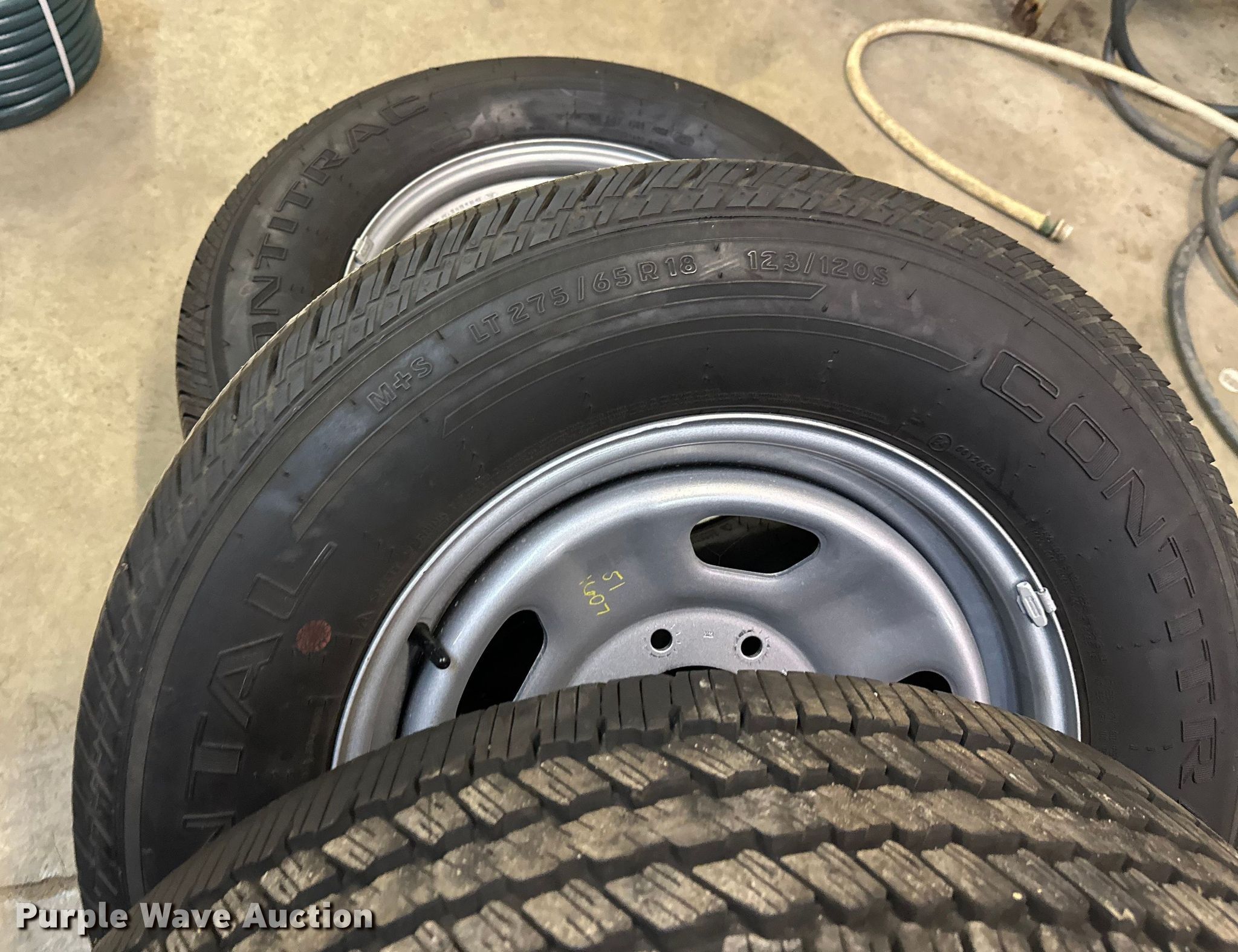 Take a look at this used (4) 275/65R18 tires and wheels being sold on February 26th, 2026 in the Thursday February 26 Construction Equipment Auction. Take a look at all of the item information below or take a look at similar auctions for Tires and Tracks.