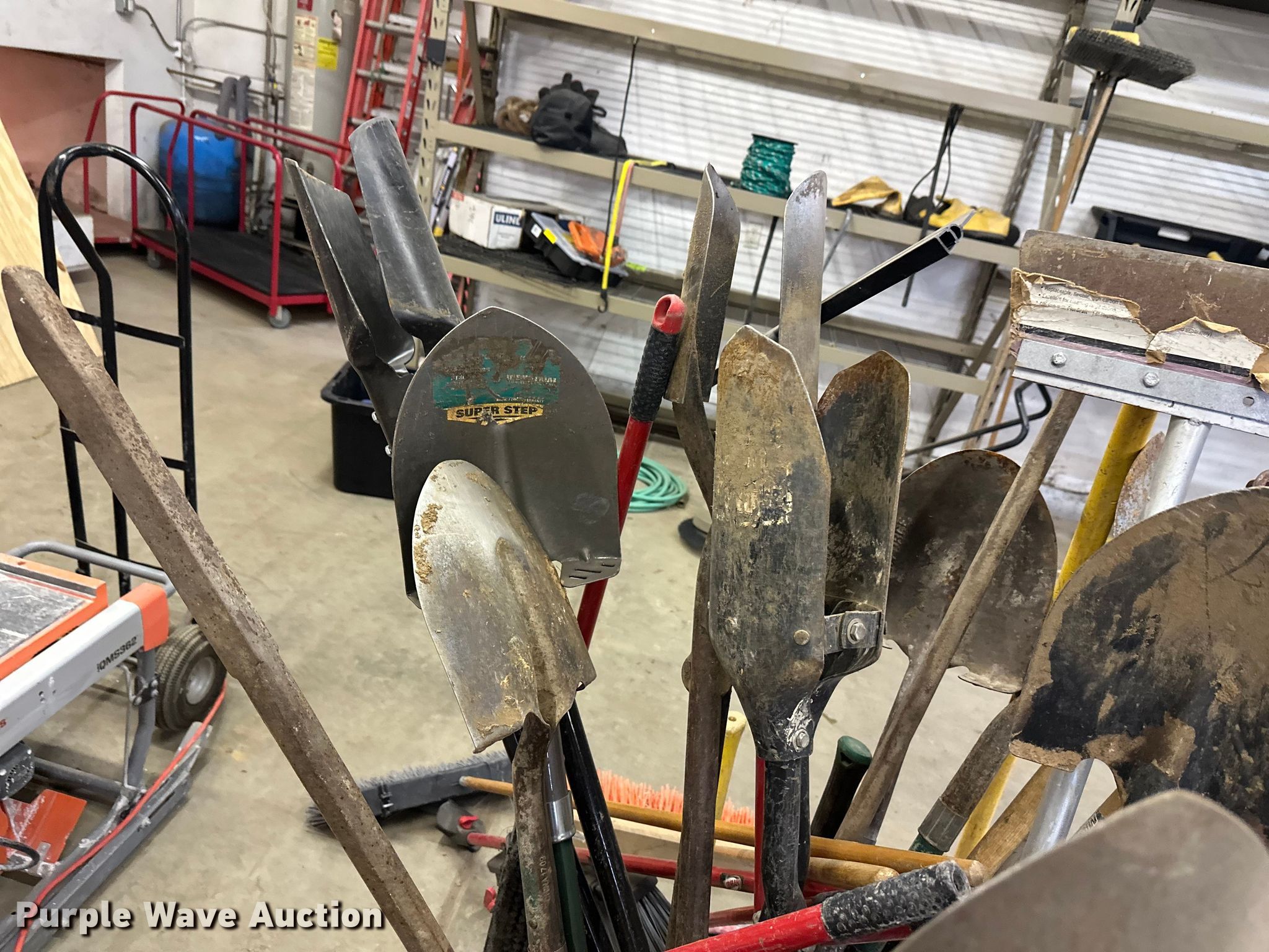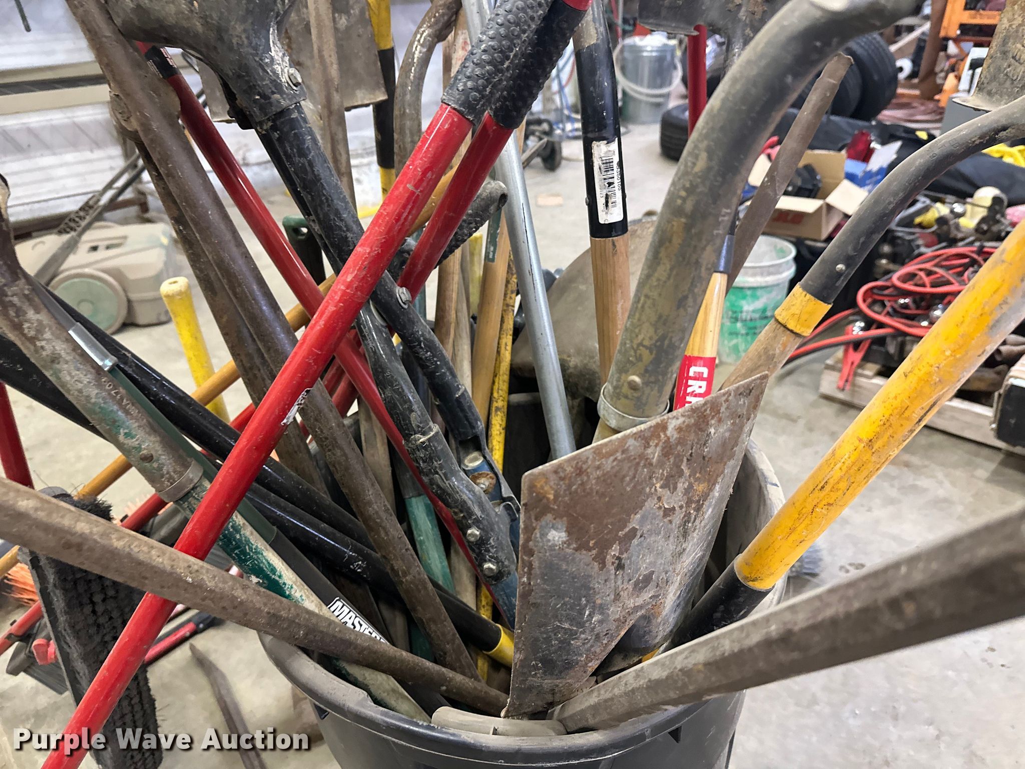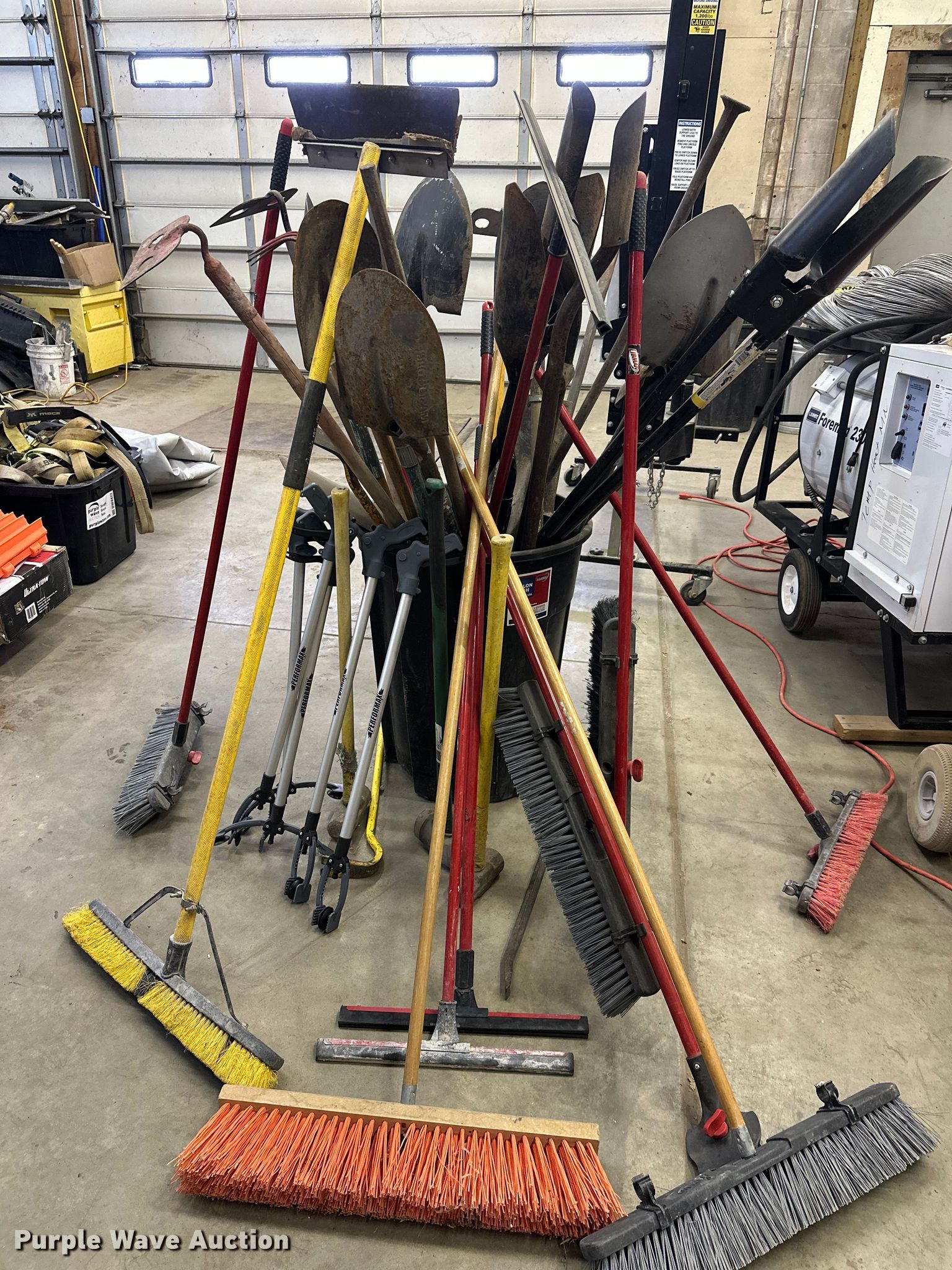 Purple Wave is selling a used Lawn and Garden in Minnesota. This item is a Lawn equipment with the following: Brooms, Shovels, Post hole digger, Pry bars, Squeegee, Scraper