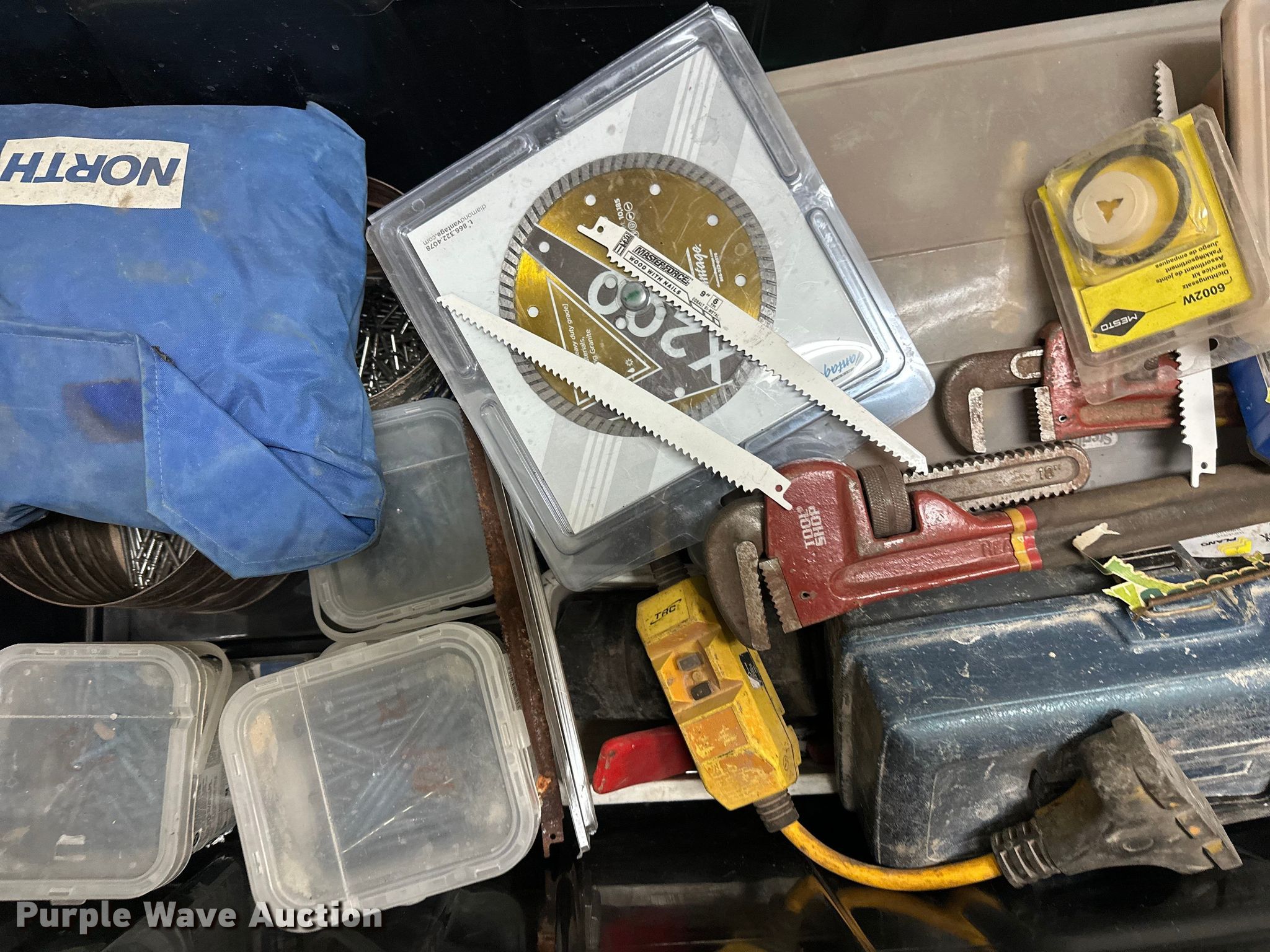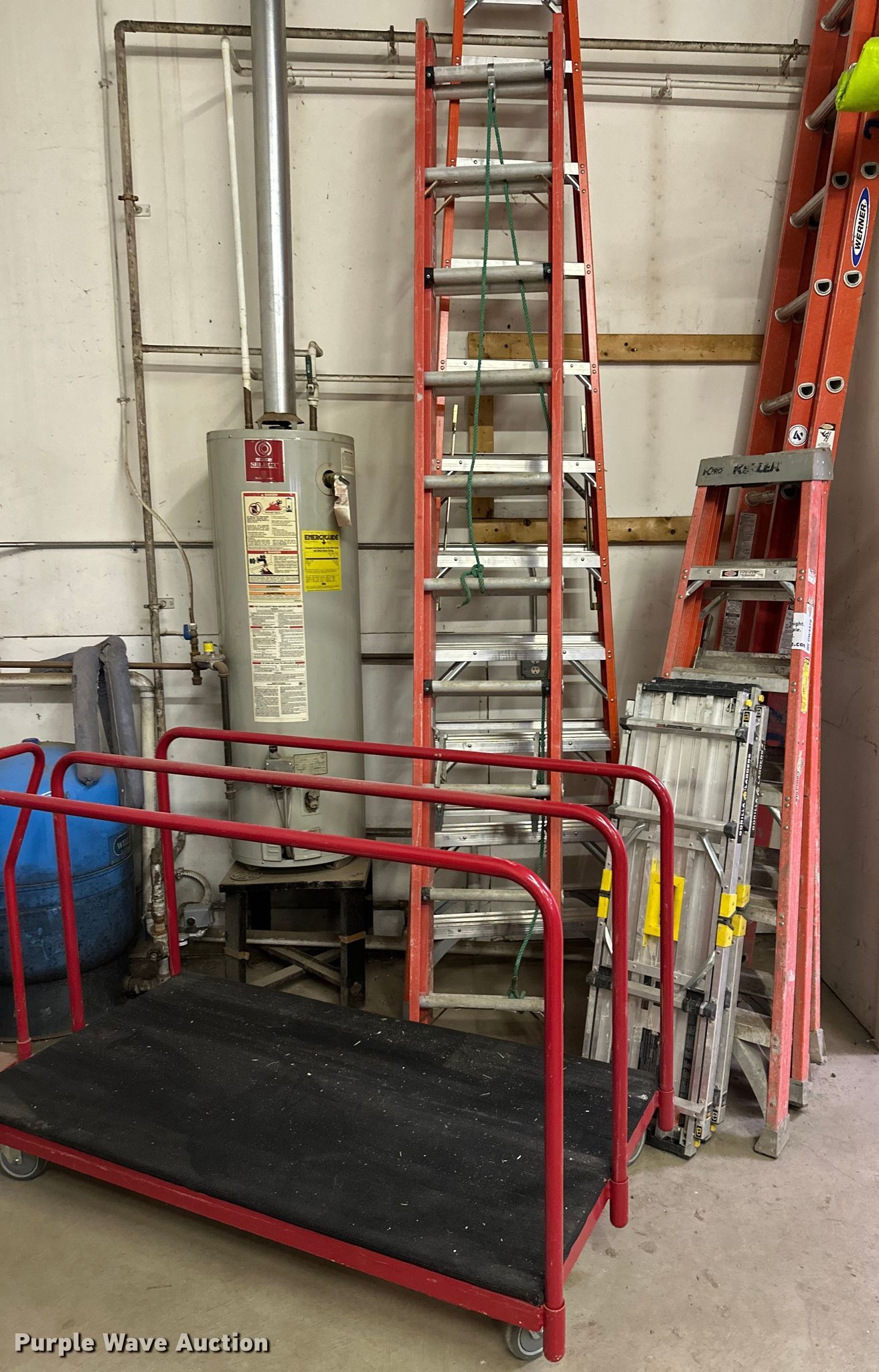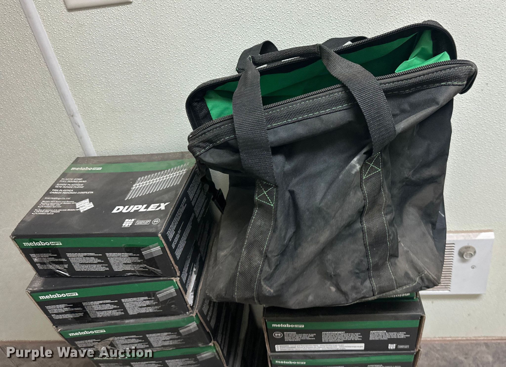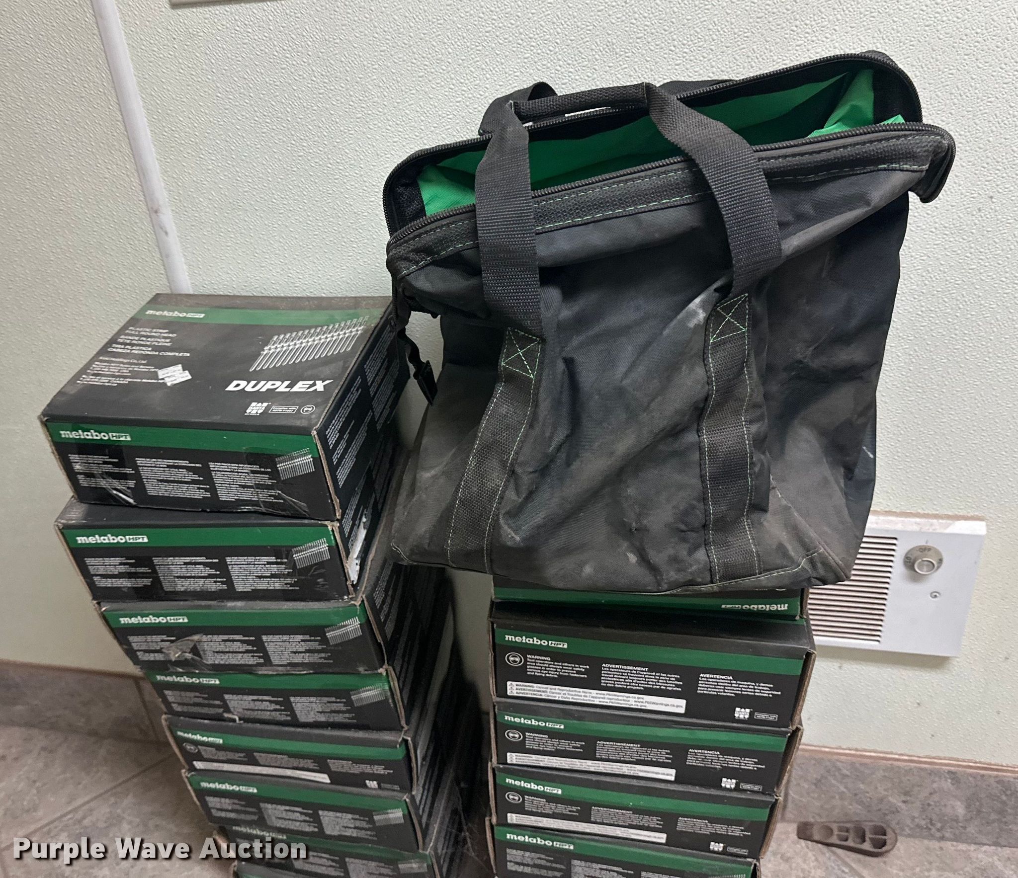 Purple Wave is selling a used Tools in Minnesota. This item is a Tools with the following: Metabo cordless framing nailer, (16) cases 3.5" framing nails, Screws, Wrenches, Blades, Ladders, 12', (2) 6', Extension ladders, 18', 20', Panel cart, Dolly