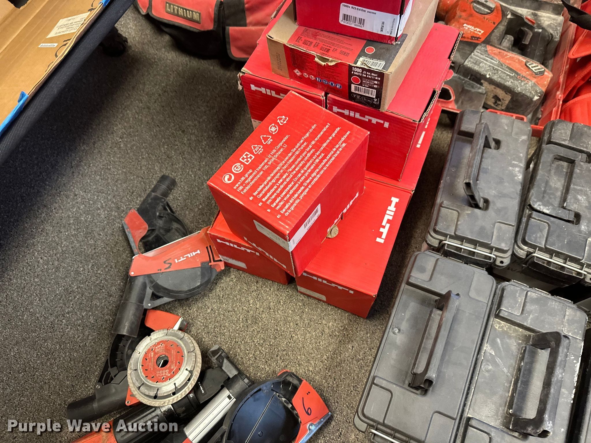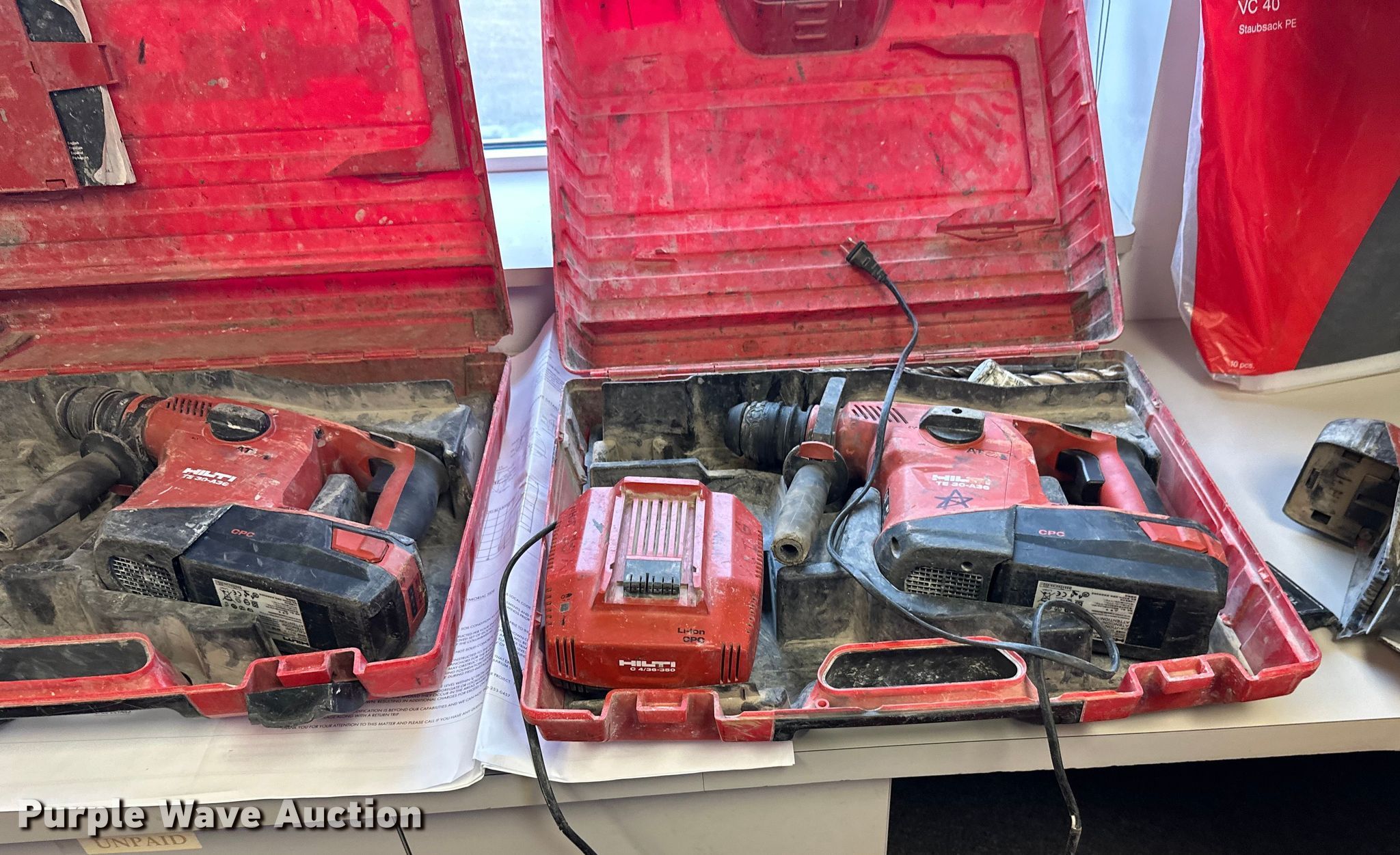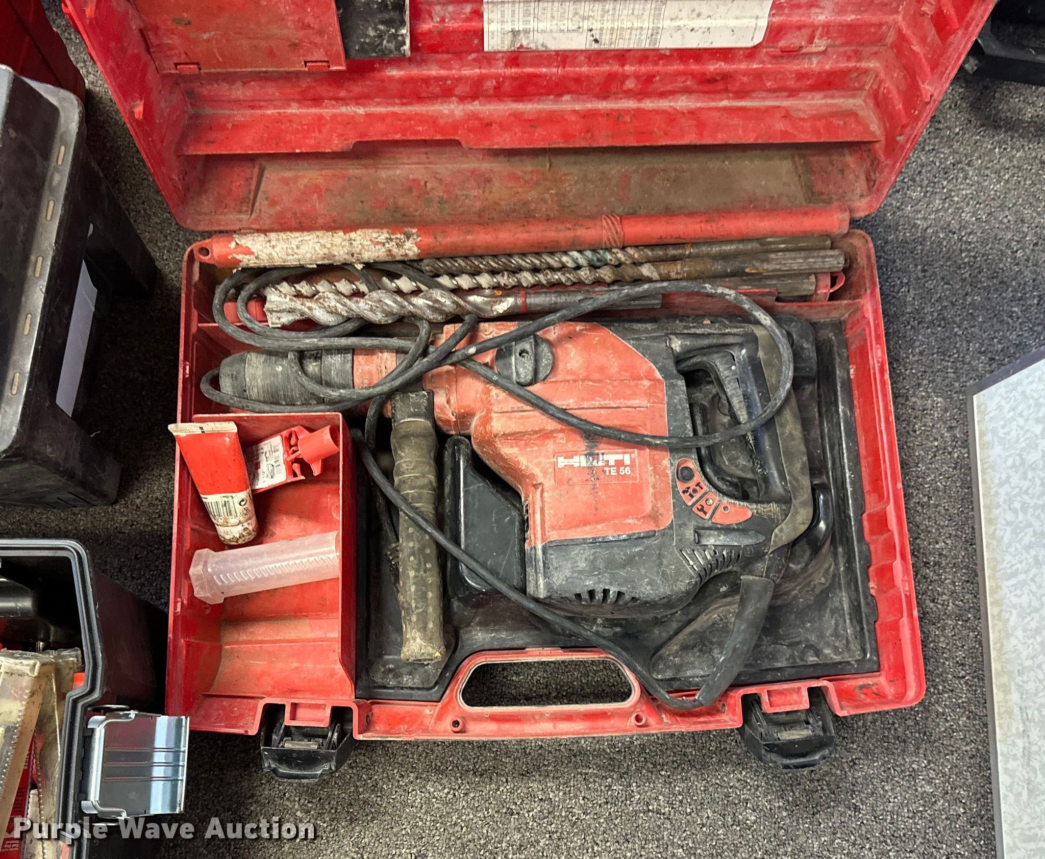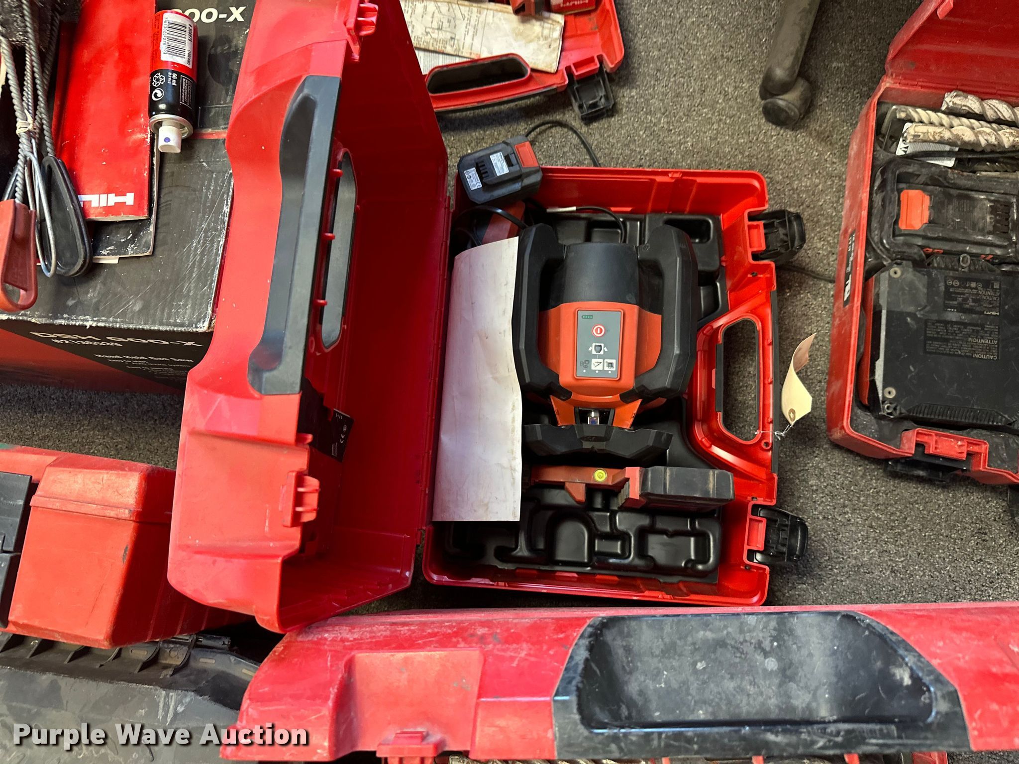 Purple Wave is selling a used Tools in Minnesota. This item is a Hilti tools with the following: Breaker, Laser, Rotary hammers, Bits, Vacuum, Saws, Drills