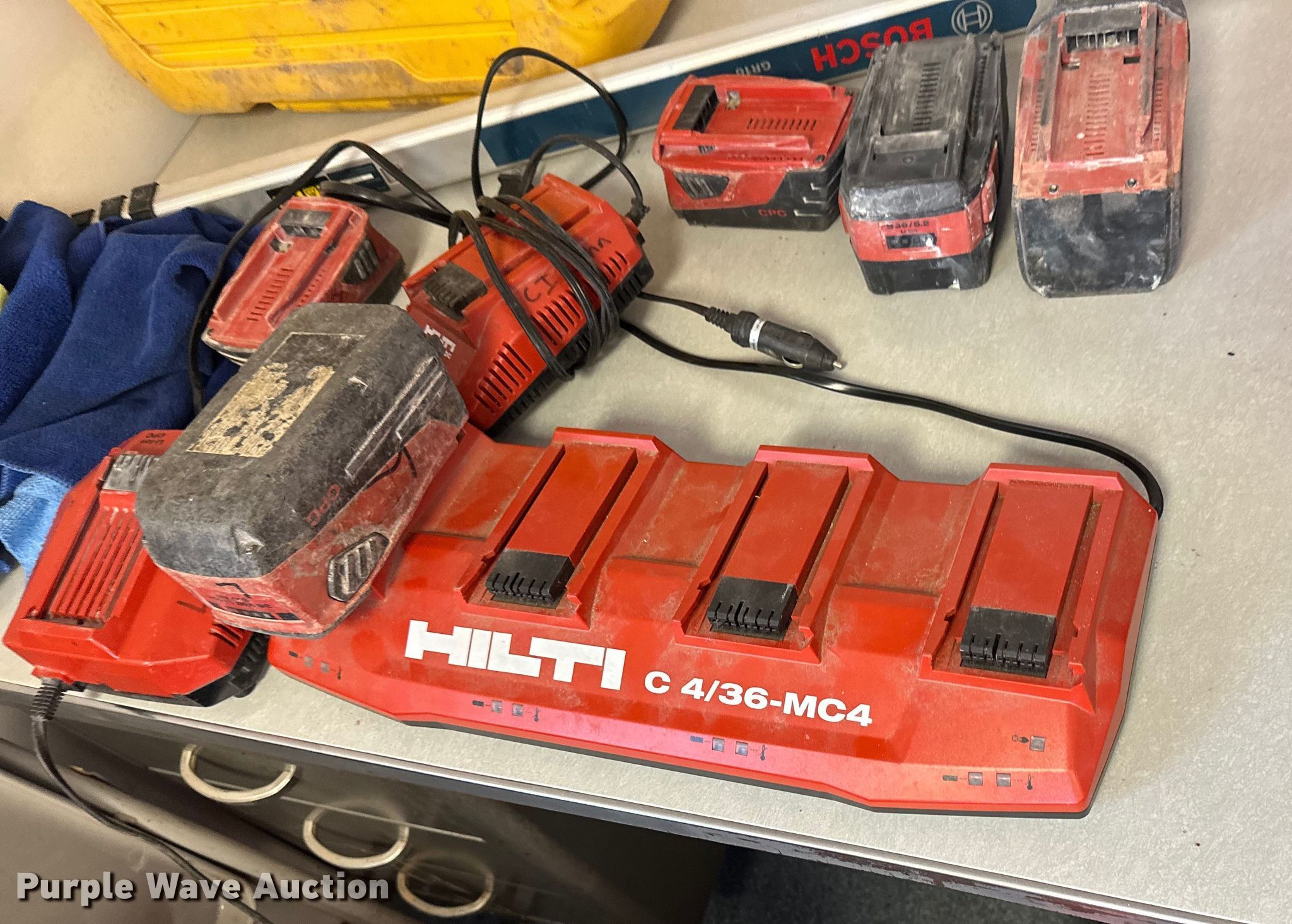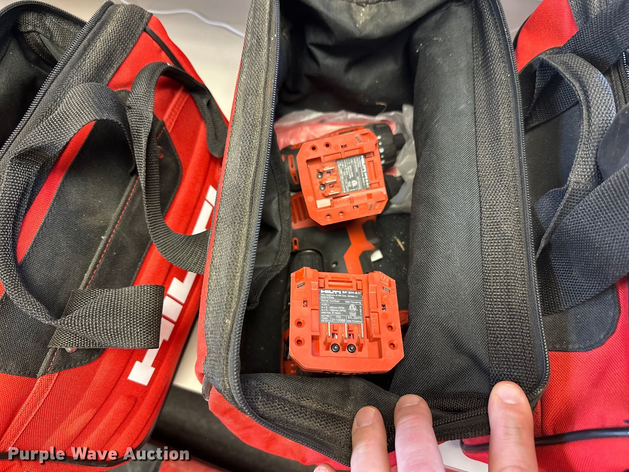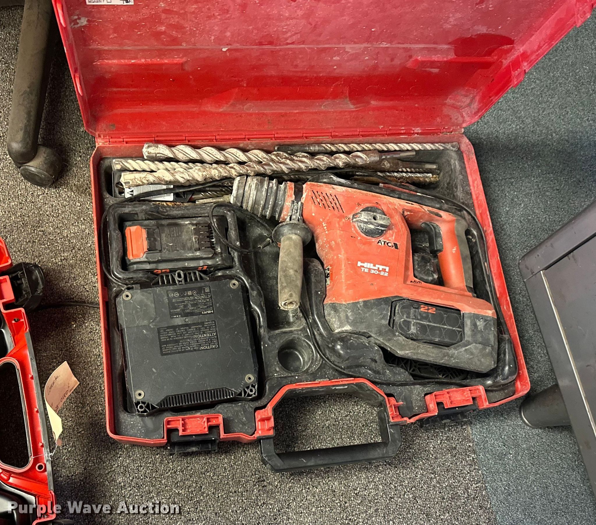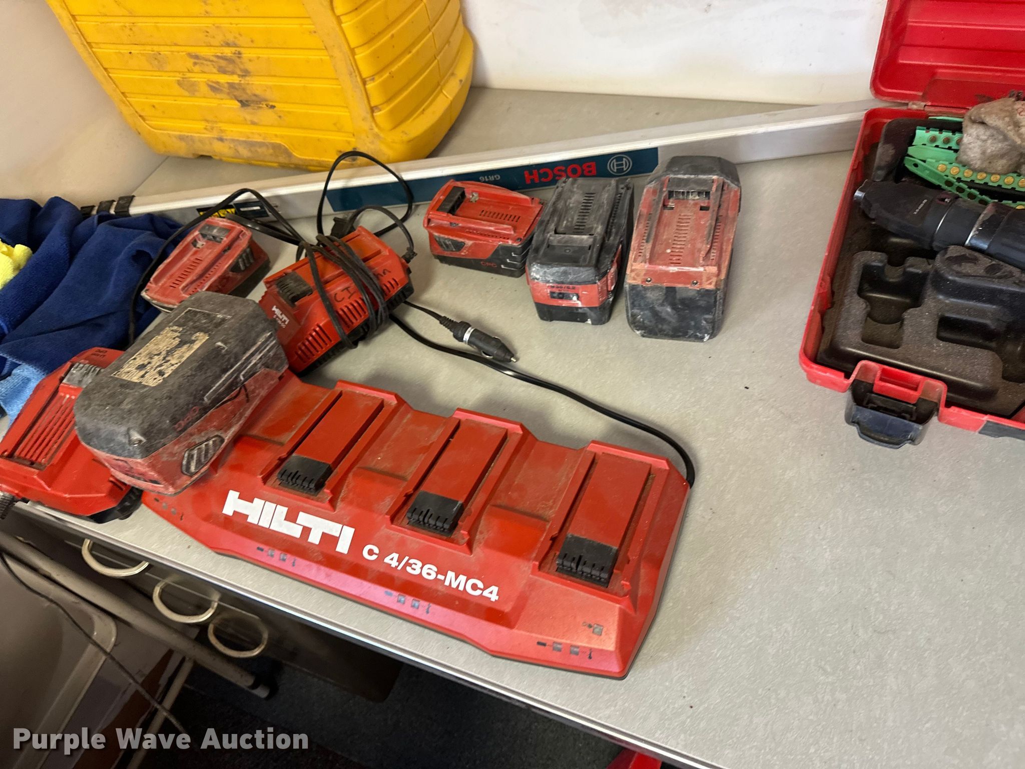Purple Wave is selling a used Tools in Minnesota. This item is a Hilti tools with the following: Breaker, Laser, Rotary hammers, Bits, Vacuum, Saws, Drills