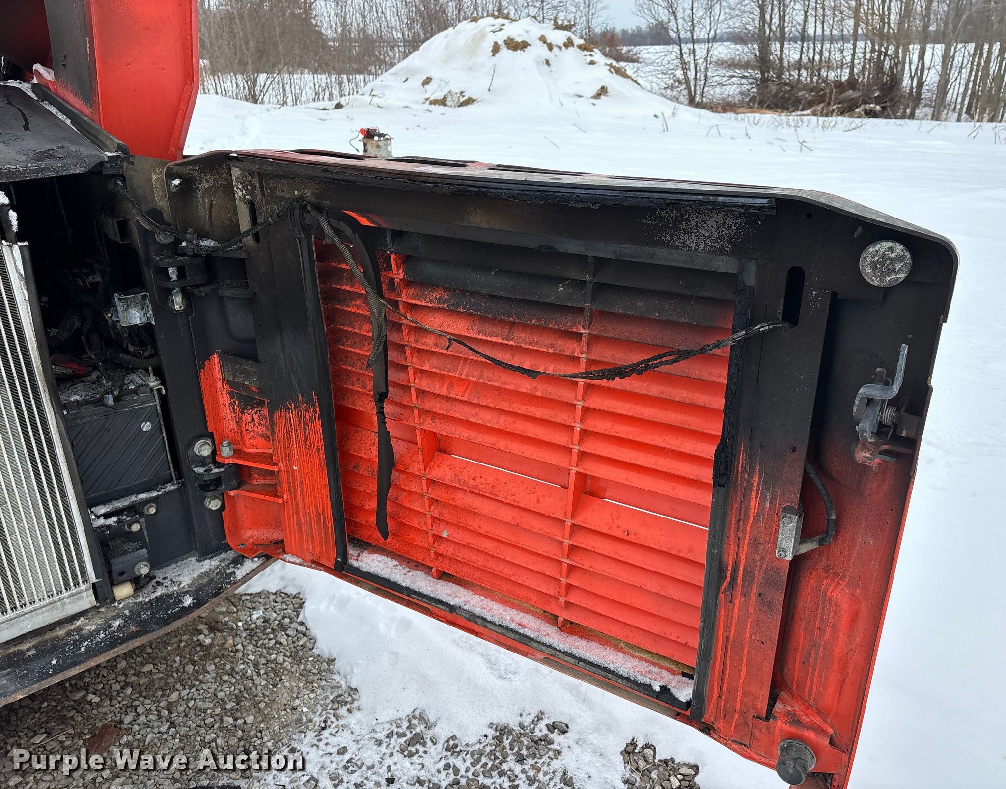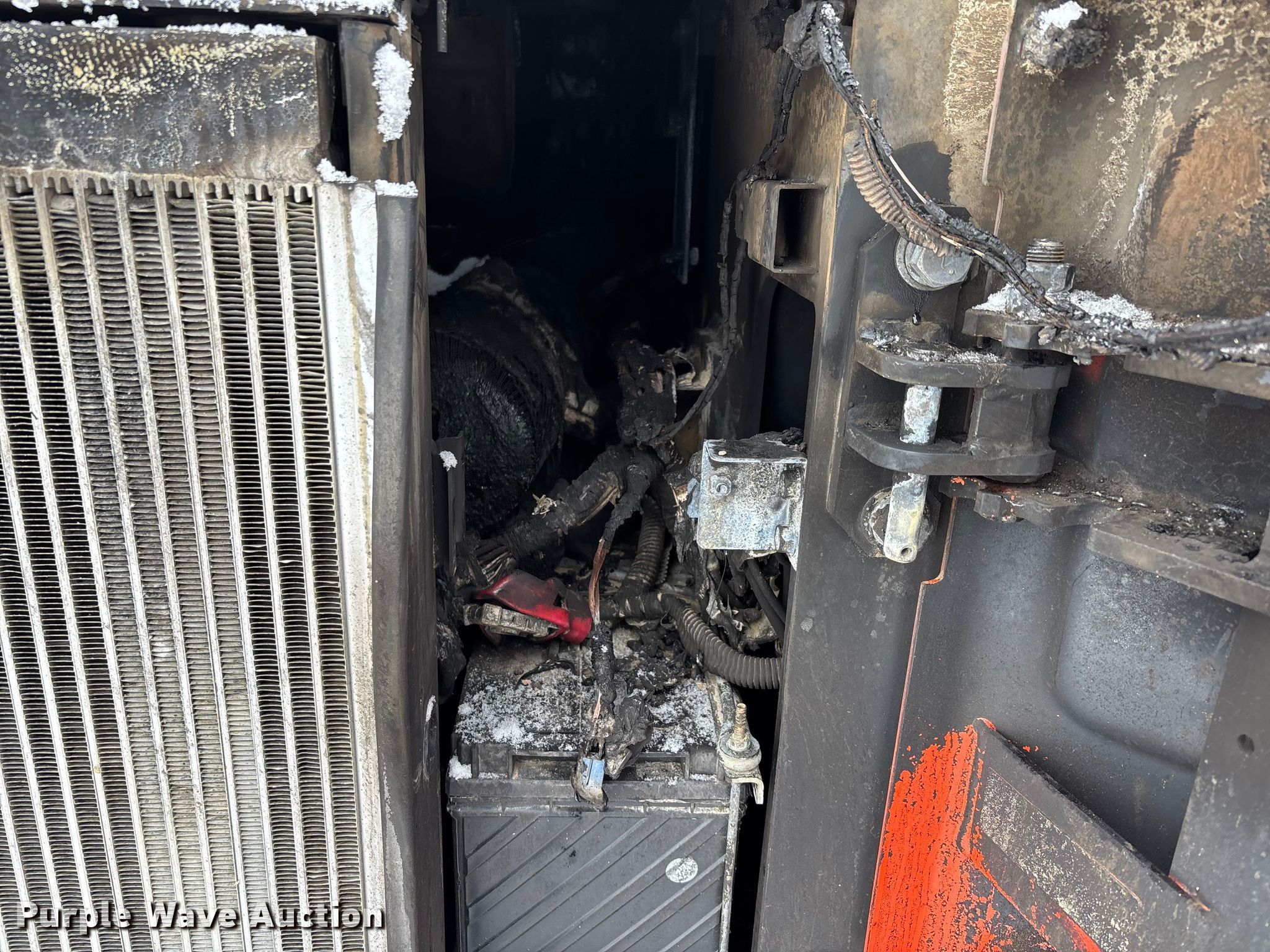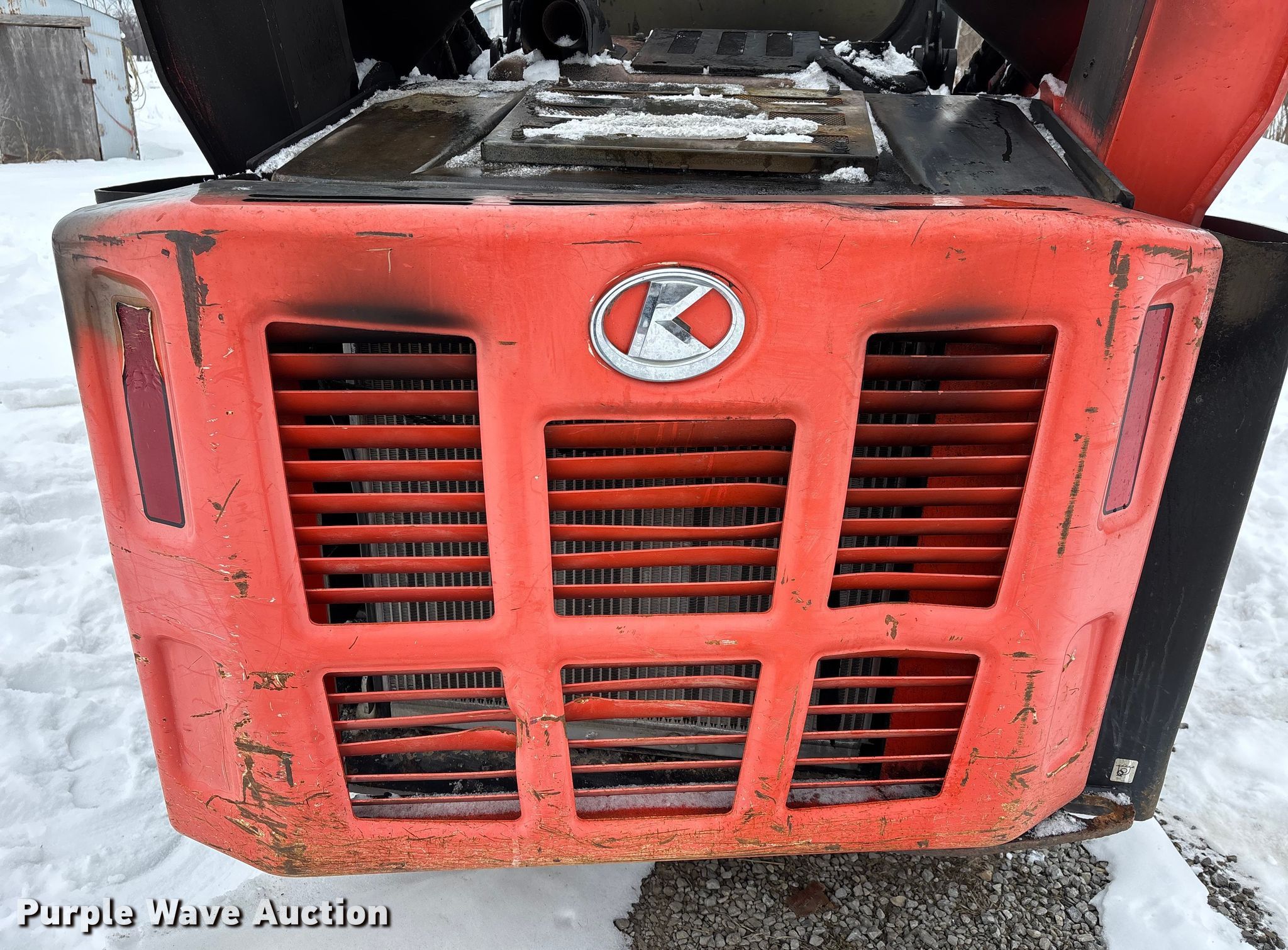 2017 Kubota SVL95-2S tracked skid steer loader. Hours: Unknown, Serial #: 34235, Unit #: 74442885. Engine Kubota, Cylinders: 3, Fuel type: Diesel. Transmission Hydrostatic, Two speed travel. Operators station Enclosed cab, AC, Heat, Bucket control: Hand. Features Auxiliary hydraulics, Auxiliary electrical outlet, Quick coupler: Hydraulic, Bucket Width: 81", Cutting edge: Bolt-on. Tracks Width: 17". Notes Fire damage, Non-operational unit. Insurance Salvage. Johnsonville, IL 62850