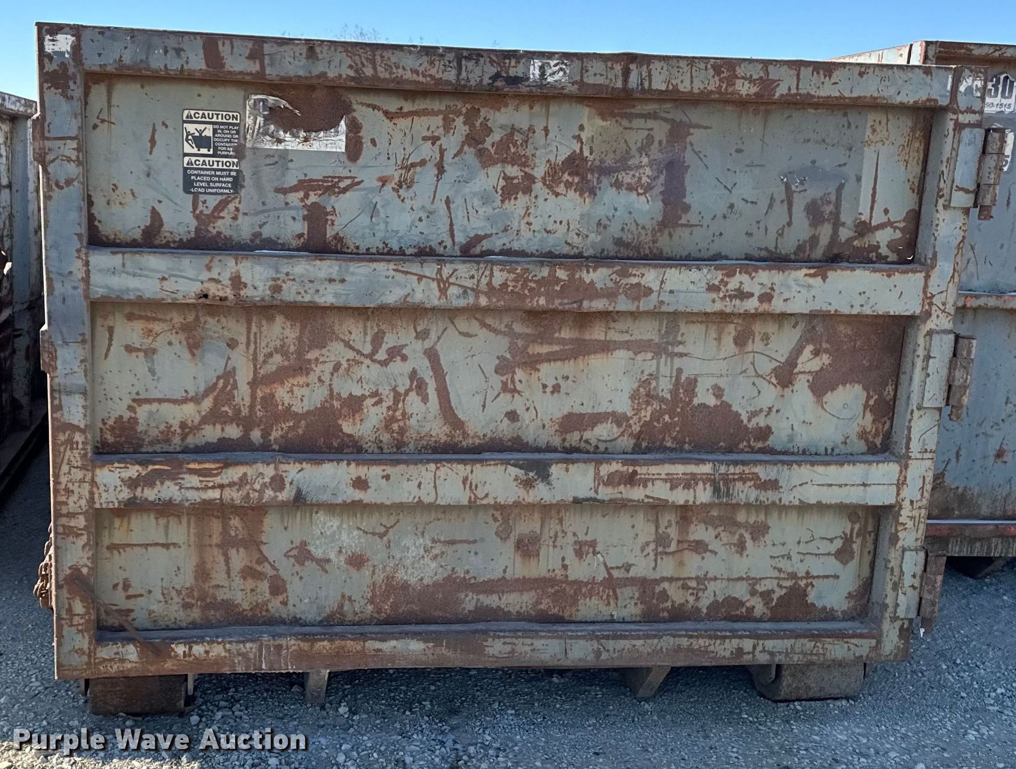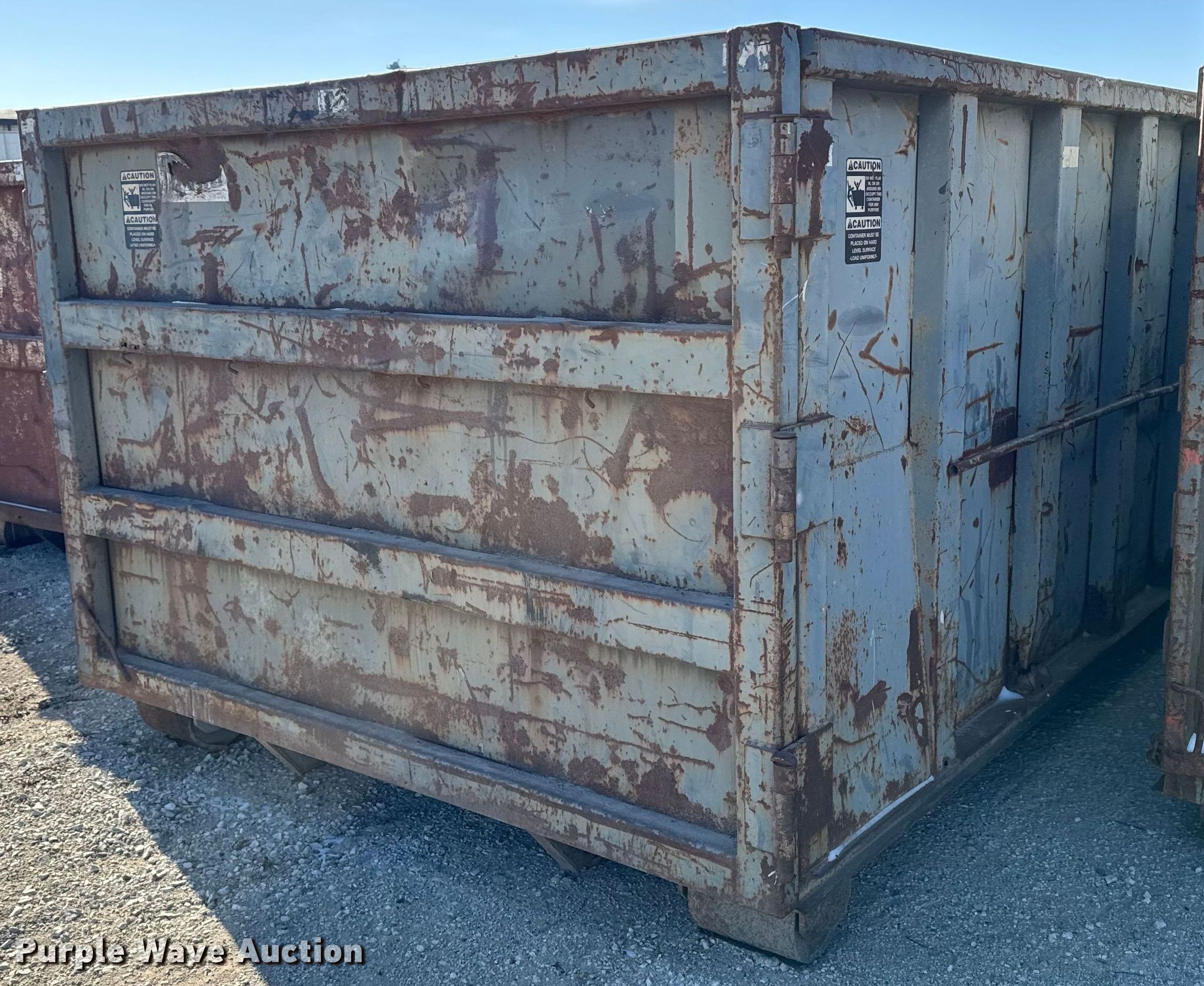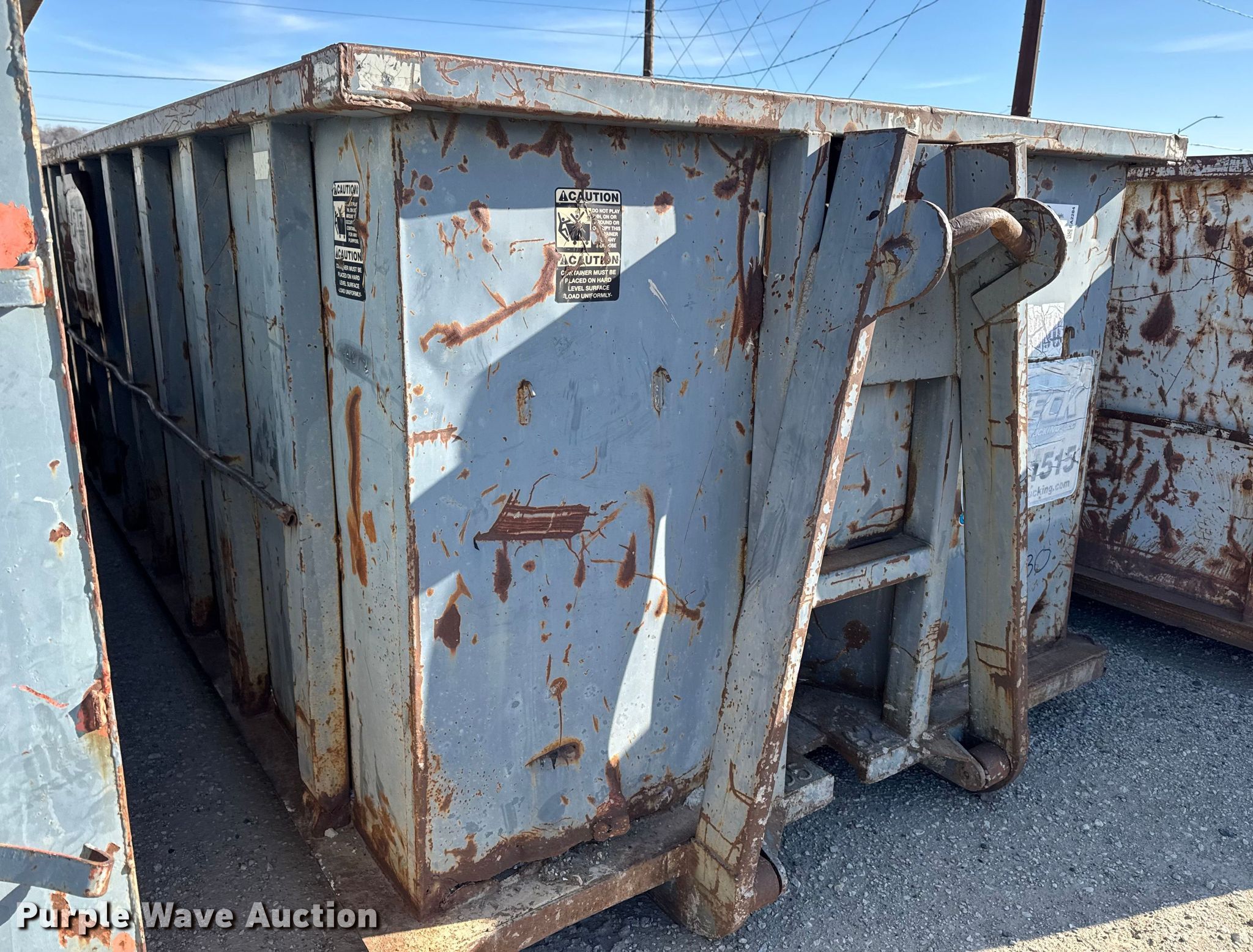 Purple Wave is selling a used Refuse or Compaction Equip. in Iowa. This item is a Roll-off container with the following: Length: 22', Width: 96", Height: 65"
