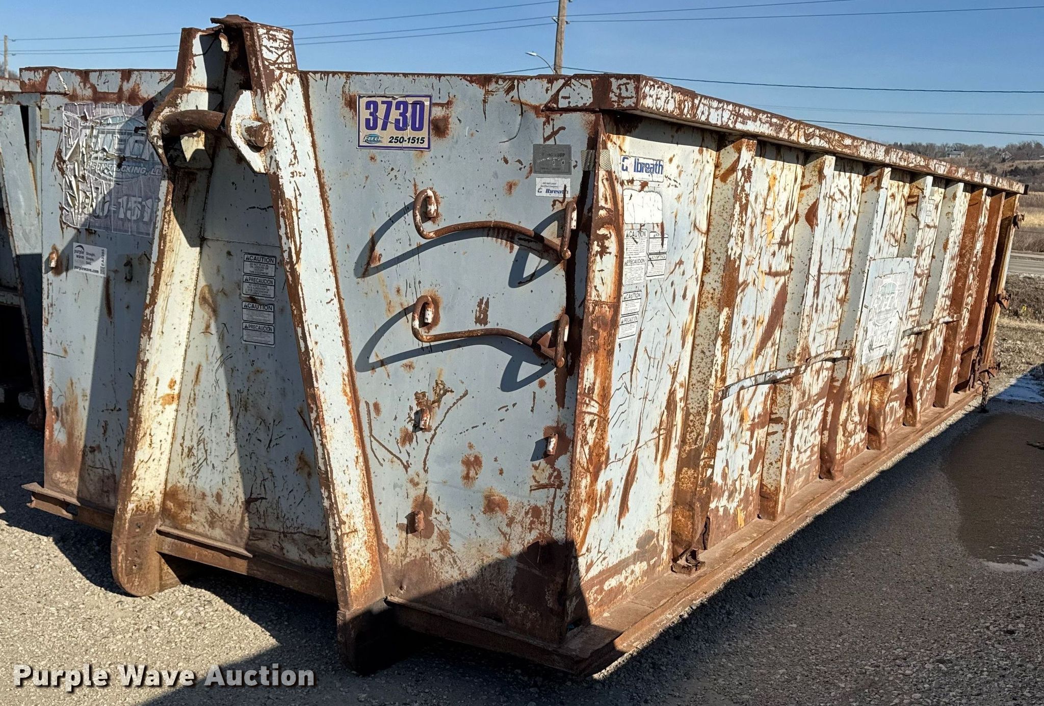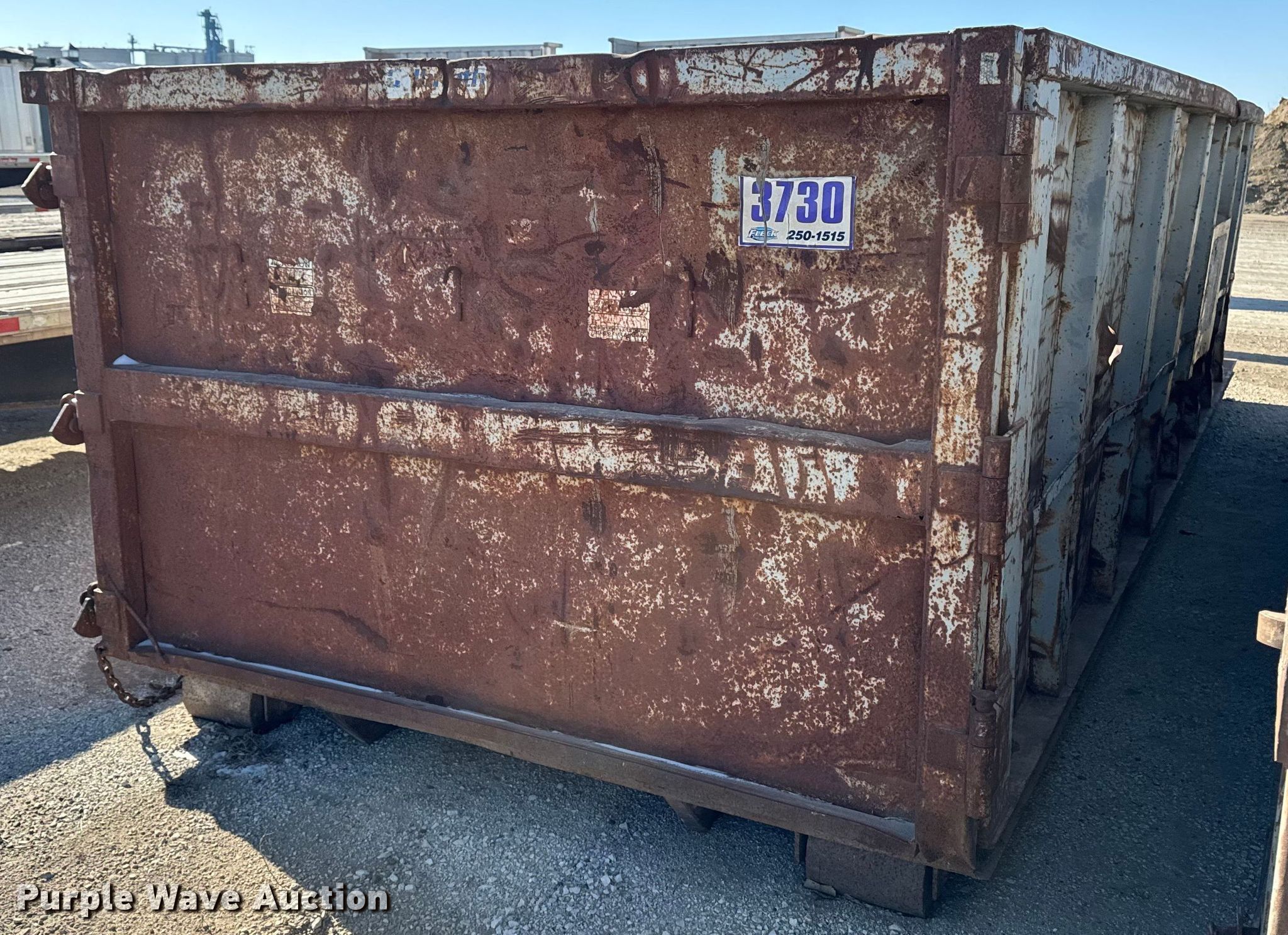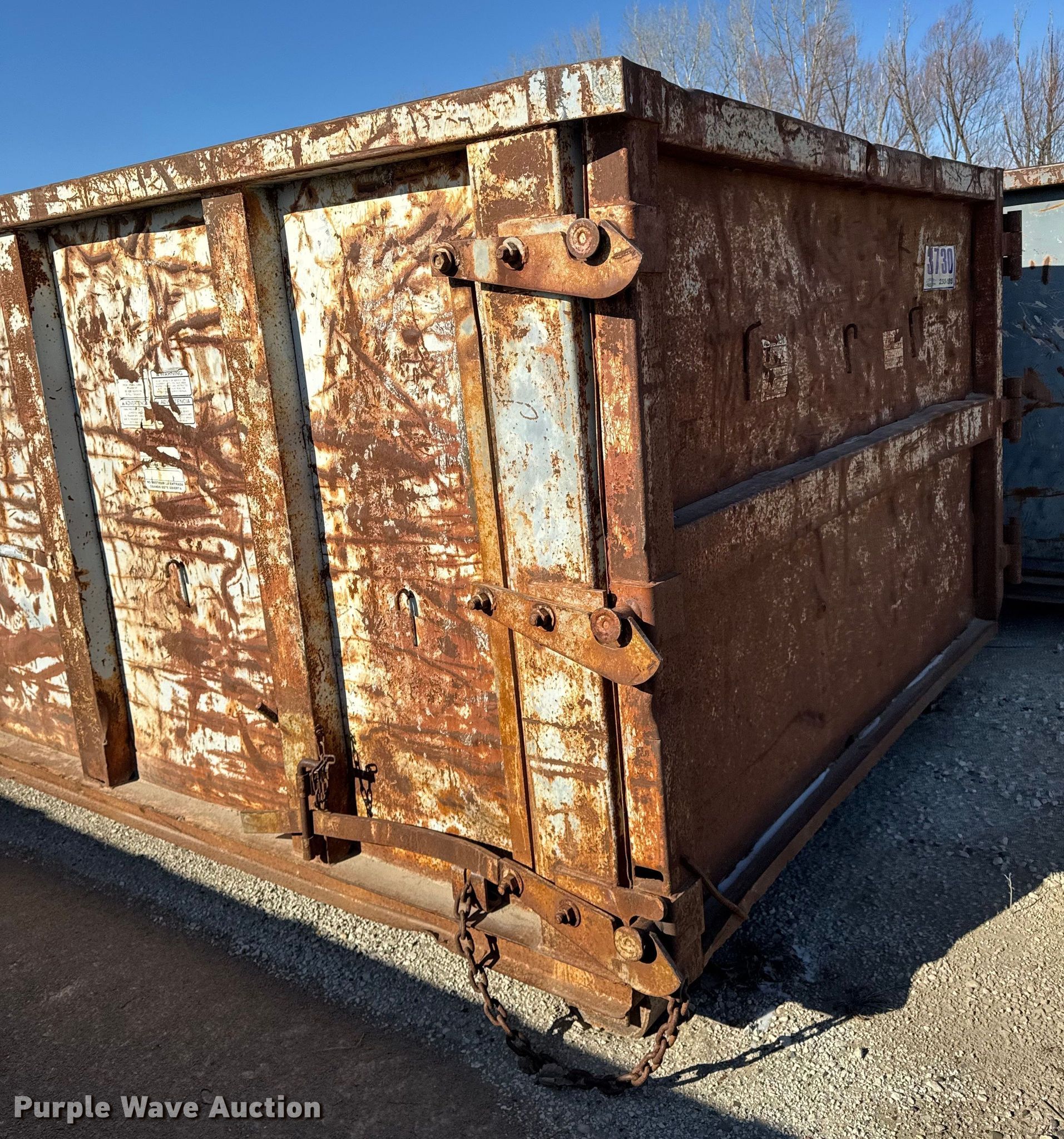 Purple Wave is selling a used Refuse or Compaction Equip. in Iowa. This item is a Roll-off container with the following: Length: 22', Width: 96", Height: 60"