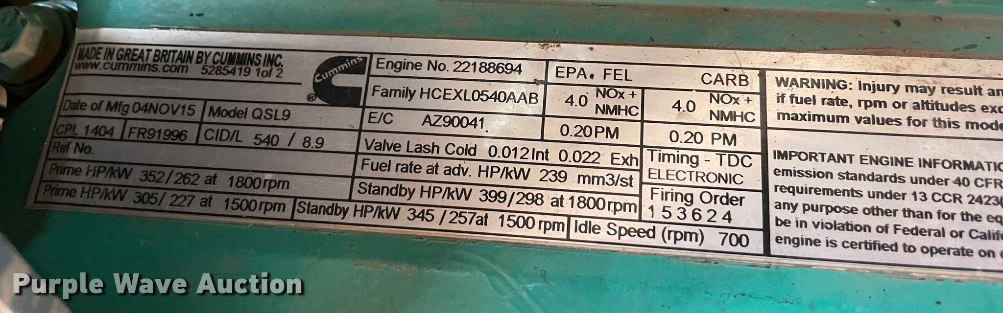 2017 Copex Reflex 750 baler. Hours: 13,000 on meter, Serial: 36242. Dimensions Overall Length: 52' 6", Width: 16', Height: 15' 9". Engine Cummins, Cylinders: 6, Fuel type: Diesel. Features Cutting force: 750 tons, Shear width: 36", Box: 19' 8" L x 96" W, Feed table: 19' 8" L x 88" W, 2016 Nelson Manufacturing trailer VIN: 1N9C62A33G1012616, Axles: Triple, GVWR: 78,000 lbs, Brakes: Air, Suspension: Air. Tires Size: 275/70R22.5. This is worksite support equipment and will not come with a title. Transfer of ownership documentation will be a bill of sale. Robertson Metal Recycling LLC. Dickinson, ND 58601