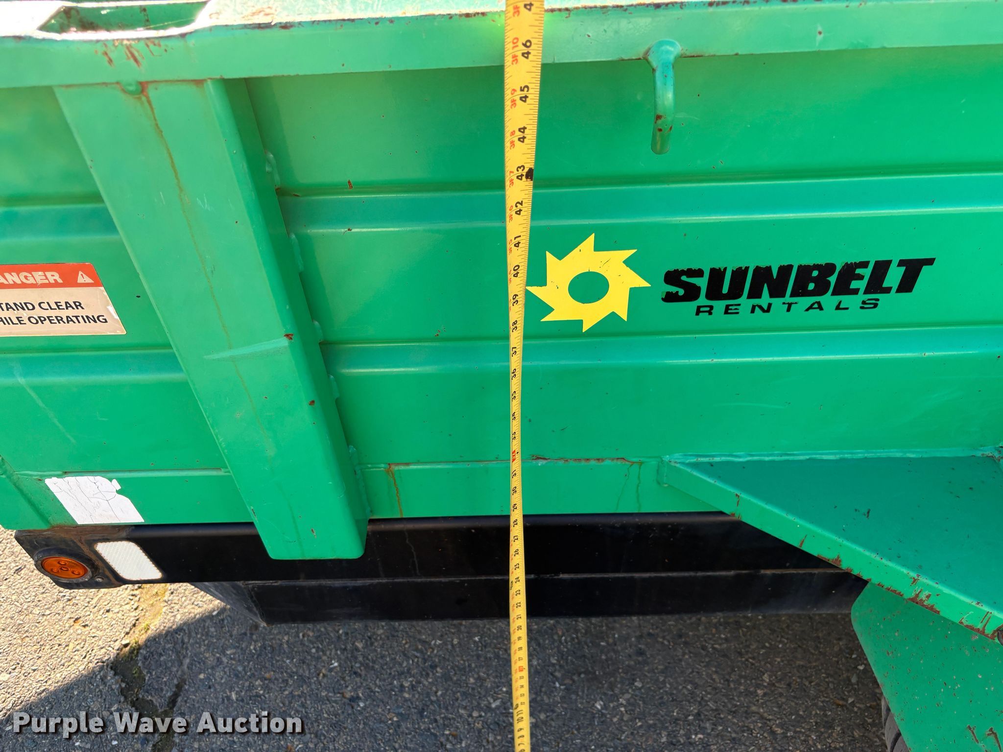 2015 Best Trailer DC4737 dump trailer. VIN: 1B9DB1217F1245993. Dimensions Overall Length: 14', Width: 84", Body Length: 8', Width: 60", Side height: 18". Features Body type: Steel, Ram: Single, End gate: Manual. Chassis Ball hitch: 2 5/16", Landing gear: Single, Suspension: Spring, Brakes: Hydraulic, GVWR: 6,000 lbs. Tires Steel wheels, Size: 225/80R16. Titles will be distributed after confirmation of payment and removal. Tennessee title. Title distribution may be delayed up to 30 days from verification of funds. Sunbelt Rentals. West Sacramento, CA 95691