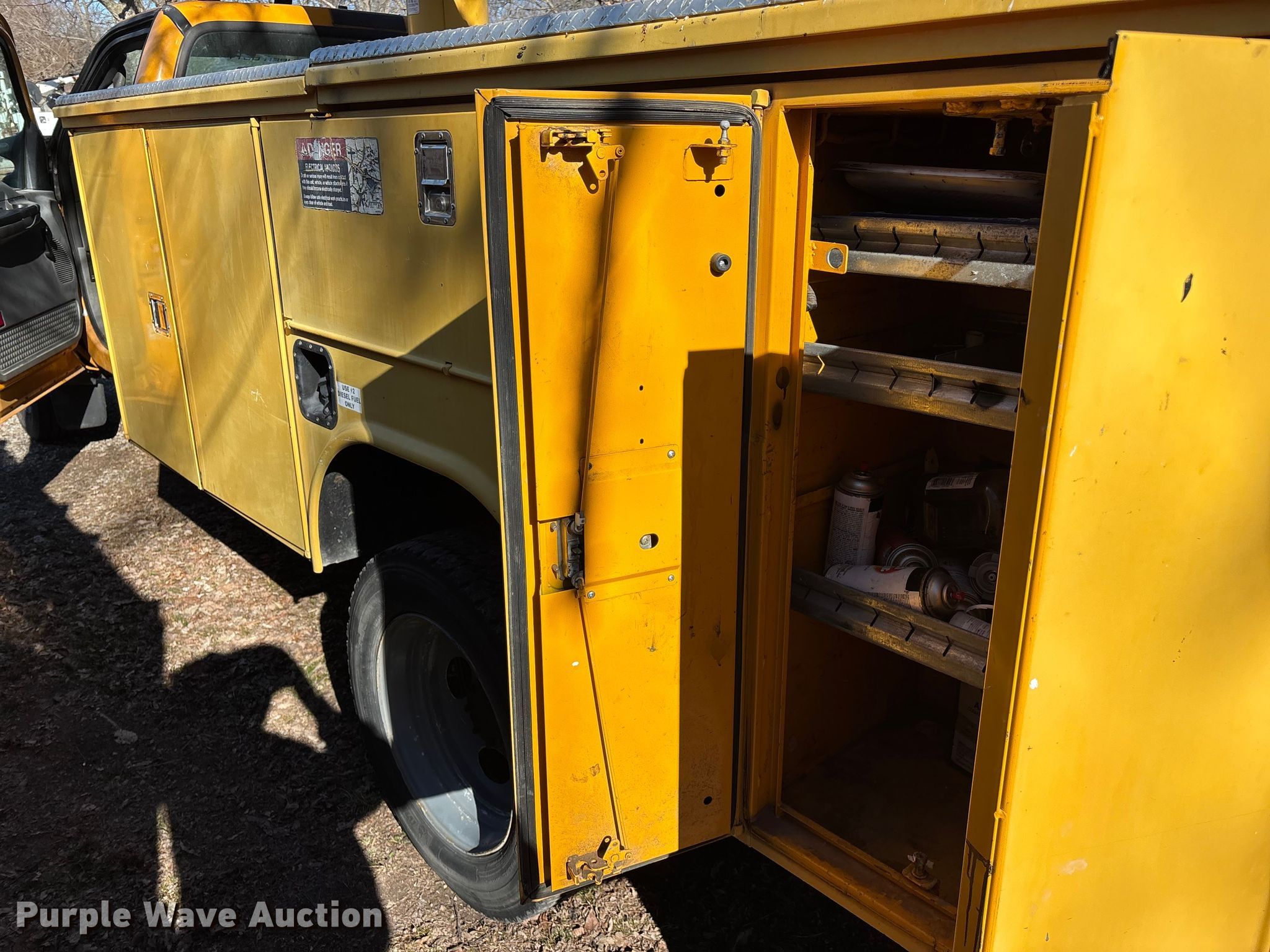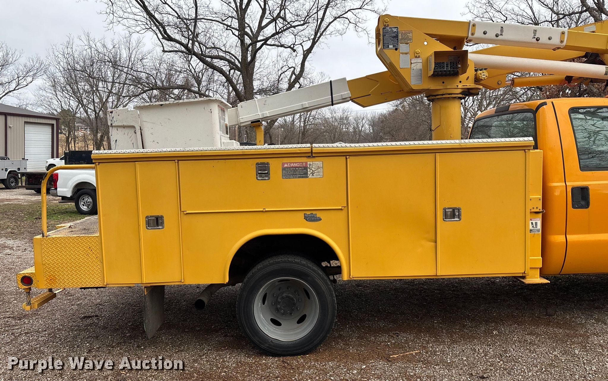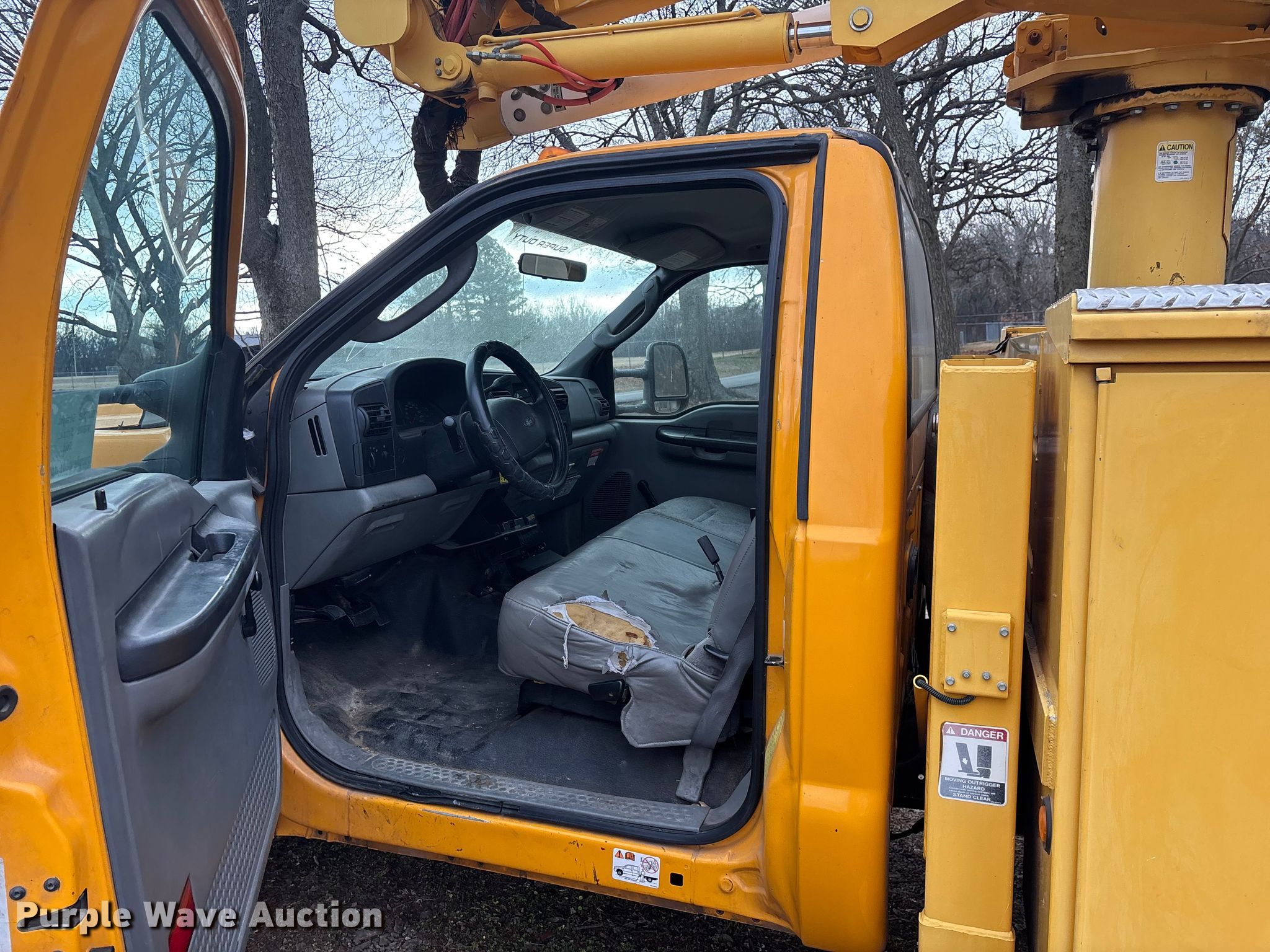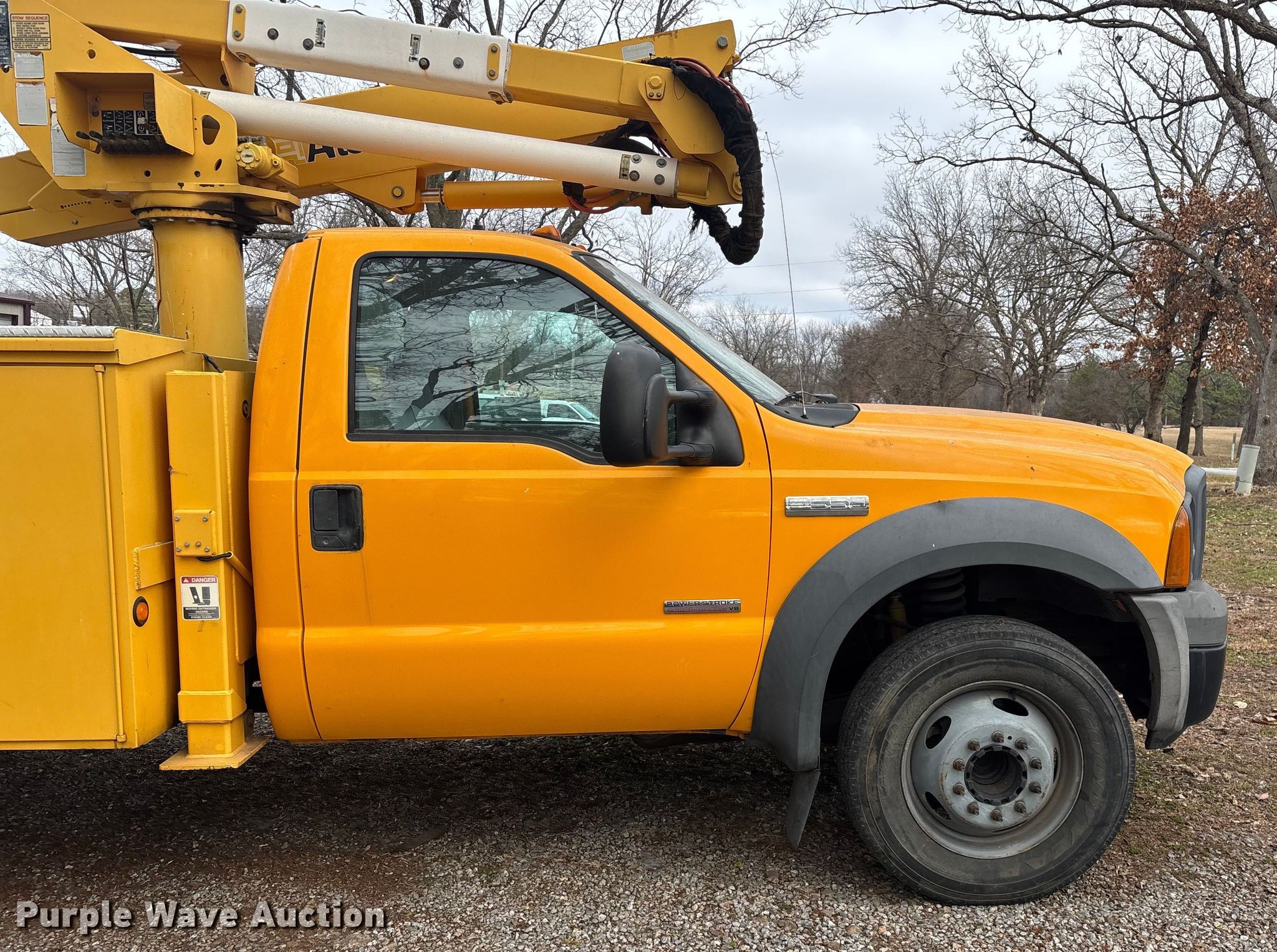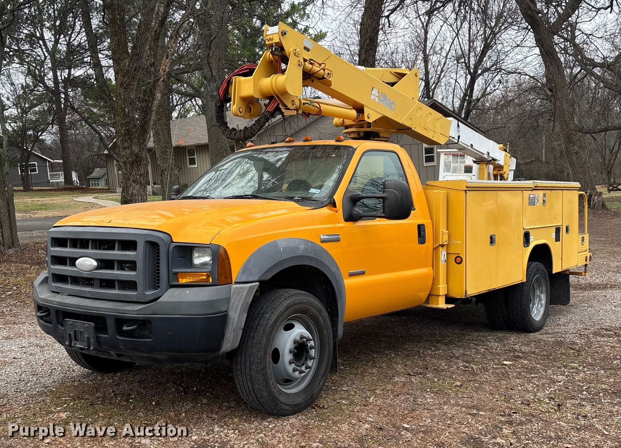 This 2005 Ford F550 Super Duty bucket truck will sell to the highest bidder regardless of price.