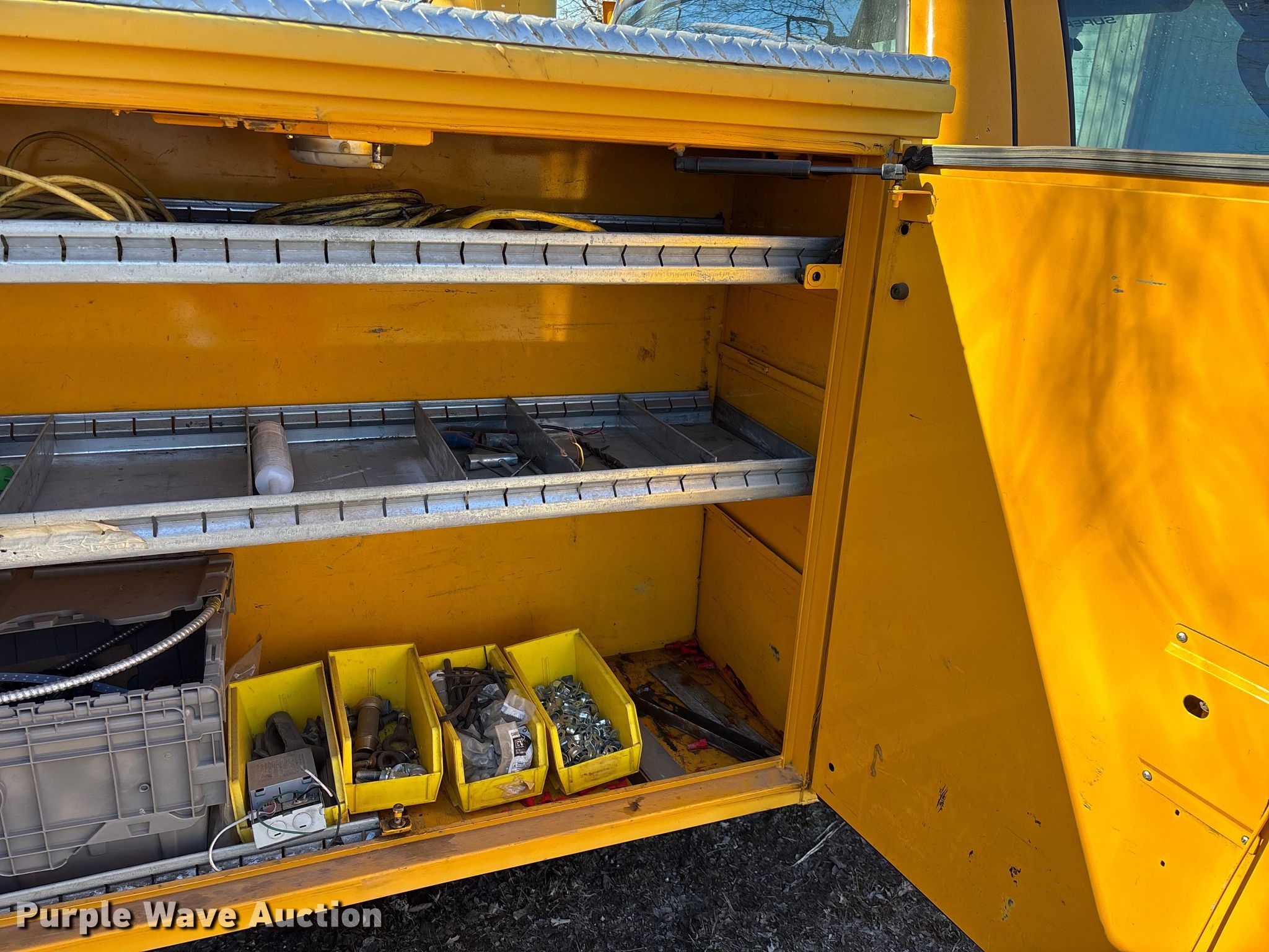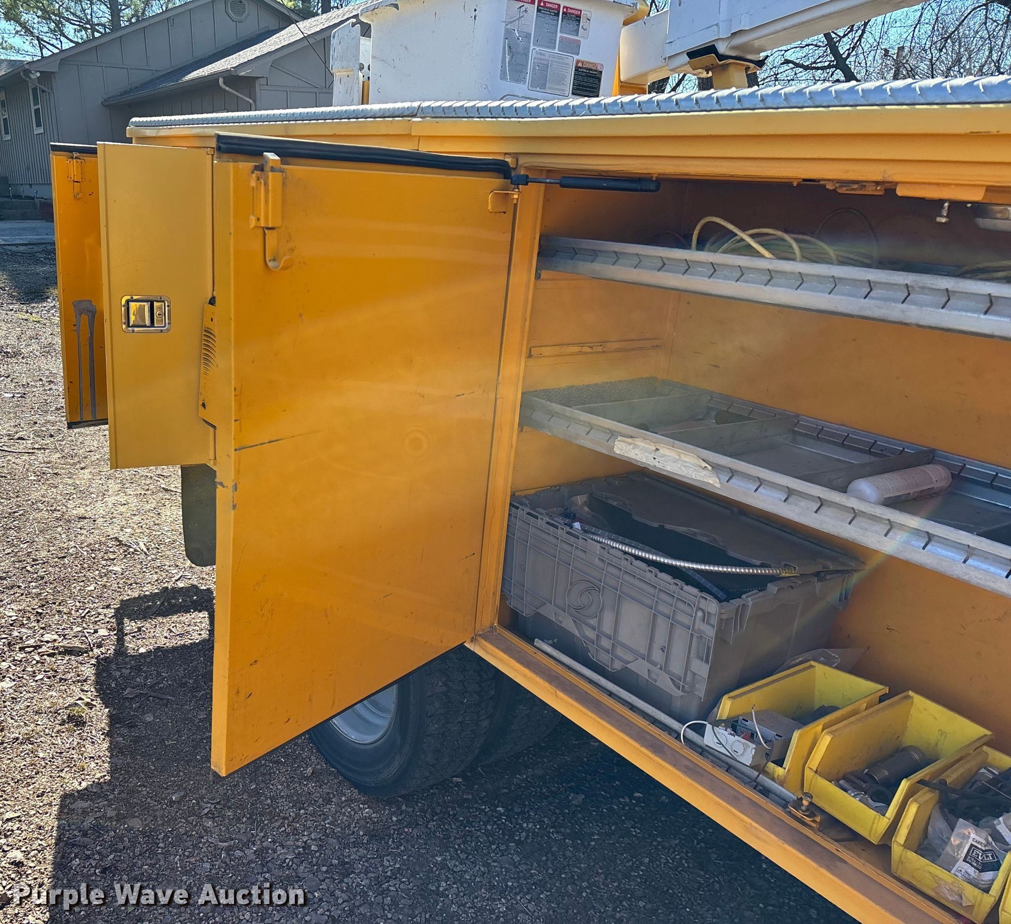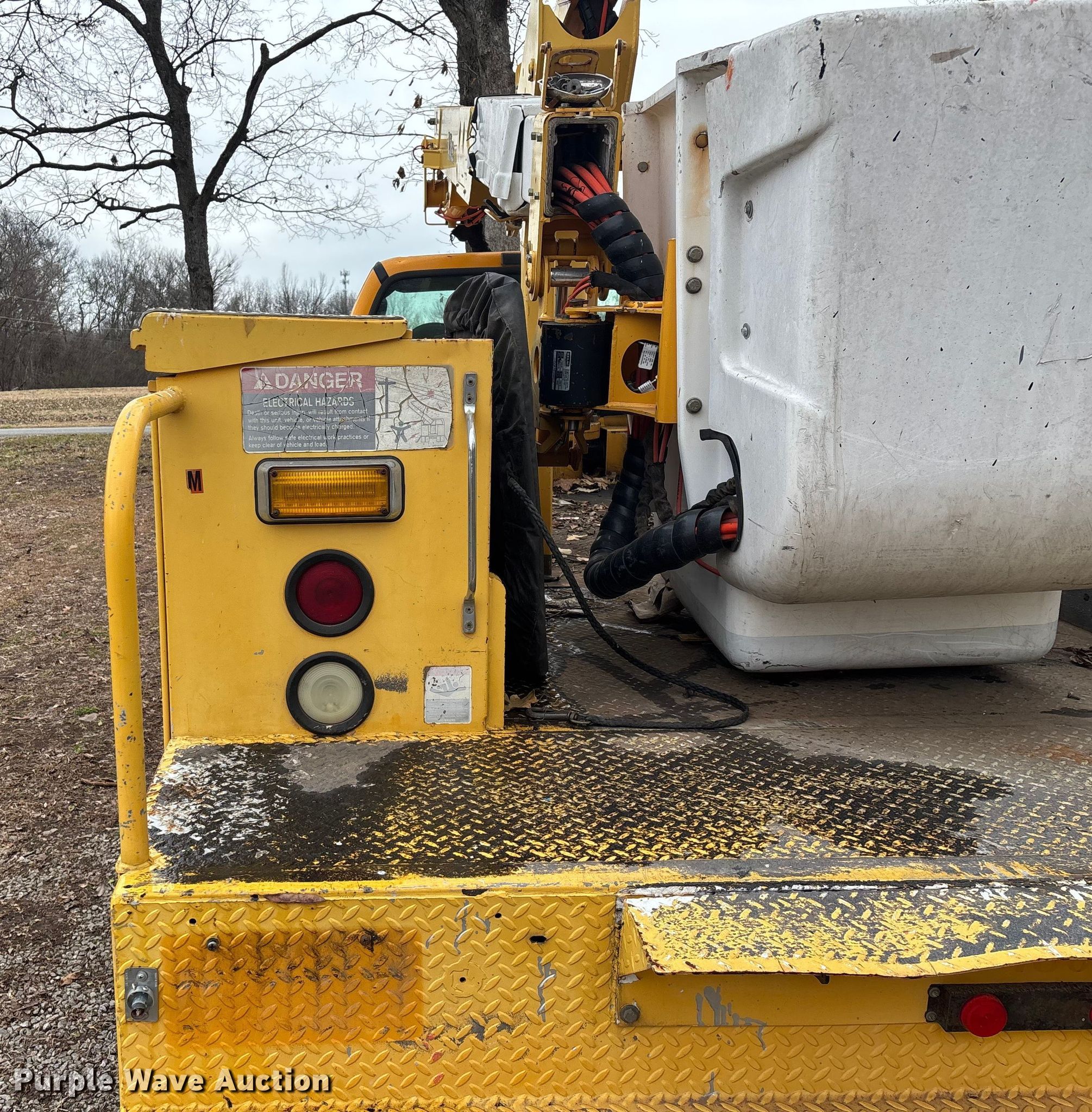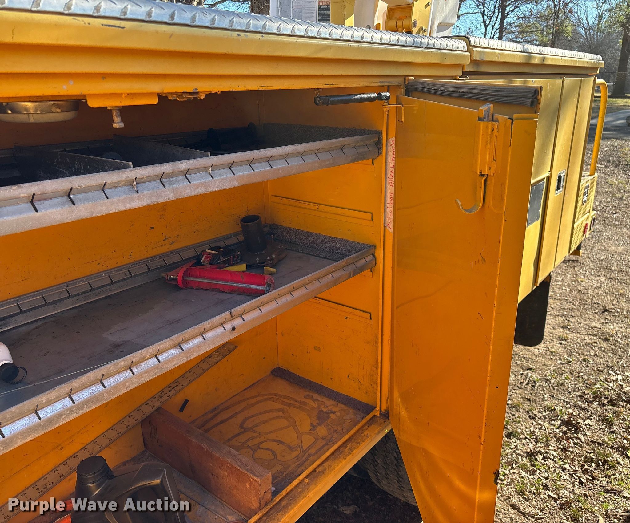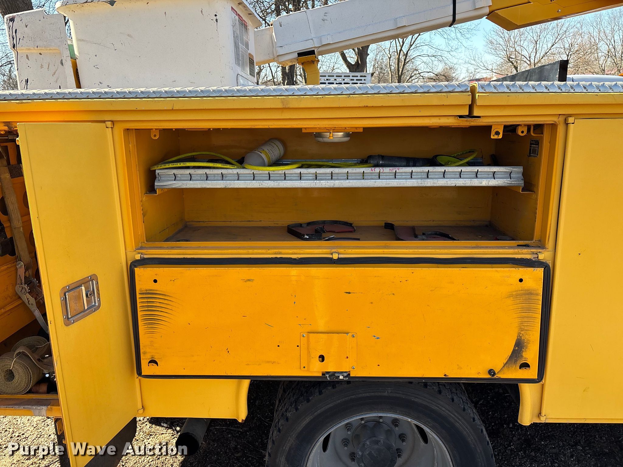 Purple Wave is selling a used Bucket Truck in Oklahoma. This item is a 2005 Ford F550 Super Duty bucket truck with the following: Miles: 95,644 on odometer, Hours: 8,979 on meter, VIN: 1FDAF56P75EB01448