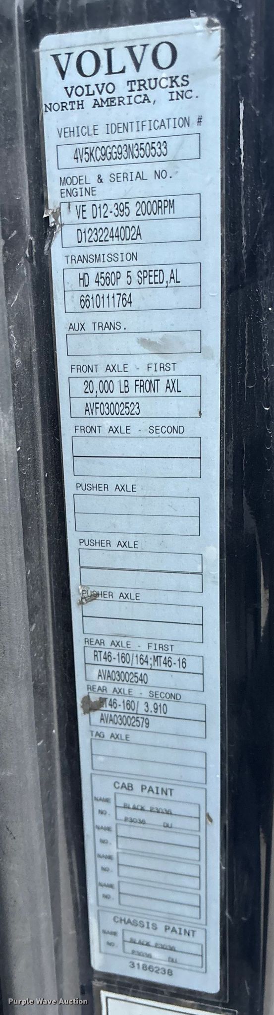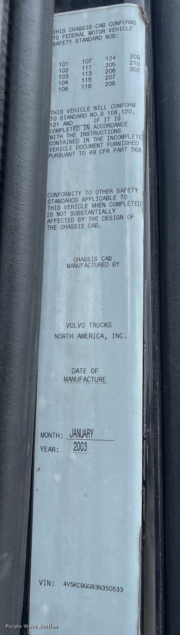 Purple Wave is selling a used Vacuum Truck in Missouri. This item is a 2003 Volvo Truck VHD sewer jetter truck with the following: Miles: 110,353 on odometer, VIN: 4V5KC9GG93N350533