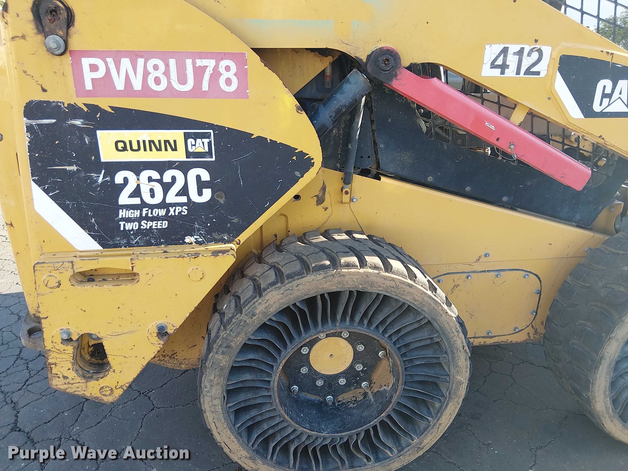 Purple Wave is selling a used Skid Steer Loader in California. This item is a 2012 Caterpillar 262C skid steer loader with the following: Hours: 6,212 on meter, Serial: CAT0262CPMST04930, Unit #: 412