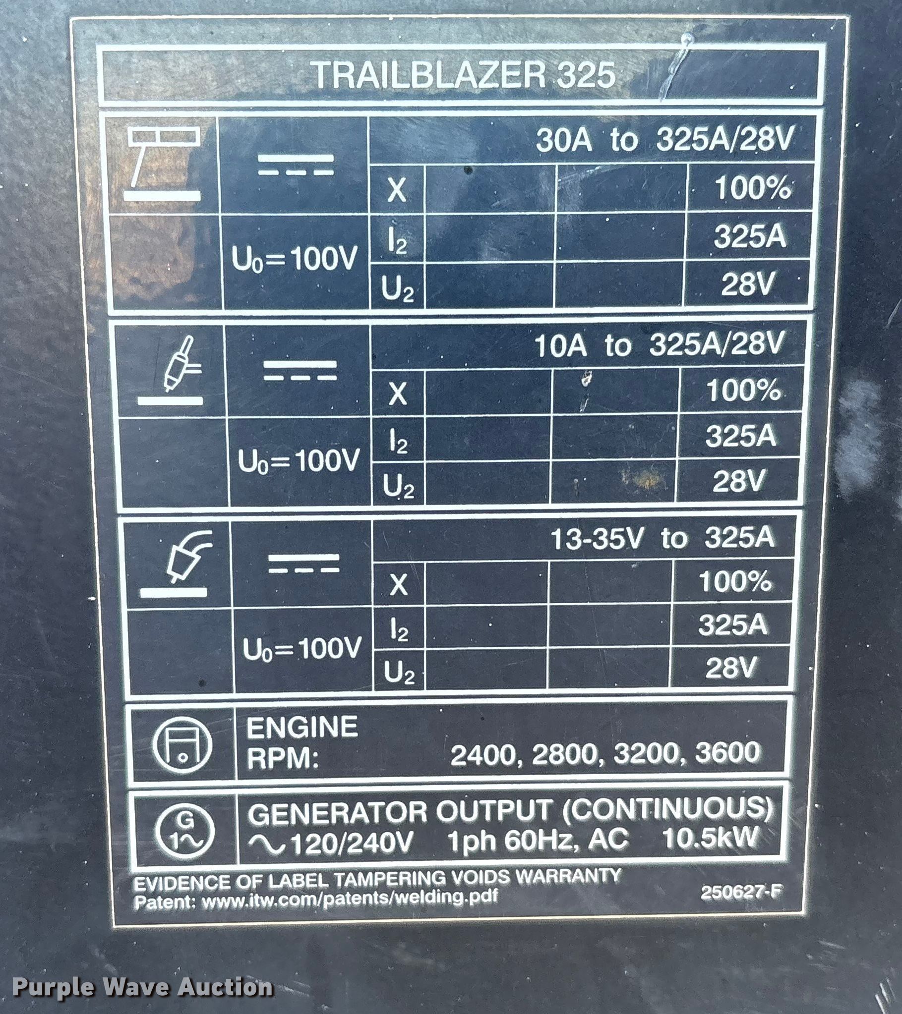 Purple Wave is selling a used Welder (Manual) in New Mexico. This item is a Miller Trailblazer 325 welder with the following: Hours: Unknown