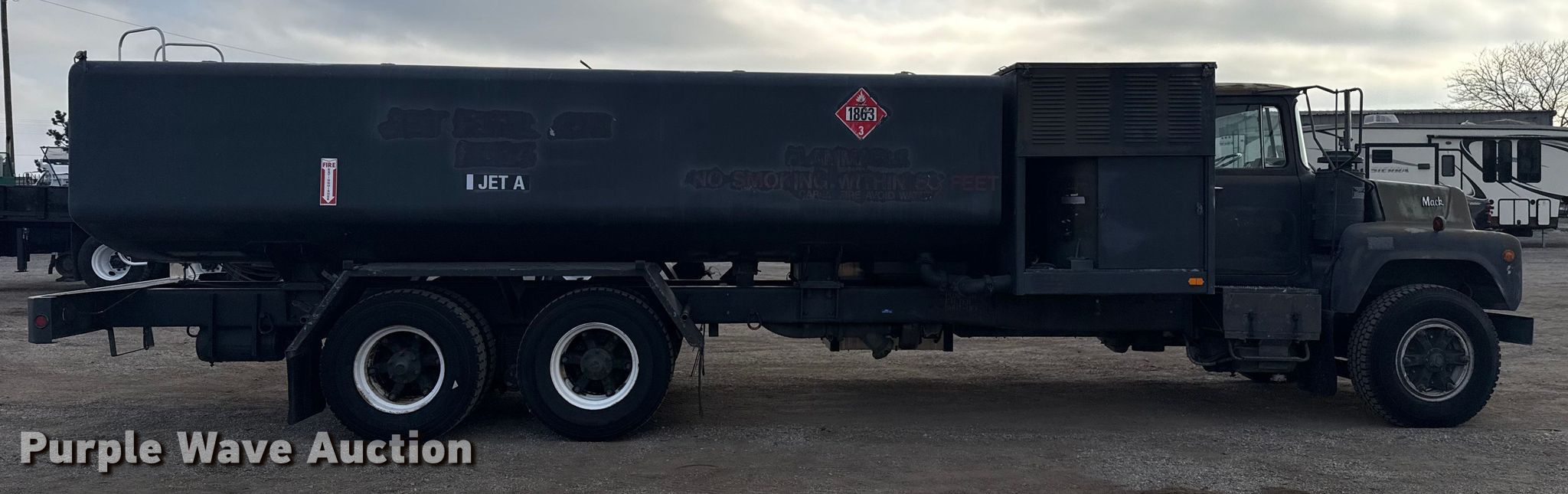 Purple Wave is selling a used Fuel Truck in Oklahoma. This item is a 1983 Mack DM492S fuel / lube truck with the following: Miles: 186,573 on odometer, VIN: 1M2B112C8DA002500