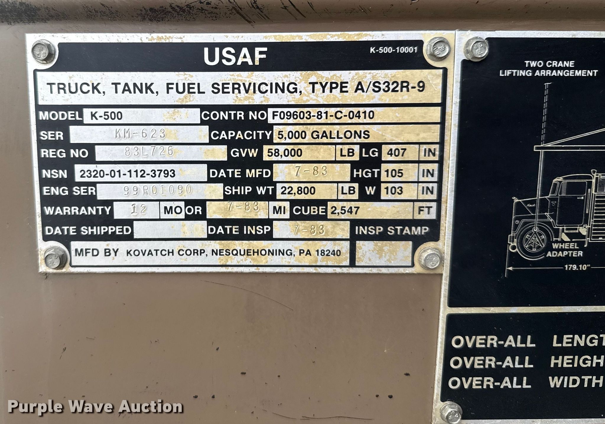 1983 Mack DM492S fuel / lube truck. Miles: 186,573 on odometer, VIN: 1M2B112C8DA002500. Engine Caterpillar 3208, Serial: 62W12586, Cylinders: 8, Fuel type: Diesel, HP: 210. Transmission Automatic. Chassis Axles: Tandem, Differential lock: Inter-axle, Suspension: Camelback, Brakes: Air, PTO, GVWR: 58,000 lbs. Features Bed Tank bed, Kovatch Corp K-500, Serial: KM-623, Length: 20', Width: 102", Capacity: 5,000 gallons, Compartments: 4, Hose reels: 2, Nozzles, Metered pumps: 1 Make: Brooks Industries.. Tires Size: 11R22.5. Oklahoma classic title. Seller is an Oklahoma licensed motor vehicle dealer. Buyers may be required to provide identification to the licensed dealer to comply with state laws. Title will be assigned and distributed by the dealer. Please contact the seller for distribution questions. Title distribution may be delayed up to 30 days from verification of funds. Collinsville, OK 74021