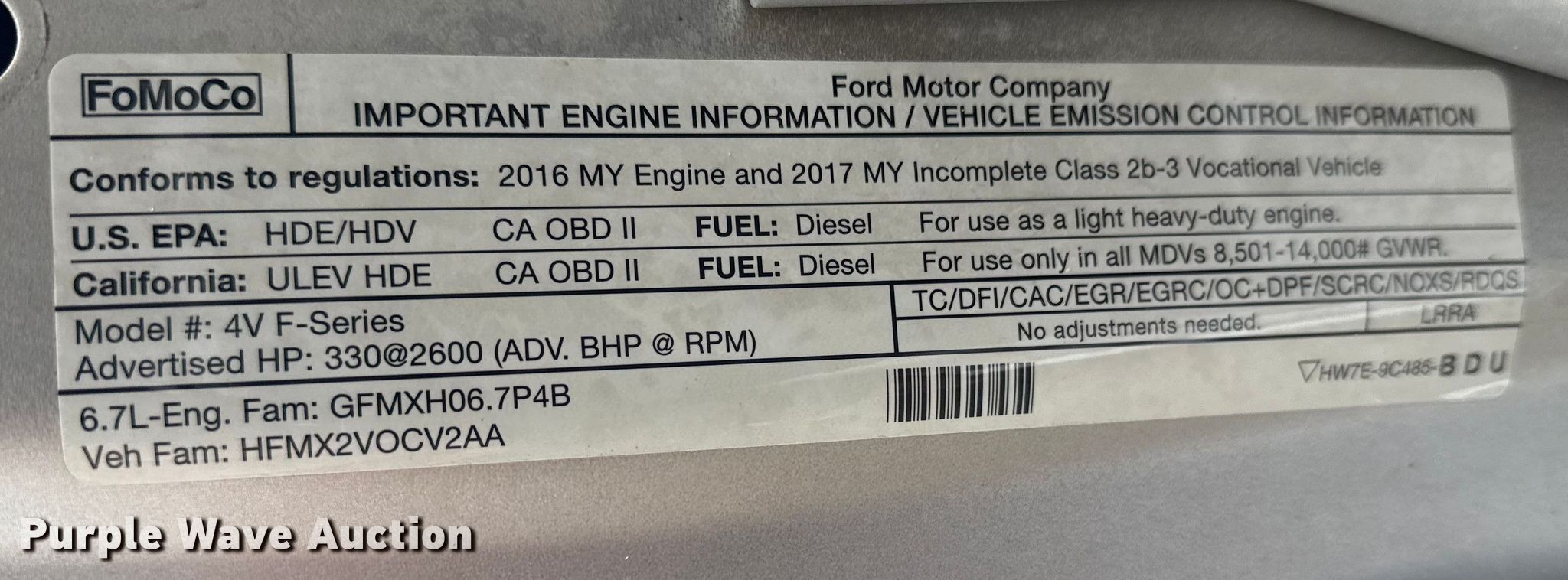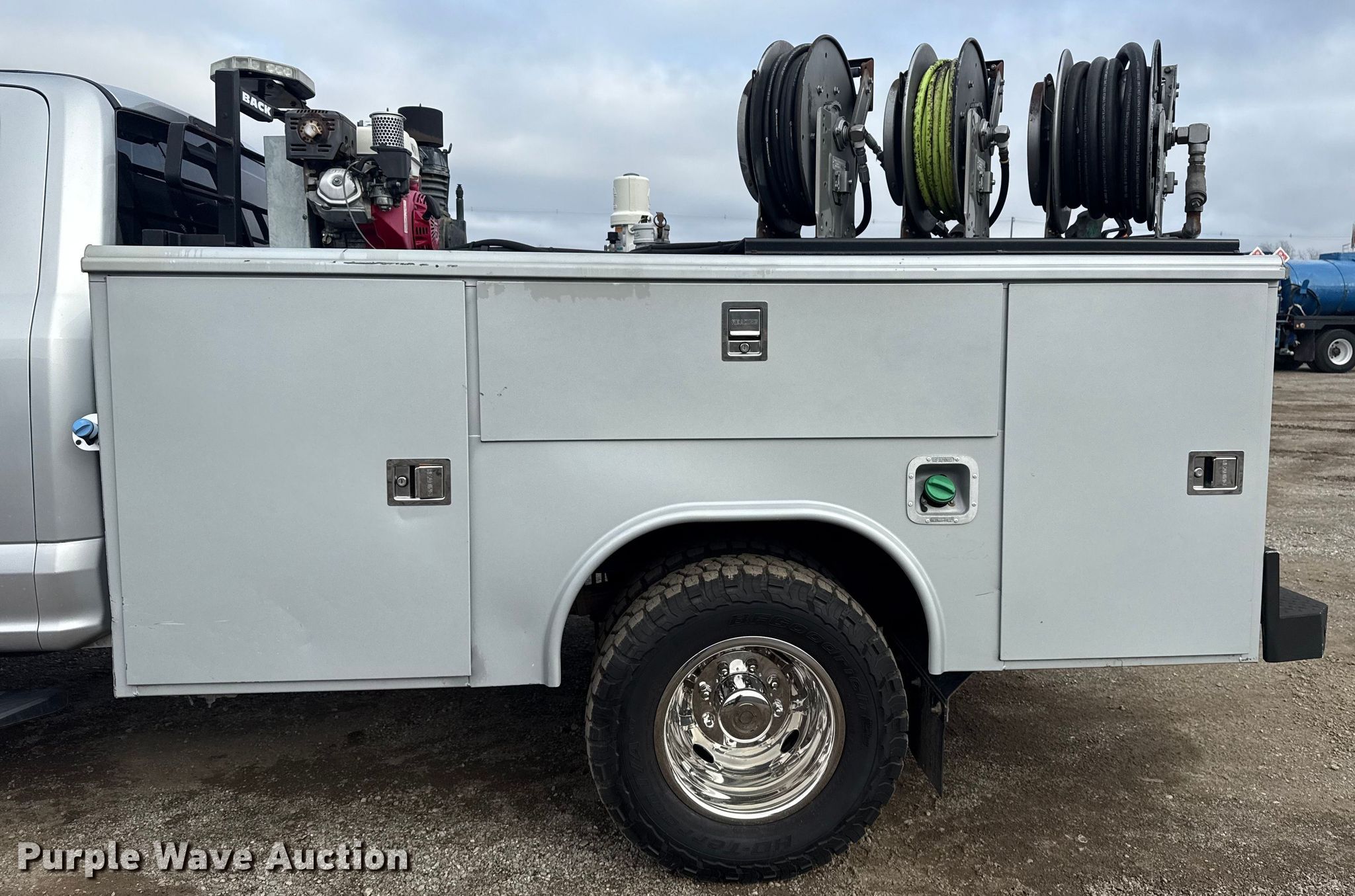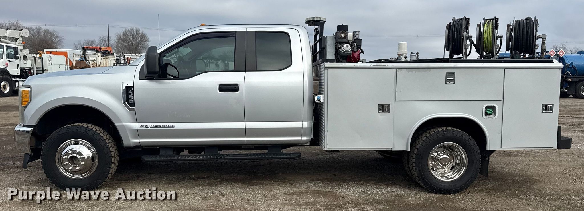 2017 Ford F350 XL Ext. Cab utility bed pickup truck. VIN: 1FD8X3HT7HEB23996. Engine Ford, Displacement: 6.7L, Cylinders: 8, Fuel type: Diesel. Transmission Automatic. Chassis Four wheel drive, Suspension: Spring, Brakes: Hydraulic. Interior AC, Heat, Cruise control, Auxiliary controls, Brake controller. Features Bed Utility bed, Reading, Length: 9', Width: 92", Air compressor Honda GX390, Oil/lube system Hose reels, Nozzles, Reservoirs, Fuel tank Nozzles, Pump.. Tires Size: LT245/75R17. Oklahoma title. Seller is an Oklahoma licensed motor vehicle dealer. Buyers may be required to provide identification to the licensed dealer to comply with state laws. Title will be assigned and distributed by the dealer. Please contact the seller for distribution questions. Title distribution may be delayed up to 30 days from verification of funds. Collinsville, OK 74021